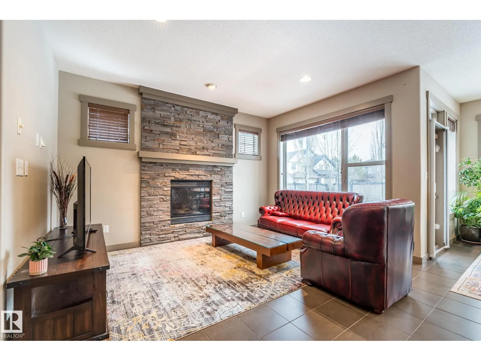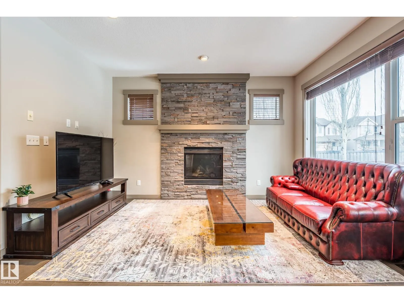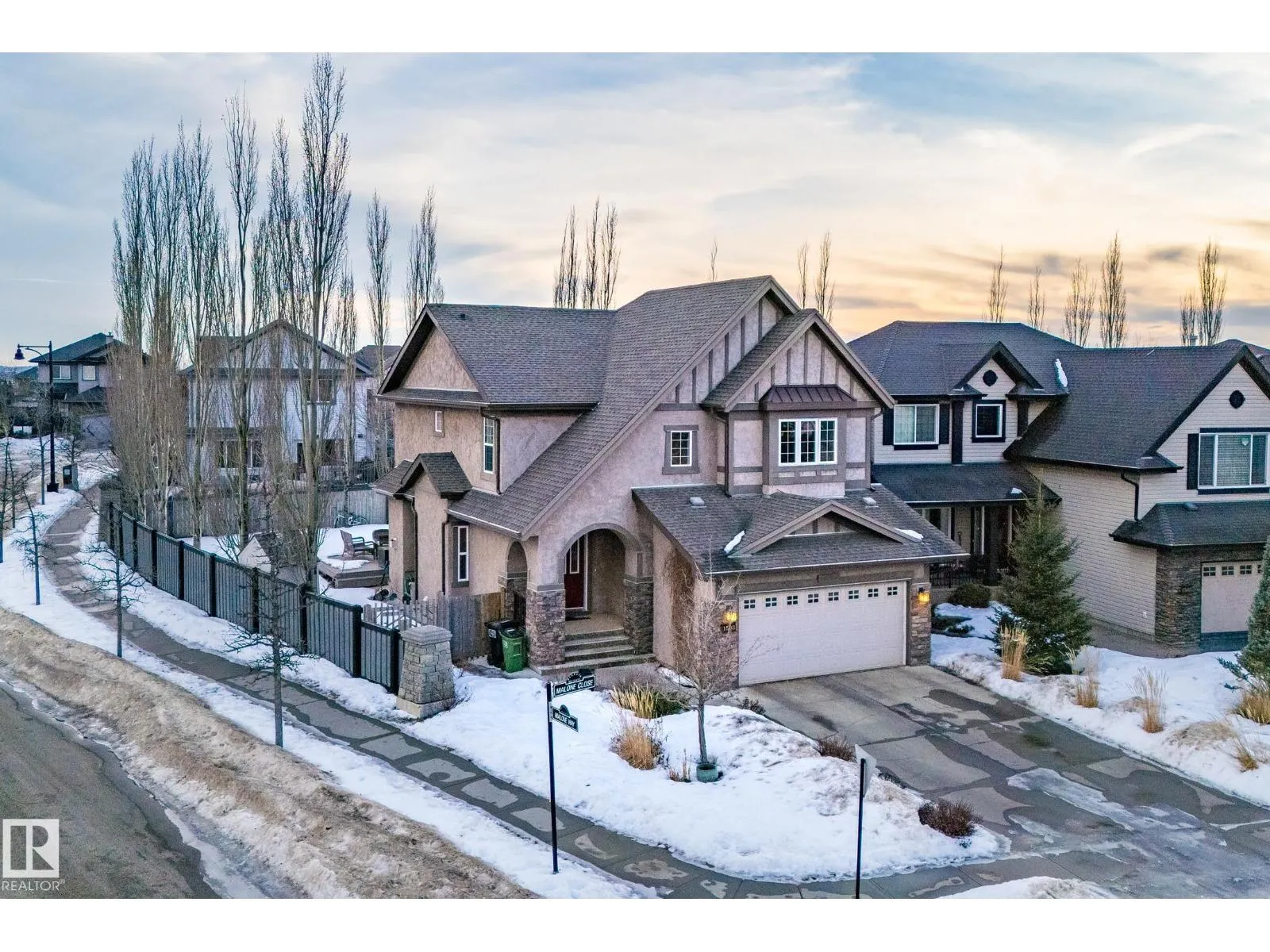 Welcome to this prestigious 2,092 sq ft luxury former show home built by Homes by Avi. This rare Tudor-style residence showcases rich stone & stucco curb appeal and timeless character. Inside, youâll find a stunning kitchen with upgraded appliances, a large centre island, and plenty of space for entertaining. The main floor den makes a perfect home office, while the floor-to-ceiling stone fireplace adds warmth and elegance to the living area. Upstairs offers three spacious bedrooms including a beautiful primary suite with an enormous ensuite, plus a bright bonus room with soaring ceilings. The fully finished basement provides additional living space for family or guests. Enjoy professionally landscaped surroundings on a quiet street just steps from a 13-acre natural urban sanctuary. Extras include A/C, surround sound, tankless water heater, water softener, newer appliances, and a shed. A truly exceptional luxury home. (id:27476)