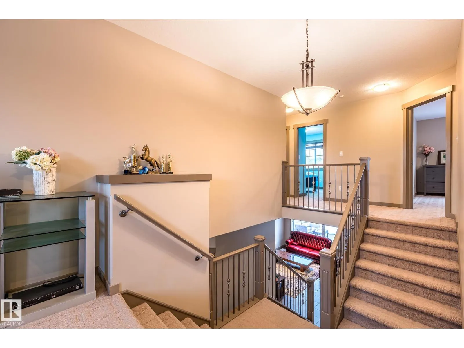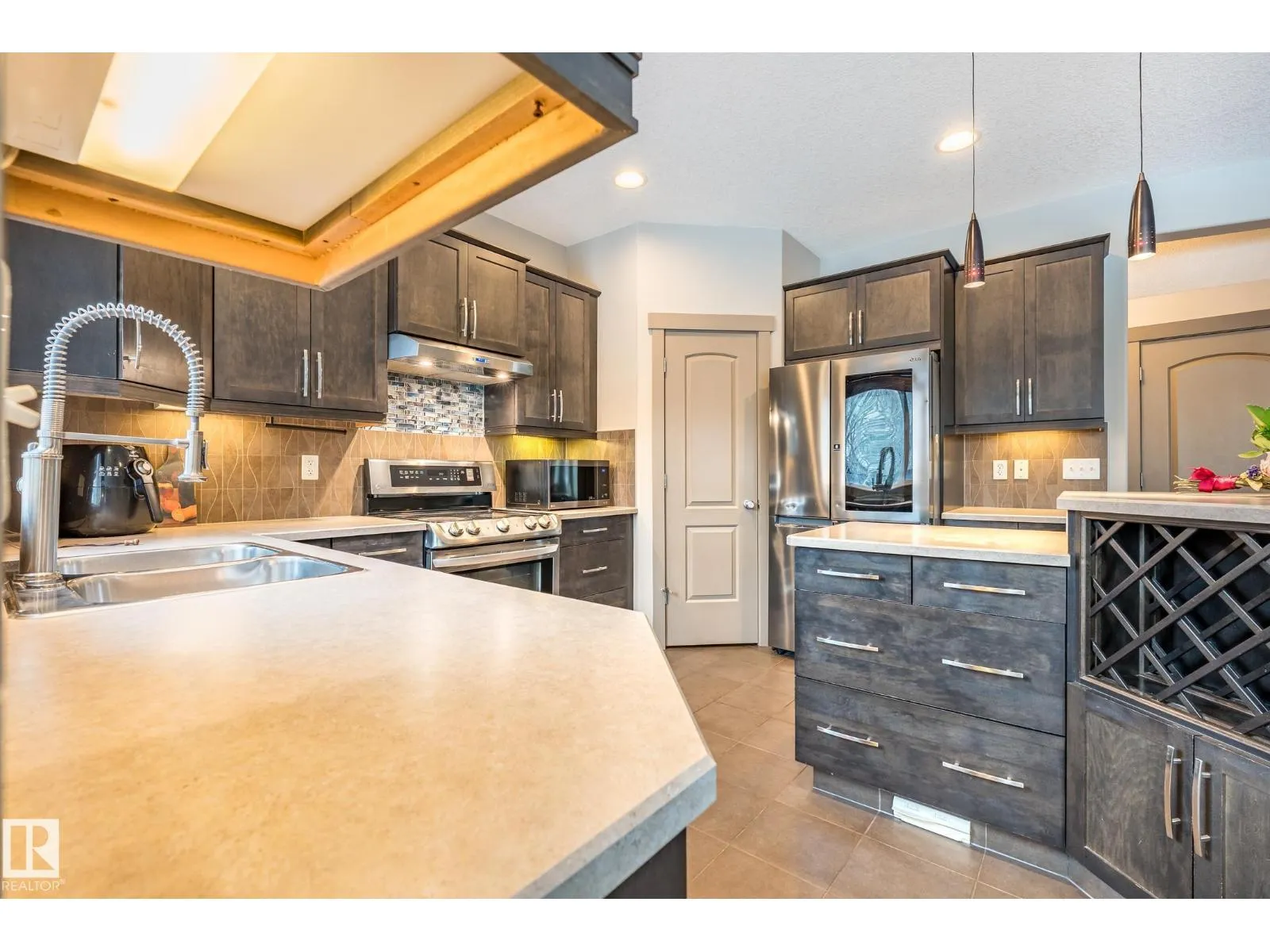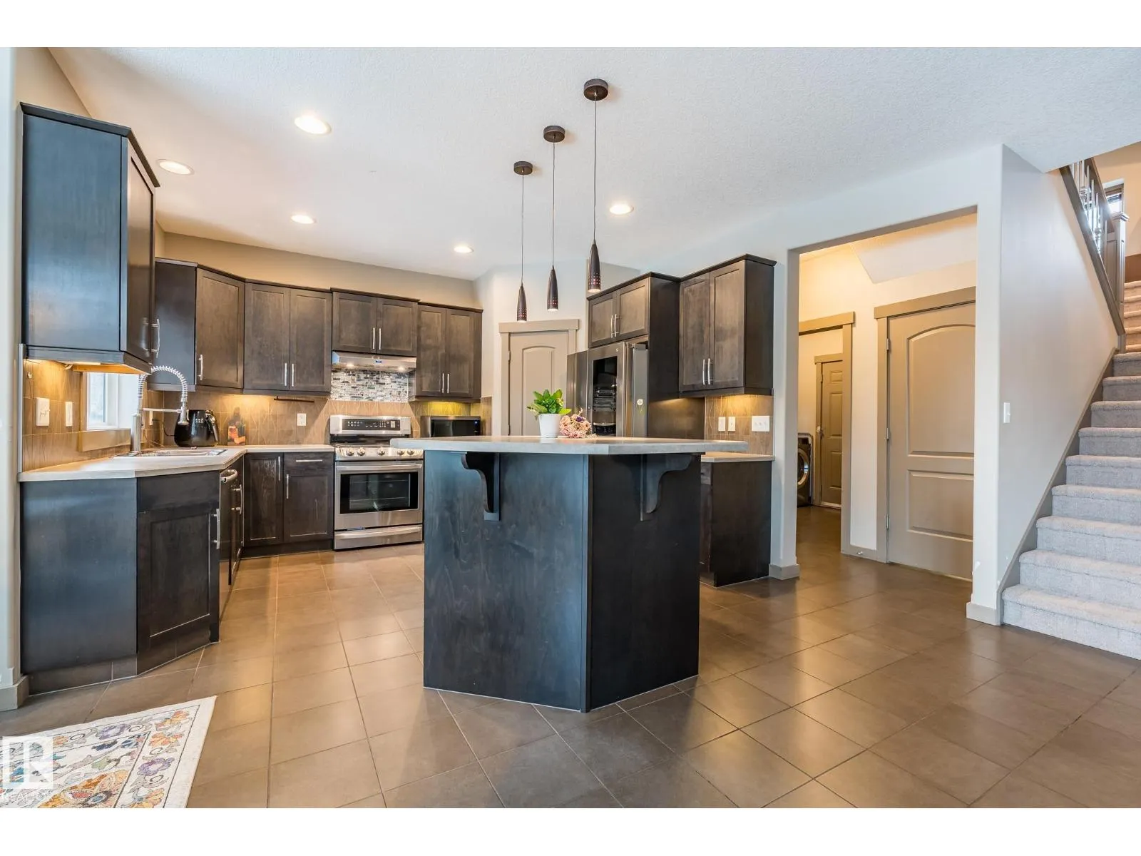 Welcome to this prestigious 2,092 sq ft luxury former show home built by Homes by Avi. This rare Tudor-style residence showcases rich stone & stucco curb appeal and timeless character. Inside, youâll find a stunning kitchen with upgraded appliances, a large centre island, and plenty of space for entertaining. The main floor den makes a perfect home office, while the floor-to-ceiling stone fireplace adds warmth and elegance to the living area. Upstairs offers three spacious bedrooms including a beautiful primary suite with an enormous ensuite, plus a bright bonus room with soaring ceilings. The fully finished basement provides additional living space for family or guests. Enjoy professionally landscaped surroundings on a quiet street just steps from a 13-acre natural urban sanctuary. Extras include A/C, surround sound, tankless water heater, water softener, newer appliances, and a shed. A truly exceptional luxury home. (id:27476)
