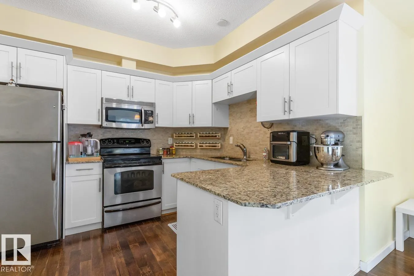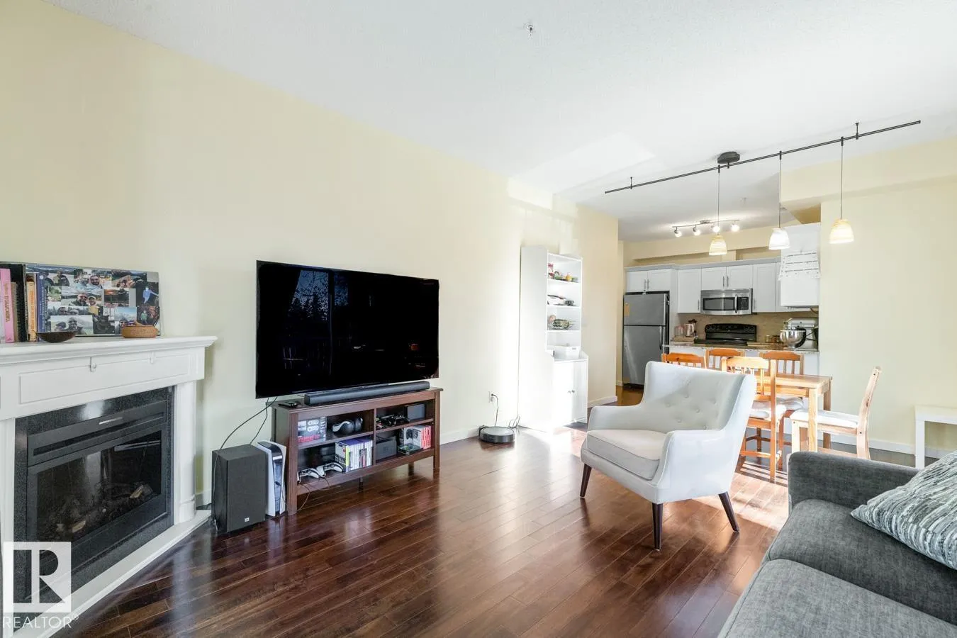 Welcome to Hearthstone of Whyte, where location meets lifestyle. Set on a quiet, street just steps from Whyte Avenue, the University of Alberta, river valley trails & top local spots, this beautifully maintained condo is urban living done right. Inside, 9â ceilings & rich hardwood floors set the tone, flowing into a modern kitchen with ample cabinetry, S/S appliances, & a granite peninsula perfect for casual dining or entertaining. The bright living and dining space features a cozy fireplace & opens to a sunny southwest-facing patio, ideal for evening downtime. The king-sized primary suite offers a walk-through closet & 4pc ensuite, while a generous 2nd bedroom, 3pc main bath, and in-suite laundry complete the smart layout. Enjoy premium building amenities including a fitness room, social spaces, heated underground parking, and extra storage. Condo fees include heat & water, making this a stylish, low-maintenance home in one of Edmonton's most sought-after locations. (id:27476)