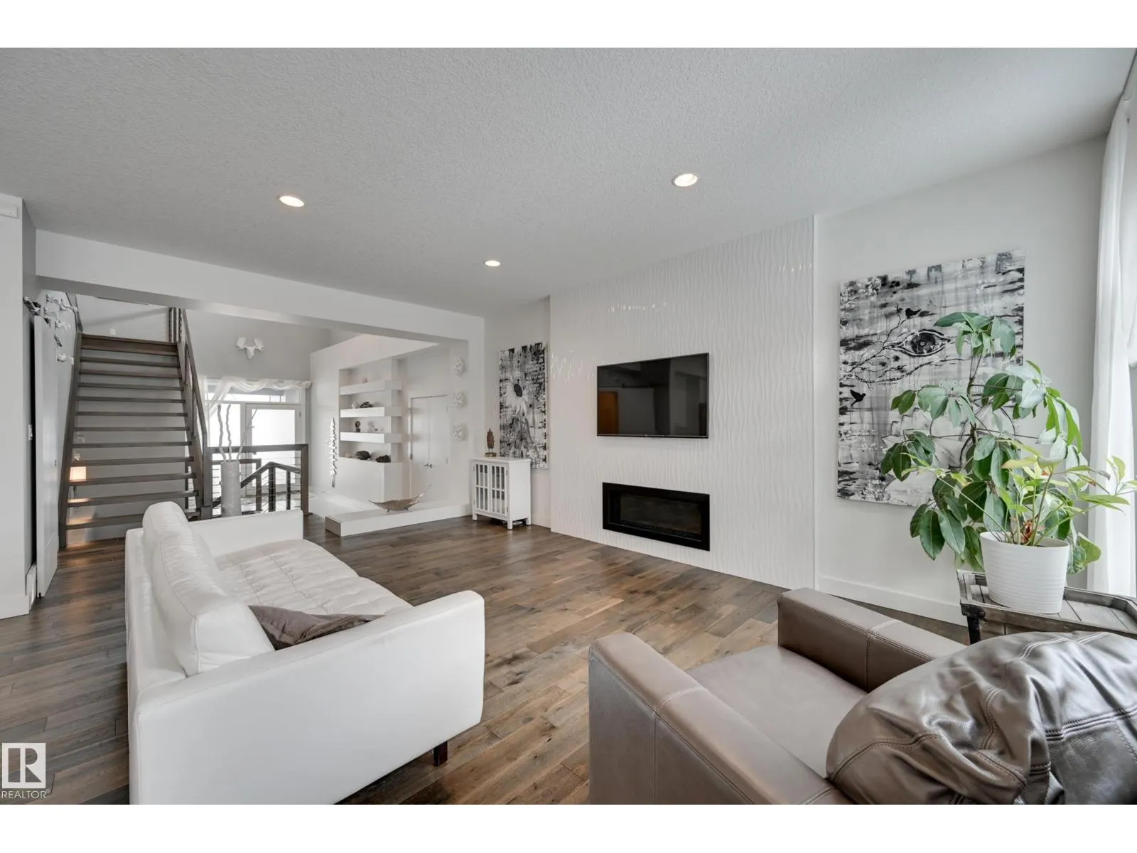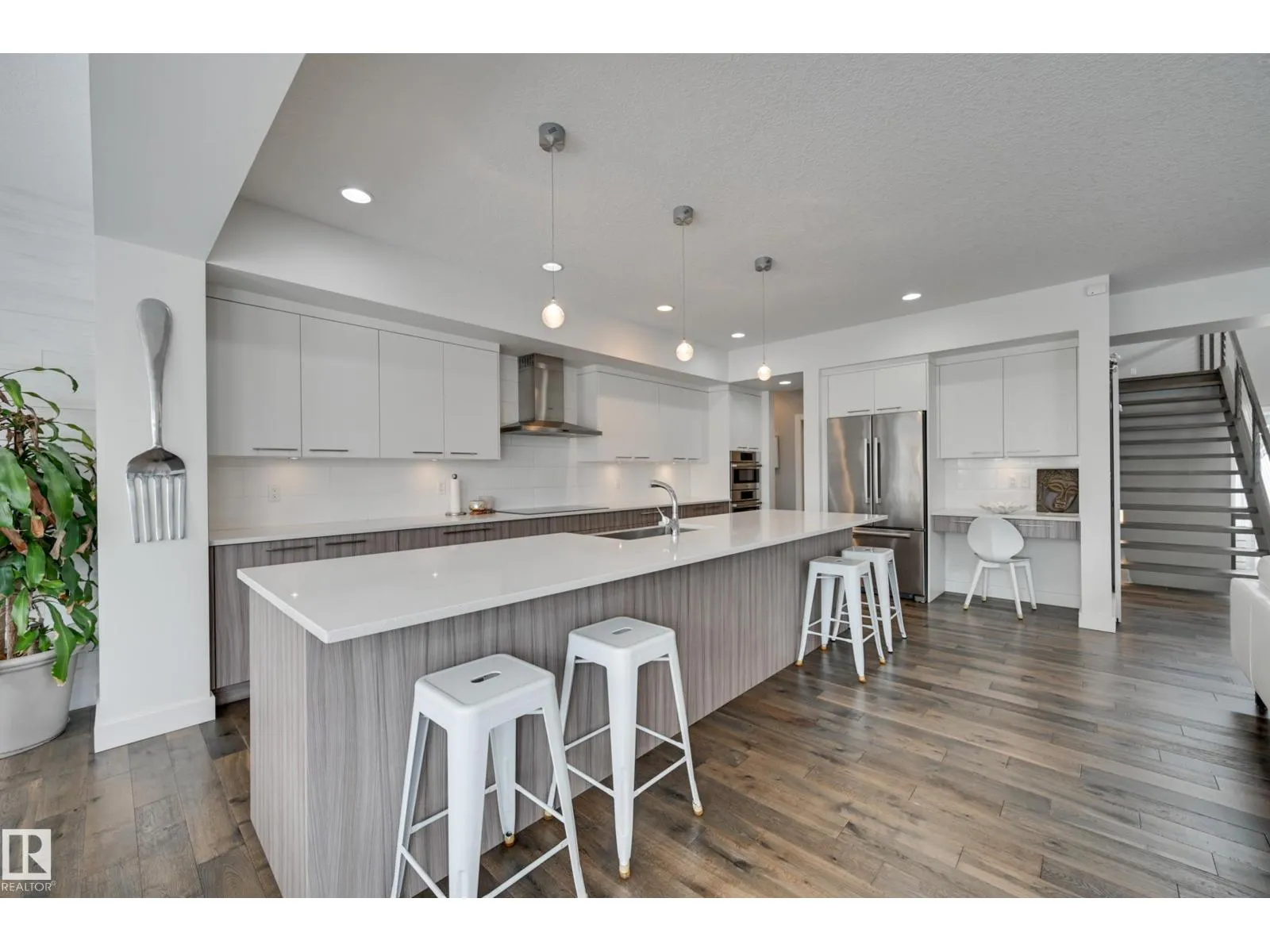 Stunning Kanvi contemporary 2 sty home located in prestigious Jagare Ridge. Beautifully designed & decorated w/loads of upgrades. Open concept plan w/an abundance of natural lighting- perfect for those who love to entertain large or small gatherings. Over 4000 sf ttl. High ceilings, open tread hardwood stairs w/metal cable railing. Chefâs kitchen w/BOSCH S/S appliances, a huge island w/eating bar, quartz counters & W/I pantry. Great rm/ linear FP. Large dining area can expand to accommodate large groups. Big mudrm for the growing family. Gorgeous H/W throughout much of the home. Upper level has a Bonus Rm, 3 large bedrms, laundry rm & 5 pc bathrm. Luxurious primary suite w/a spa like retreat. F/Fin bsmt w/Rec rm, Media rm, 3 pc & a 4/5th bedrm. Convert one to an exercise area. Beautifully landscaped yard w/a multi tiered deck w/a pergola. Add a couple of Choke Cherry trees & you have instant privacy. The home has A/C & an O/S heated garage. Close to eateries, shopping, golf, trails & transit (id:27476)