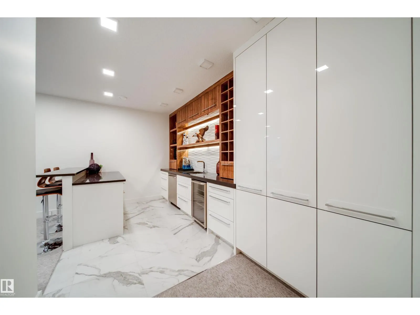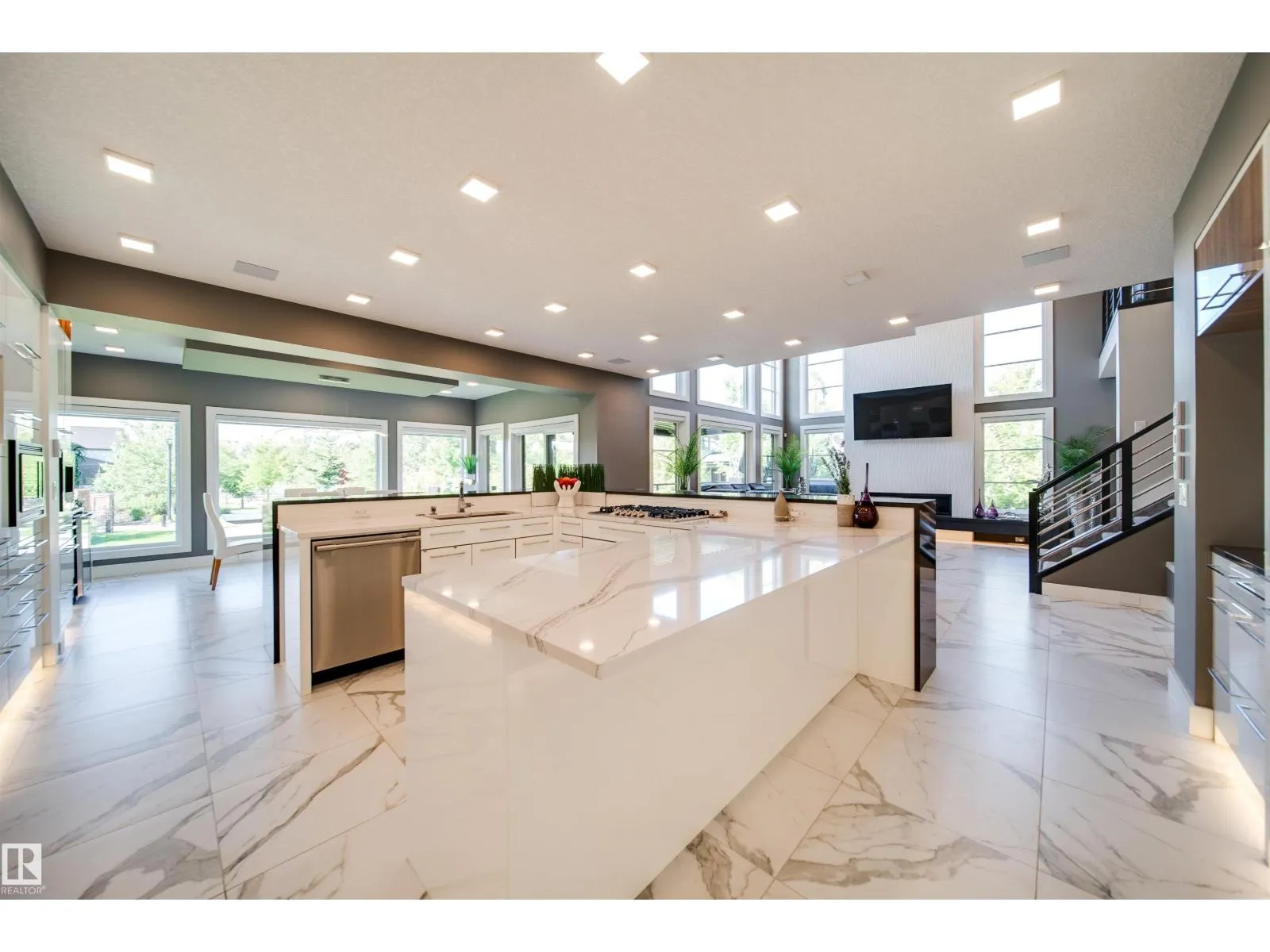 Award-winning show home by Vickyâs Homes (best build under $2m) ready for the buyer that has a budget for the best! TRIPLE CAR GARAGE with room for 6 via lifts, 4 beds total + main floor den/bed, 5 baths, fully finished & backing pond/greenspace with a large SW yard! This home is loaded and a must see, located in the community of Keswick which is nestled between parks, ponds, trails & the river. The expansive main floor brings in plenty of natural light with the 2 storey vault but adds warmth with the heated floor tiles. The massive kitchen is an entertainers dream featuring built in appliances, lots of cabinetry & a special U shaped island where everyone will gather. Steps away is a large deck with built in bbq & custom built automated pergola. Upstairs the 3 beds all have their own bath with the primary having a balcony, large closet and ensuite with steam shower & multiple vanities. The basement is finished with a wet bar, rec room & 4th bed - Automation/blinds/control4 throughout + und. sprinklers! (id:27476)