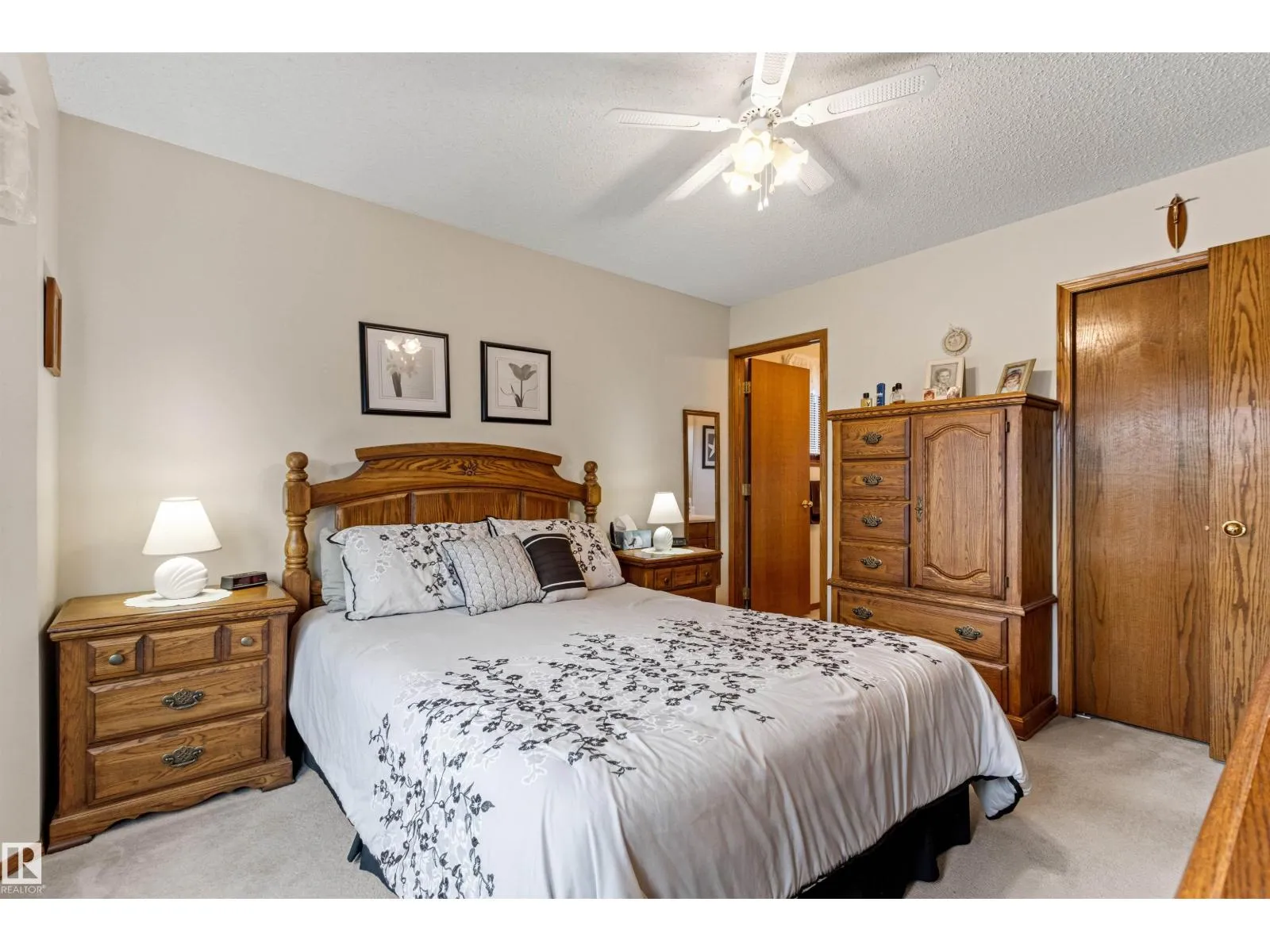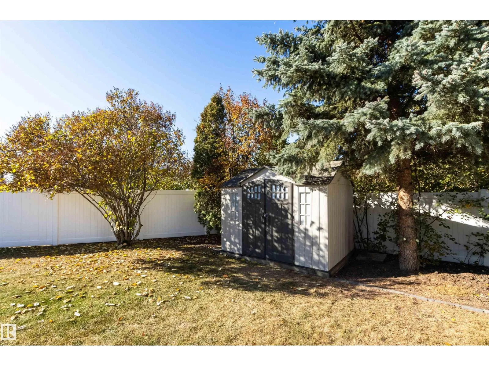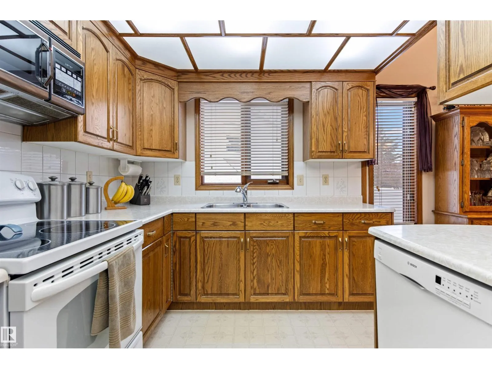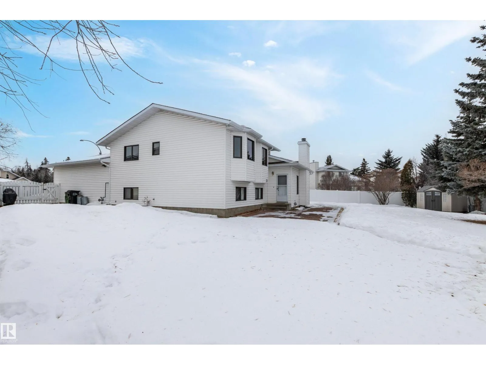 Custom quality 1545sqft 4 level-split in a quiet cul-de-sac. South-east facing patio opens to foyer (access to over-sized garage). Up one step to LR (bay window). Kitchen: (enormous number of cupboards with pantry/writing desk). 6.7â island opens to Dining. Family room (WB fireplace: WETT inspected/fan) with door to enormous pie-shaped yard (brick patio, garden, vinyl & wood fence, shed) backing onto walking trail, schools & park. Upper floor: Laundry (full-sized W/D/cupboards/folding counter); 4-piece Bath; Primary Bedroom (WI closet/2-piece Ensuite); Bedrooms 2 & 3. 3rd level (big above-grade windows): Bedrooms 4 & 5; 3-piece Bath; Rec room. Terraced closet shelving/built-ins through-out. 4th level: high ceiling & huge crawl space & storage. Recent Updates: furnace/humidifier/HWT/plumbing/shingles/Fibre Optic cable. Meticulously maintained by original owners, this family home is located within walking distance to Schools, Transportation & Parks. Close to Shopping/Hospital/Anthony Henday. Welcome Home. (id:27476)