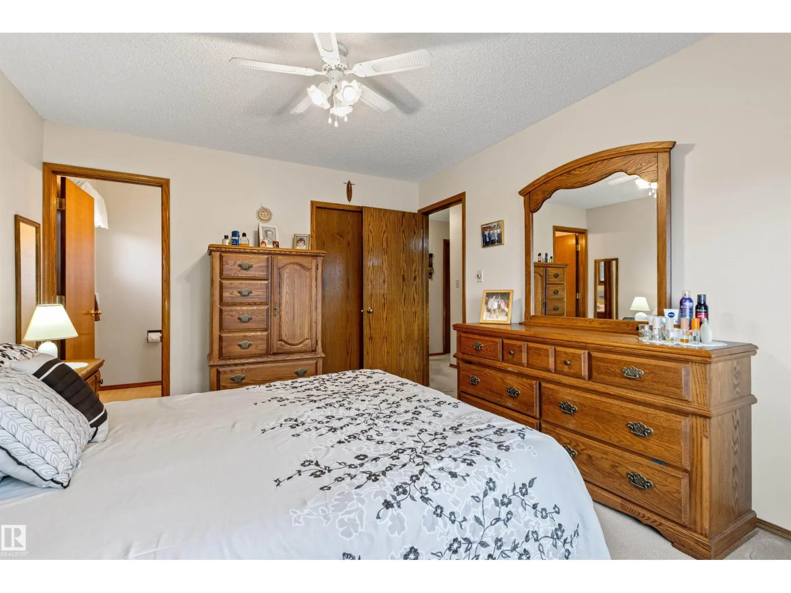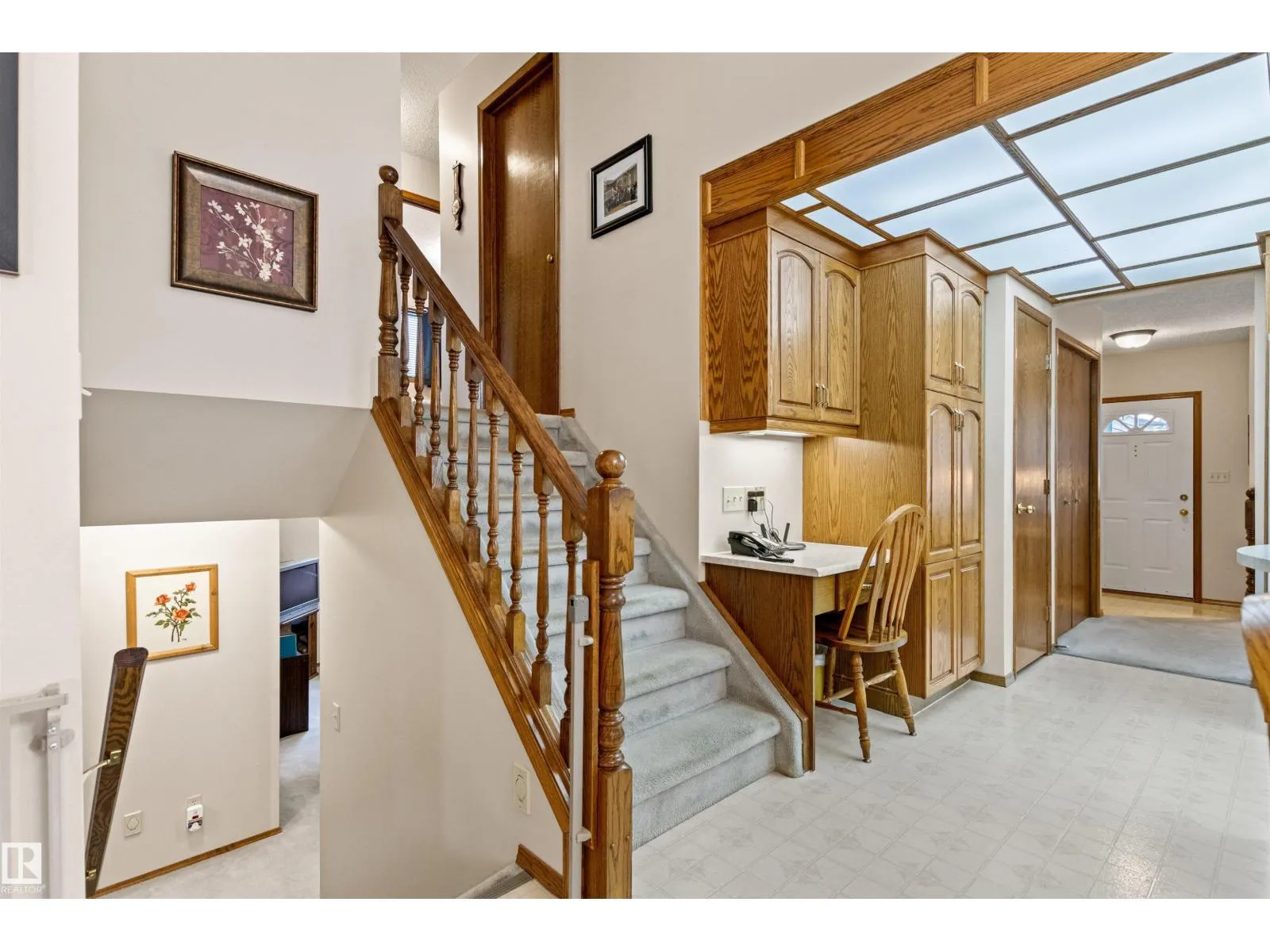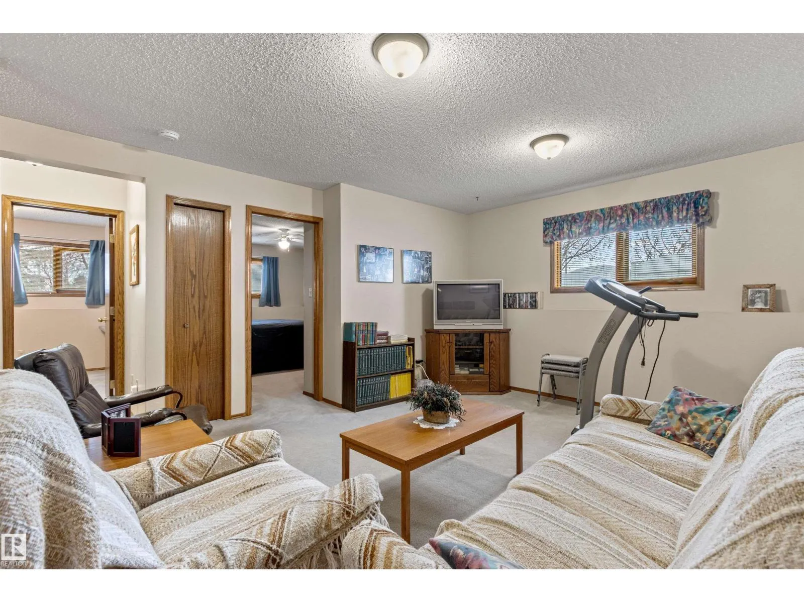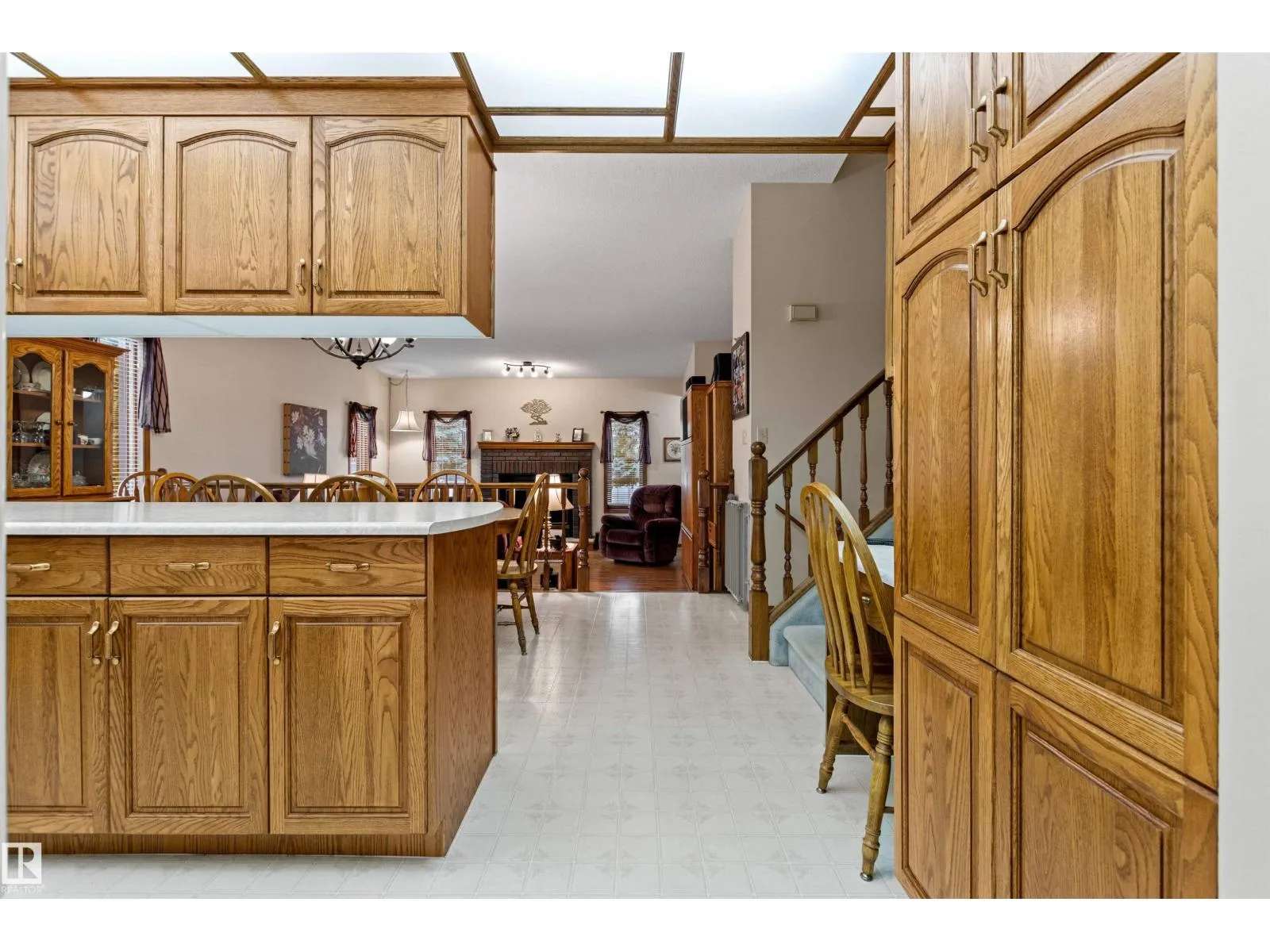 Custom quality 1545sqft 4 level-split in a quiet cul-de-sac. South-east facing patio opens to foyer (access to over-sized garage). Up one step to LR (bay window). Kitchen: (enormous number of cupboards with pantry/writing desk). 6.7â island opens to Dining. Family room (WB fireplace: WETT inspected/fan) with door to enormous pie-shaped yard (brick patio, garden, vinyl & wood fence, shed) backing onto walking trail, schools & park. Upper floor: Laundry (full-sized W/D/cupboards/folding counter); 4-piece Bath; Primary Bedroom (WI closet/2-piece Ensuite); Bedrooms 2 & 3. 3rd level (big above-grade windows): Bedrooms 4 & 5; 3-piece Bath; Rec room. Terraced closet shelving/built-ins through-out. 4th level: high ceiling & huge crawl space & storage. Recent Updates: furnace/humidifier/HWT/plumbing/shingles/Fibre Optic cable. Meticulously maintained by original owners, this family home is located within walking distance to Schools, Transportation & Parks. Close to Shopping/Hospital/Anthony Henday. Welcome Home. (id:27476)