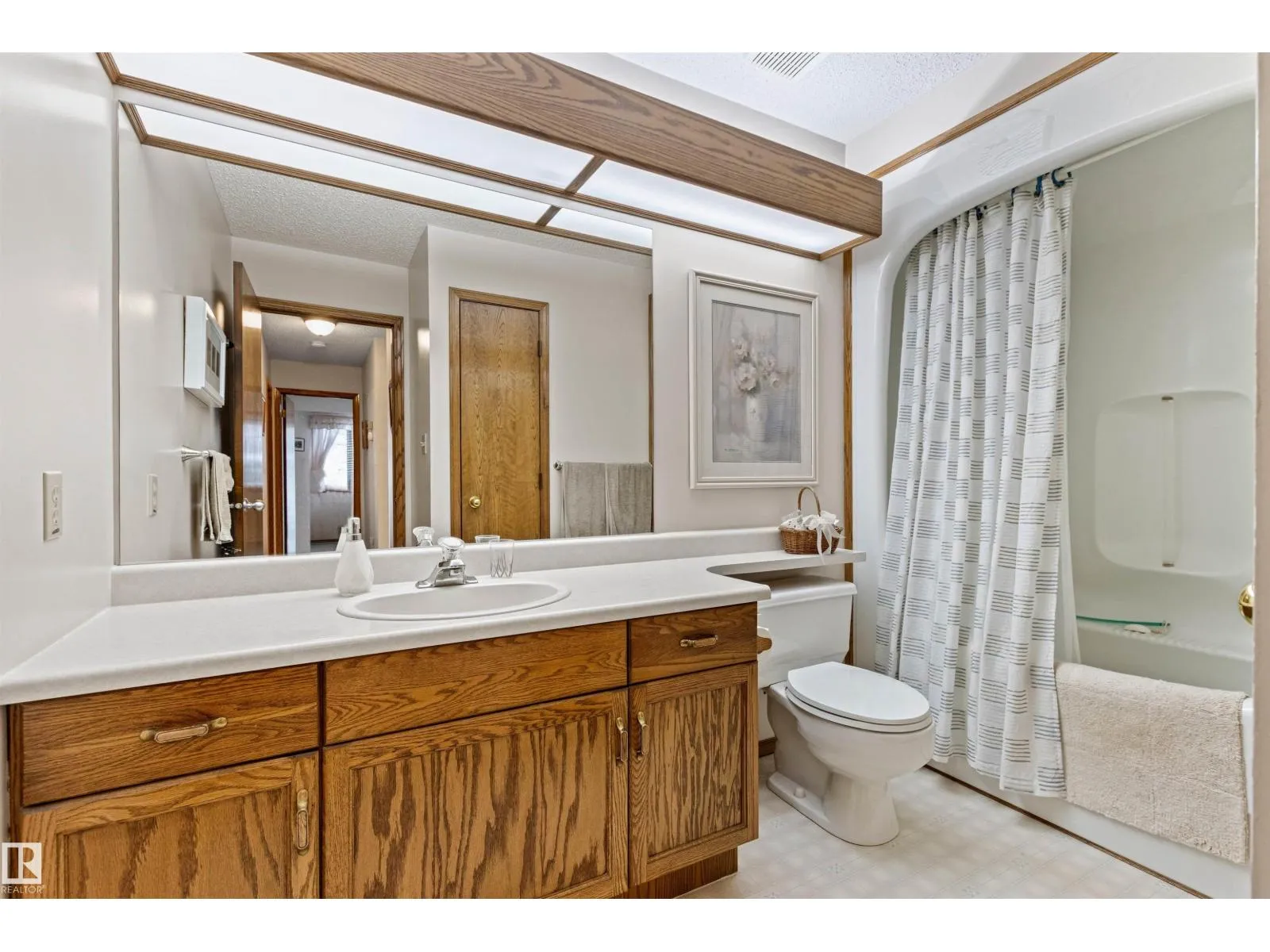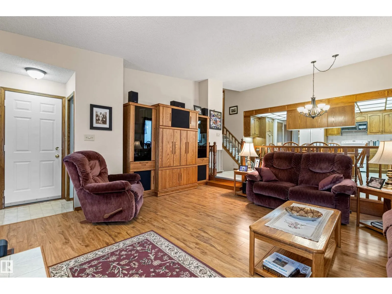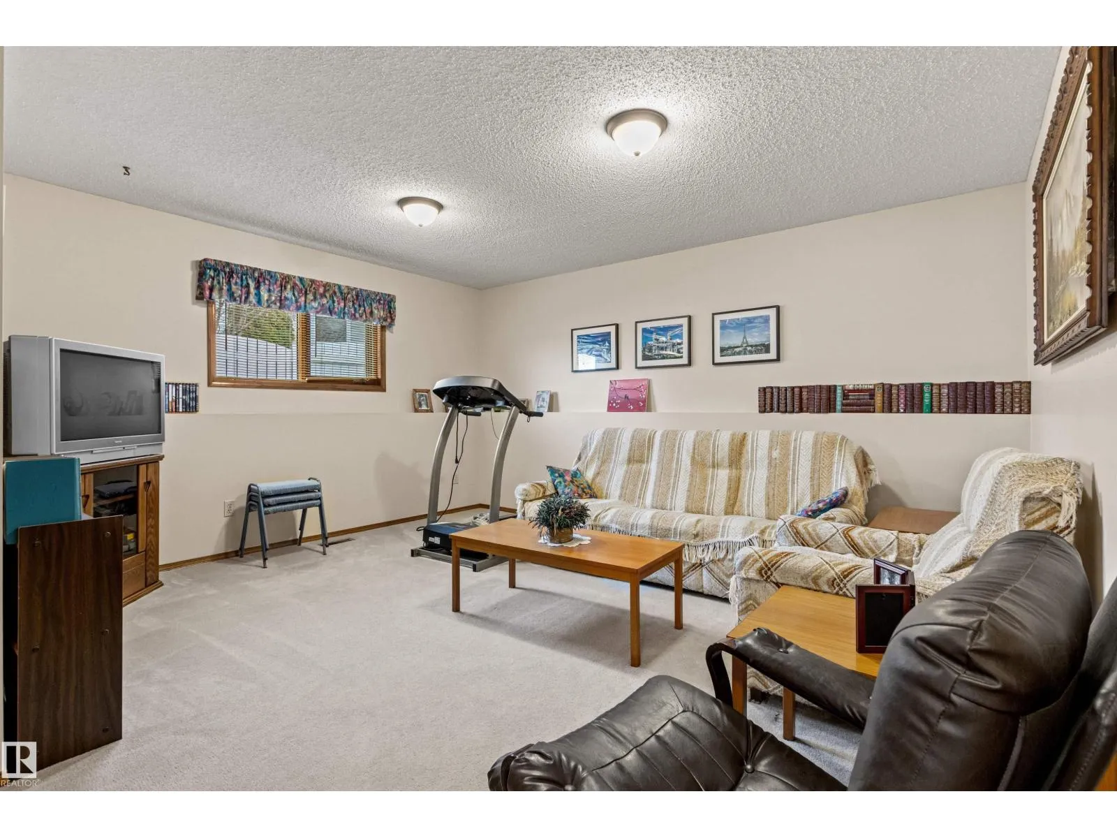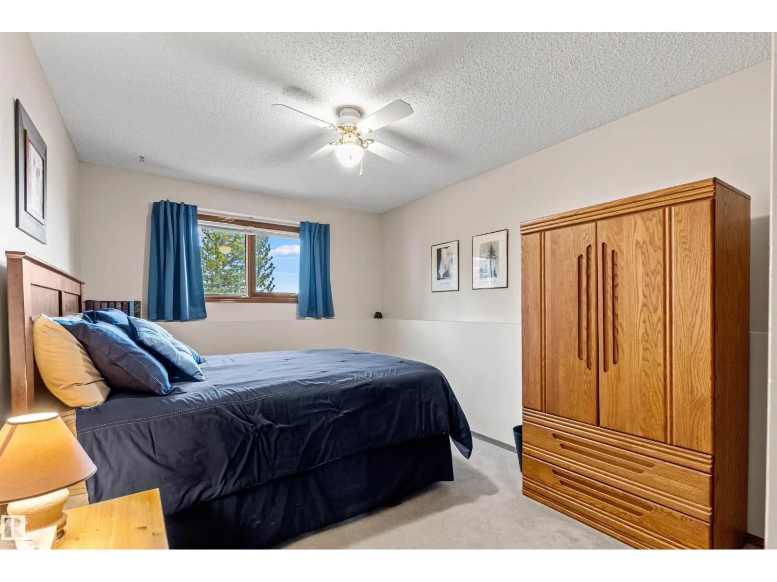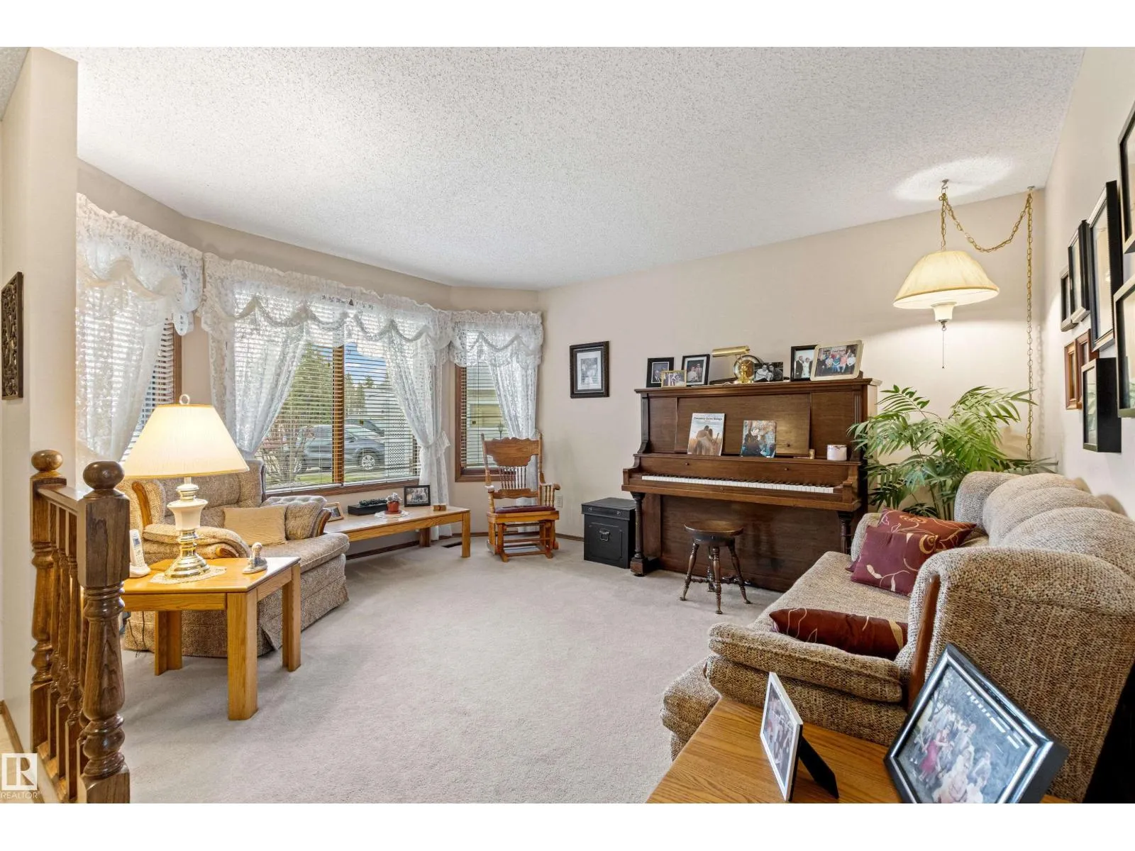 Custom quality 1545sqft 4 level-split in a quiet cul-de-sac. South-east facing patio opens to foyer (access to over-sized garage). Up one step to LR (bay window). Kitchen: (enormous number of cupboards with pantry/writing desk). 6.7â island opens to Dining. Family room (WB fireplace: WETT inspected/fan) with door to enormous pie-shaped yard (brick patio, garden, vinyl & wood fence, shed) backing onto walking trail, schools & park. Upper floor: Laundry (full-sized W/D/cupboards/folding counter); 4-piece Bath; Primary Bedroom (WI closet/2-piece Ensuite); Bedrooms 2 & 3. 3rd level (big above-grade windows): Bedrooms 4 & 5; 3-piece Bath; Rec room. Terraced closet shelving/built-ins through-out. 4th level: high ceiling & huge crawl space & storage. Recent Updates: furnace/humidifier/HWT/plumbing/shingles/Fibre Optic cable. Meticulously maintained by original owners, this family home is located within walking distance to Schools, Transportation & Parks. Close to Shopping/Hospital/Anthony Henday. Welcome Home. (id:27476)