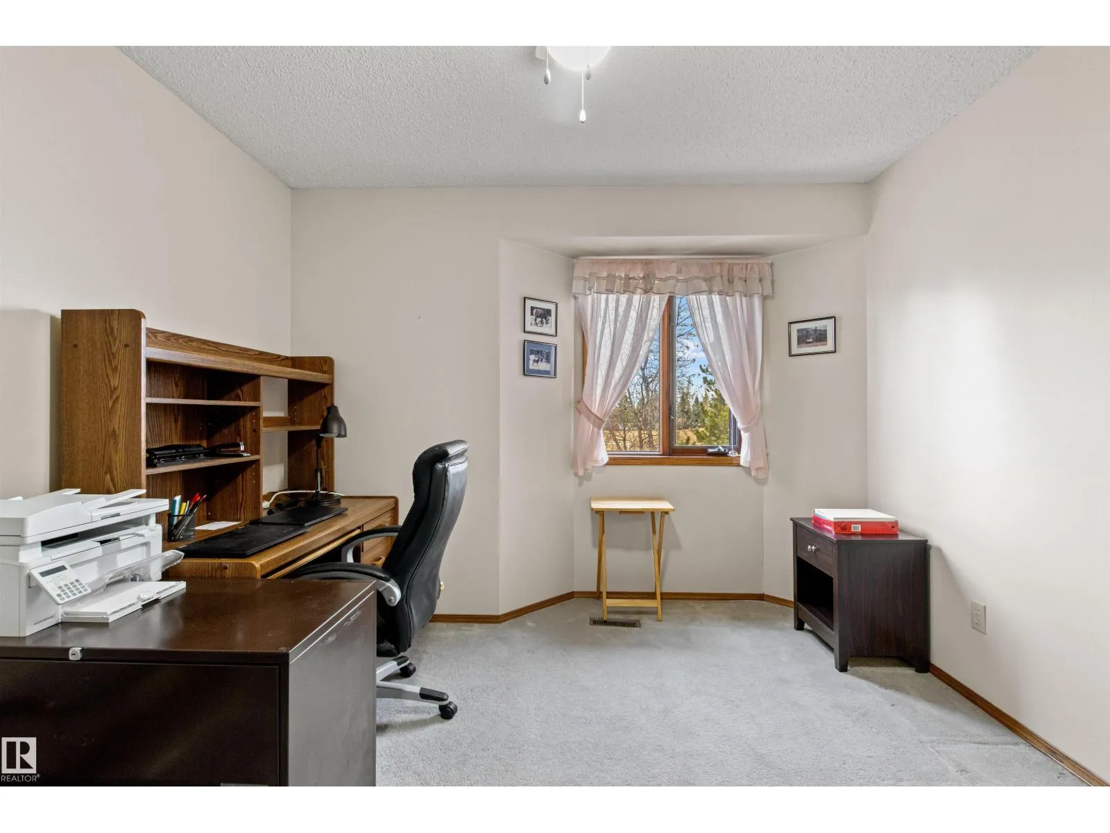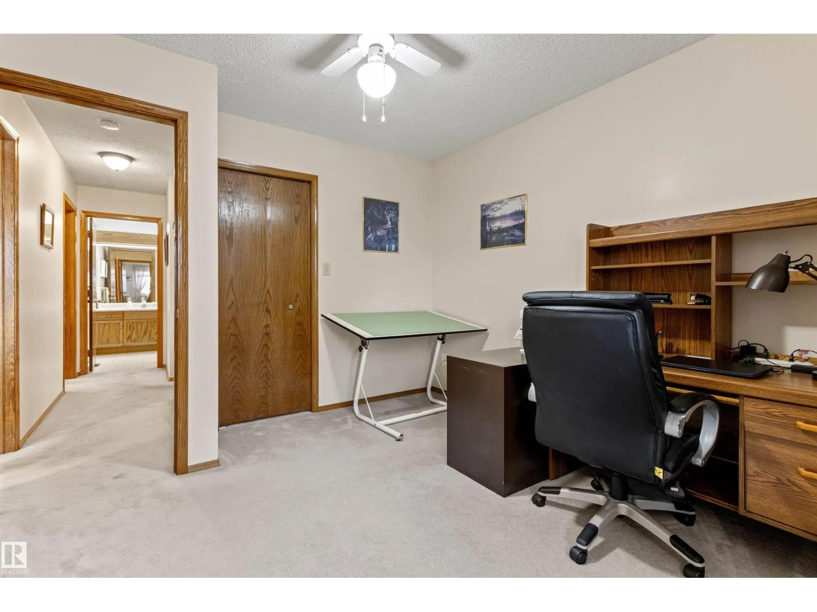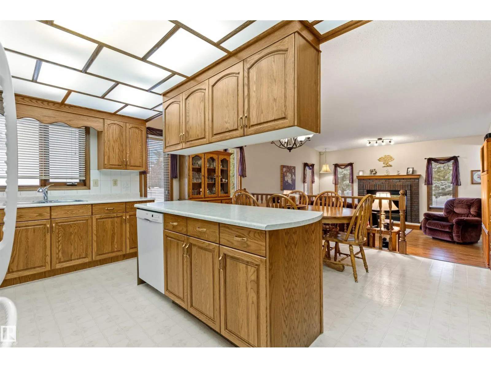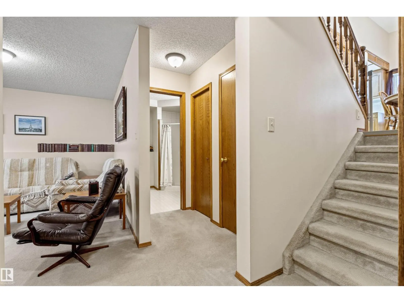 Custom quality 1545sqft 4 level-split in a quiet cul-de-sac. South-east facing patio opens to foyer (access to over-sized garage). Up one step to LR (bay window). Kitchen: (enormous number of cupboards with pantry/writing desk). 6.7â island opens to Dining. Family room (WB fireplace: WETT inspected/fan) with door to enormous pie-shaped yard (brick patio, garden, vinyl & wood fence, shed) backing onto walking trail, schools & park. Upper floor: Laundry (full-sized W/D/cupboards/folding counter); 4-piece Bath; Primary Bedroom (WI closet/2-piece Ensuite); Bedrooms 2 & 3. 3rd level (big above-grade windows): Bedrooms 4 & 5; 3-piece Bath; Rec room. Terraced closet shelving/built-ins through-out. 4th level: high ceiling & huge crawl space & storage. Recent Updates: furnace/humidifier/HWT/plumbing/shingles/Fibre Optic cable. Meticulously maintained by original owners, this family home is located within walking distance to Schools, Transportation & Parks. Close to Shopping/Hospital/Anthony Henday. Welcome Home. (id:27476)