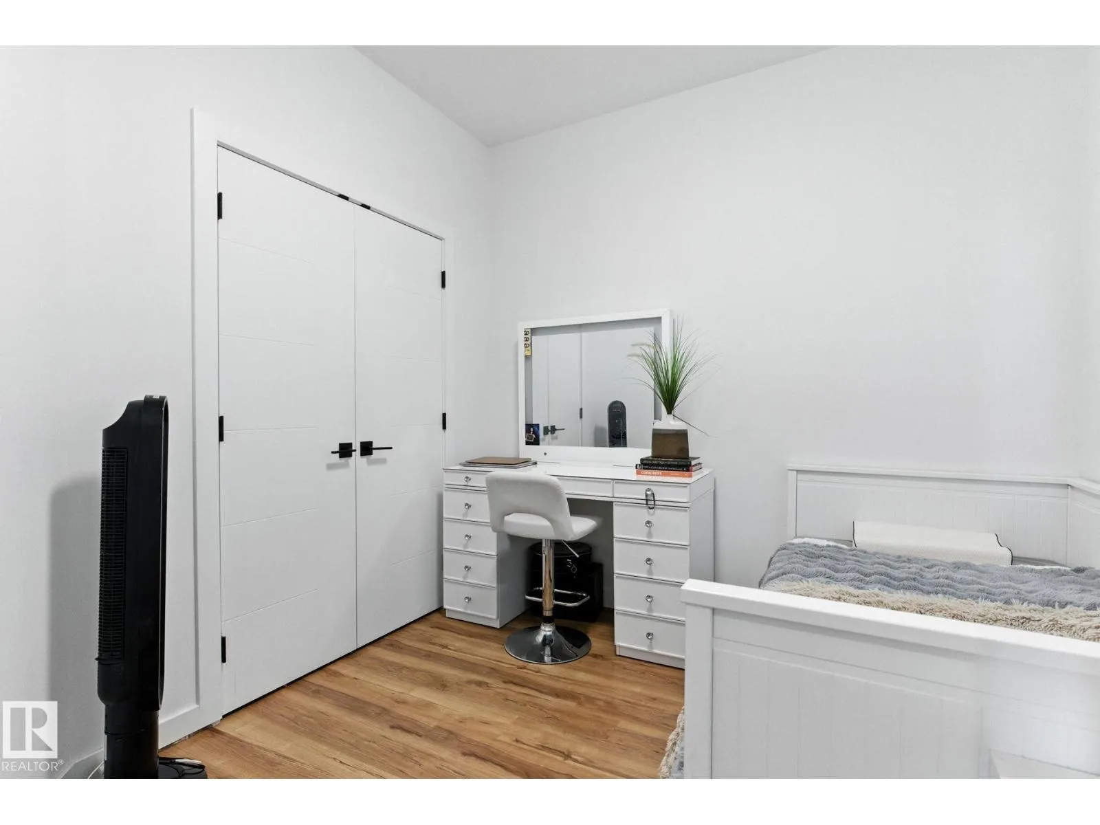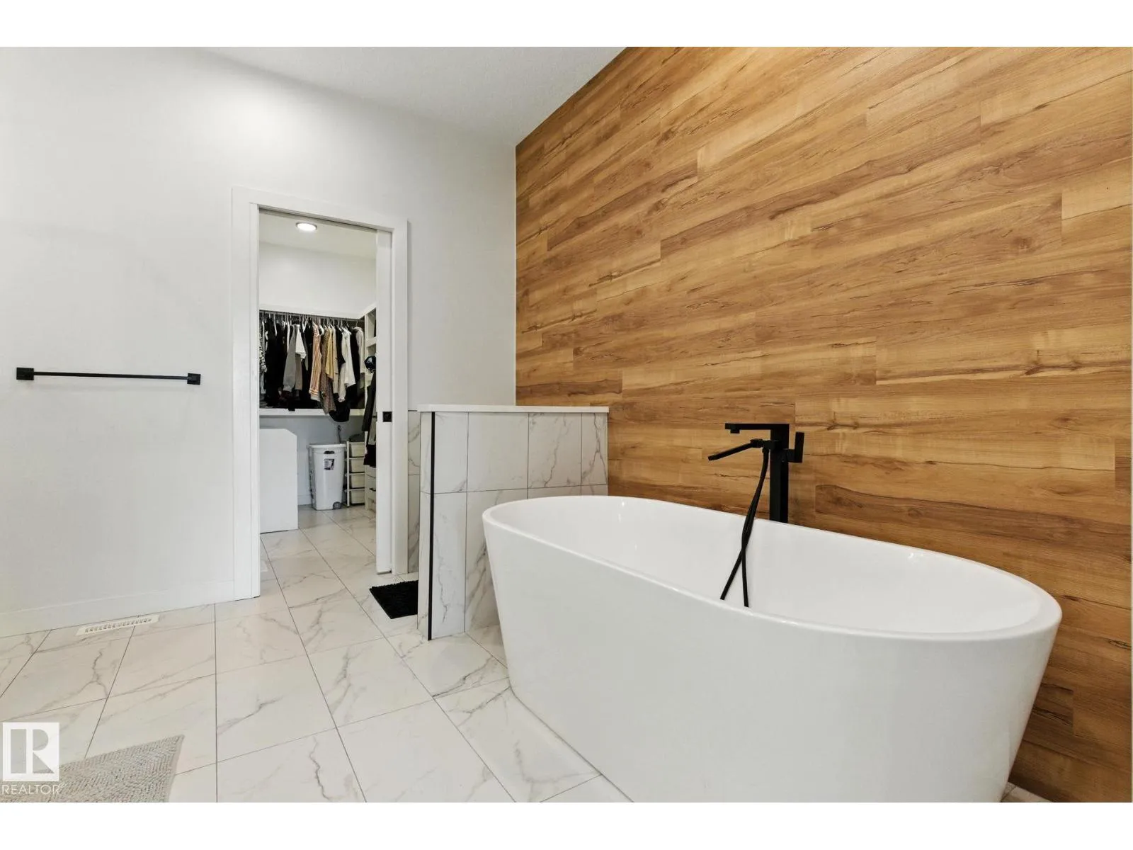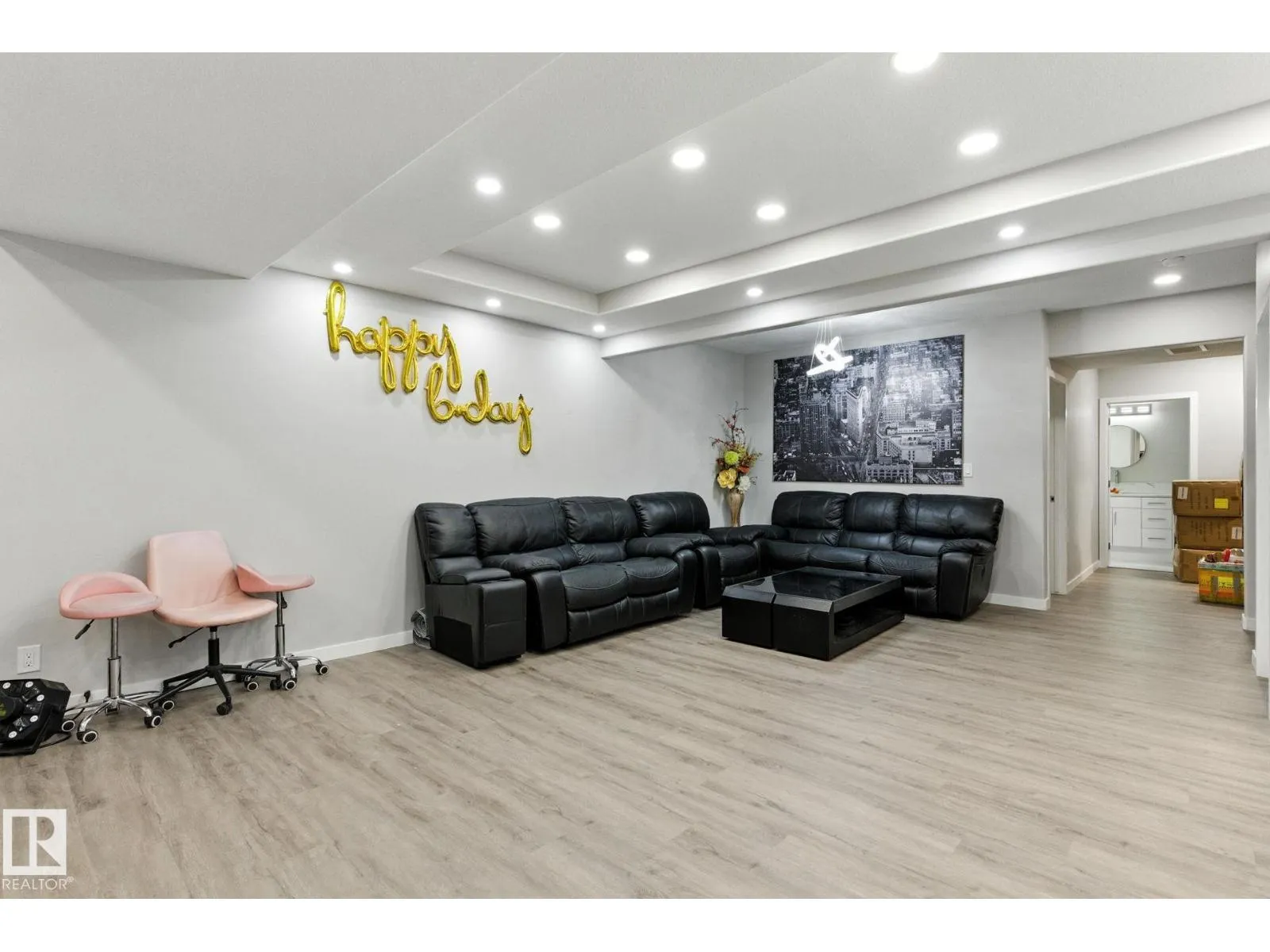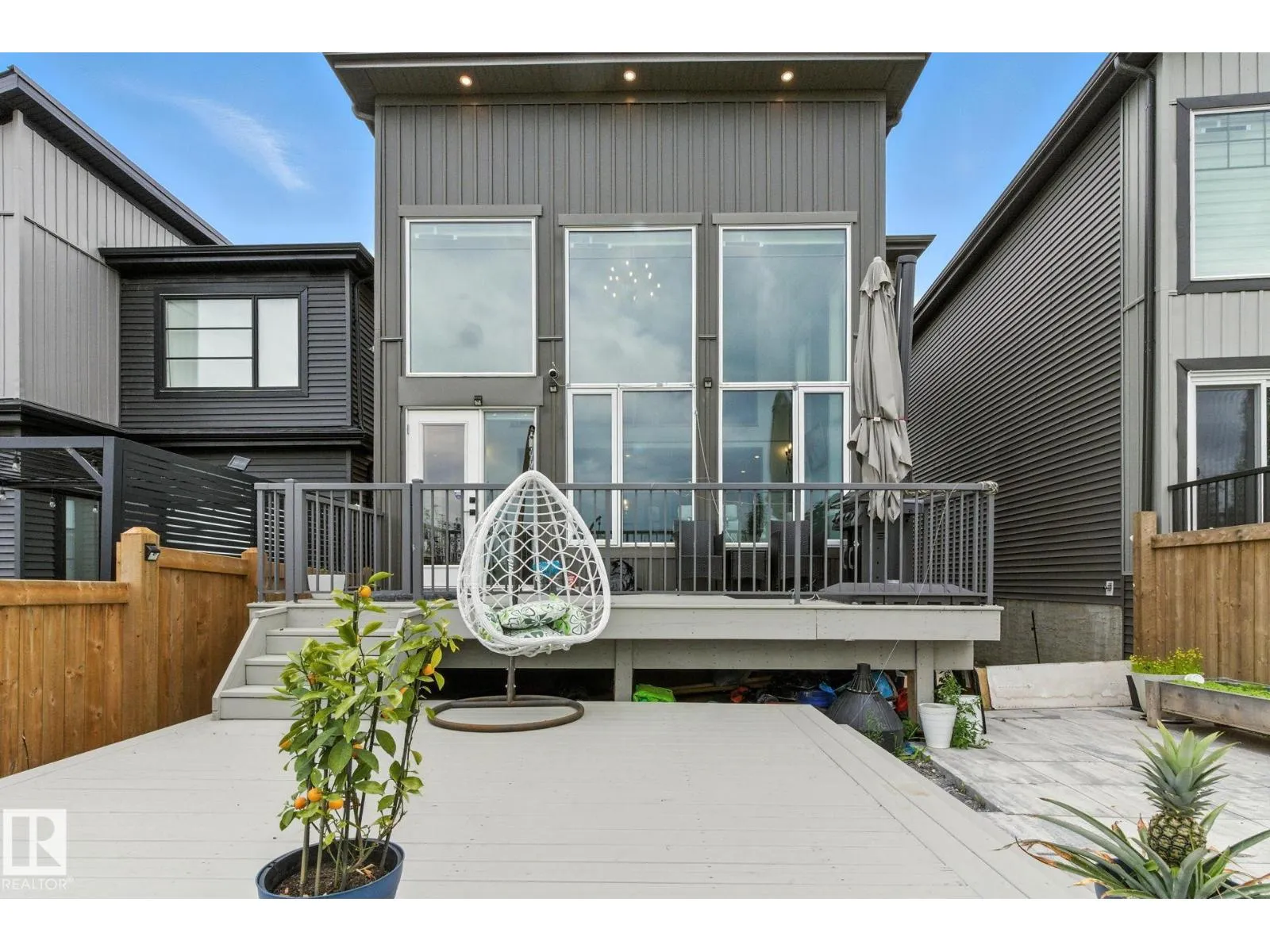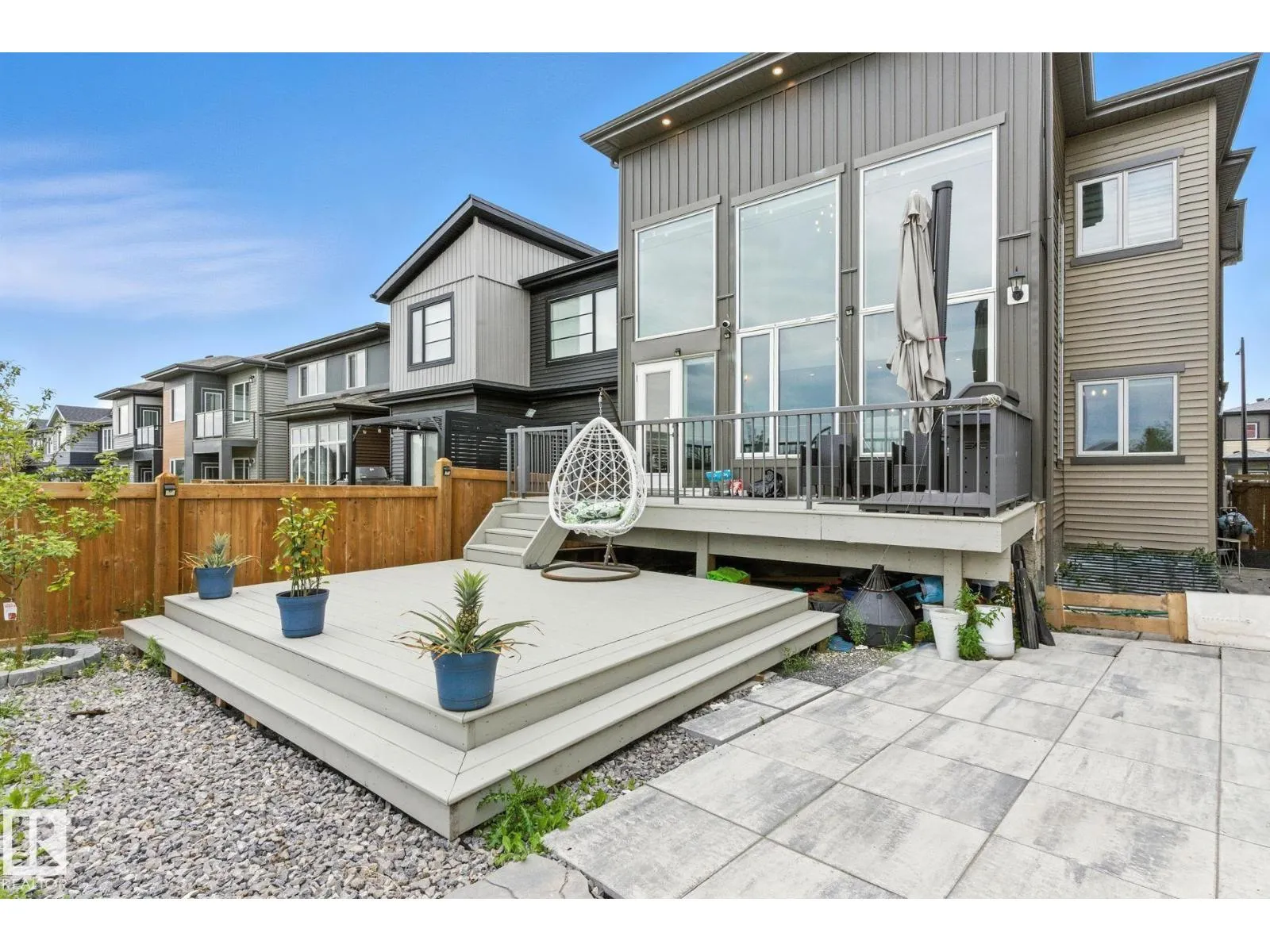 In the growing community of Kinglet Gardens, this home combines style and functionality, featuring elegant flooring, accent walls, upgraded lighting, and a kitchen with warm wood tones, built-in wine storage, and modern appliances. The main floor offers a dining area, full bathroom, and a flexible office or bedroom, while the open-to-above living room with floor-to-ceiling windows allows natural light to fill the space and creates a sense of openness. Upstairs includes a bonus room, a space suitable for a gym or meditation area, and a primary suite with coffered ceilings, barn door, ensuite with dual sinks, and a walk-in closet connected to the laundry, along with two additional bedrooms and a full bathroom. The finished basement features a separate side entrance, wet bar, entertainment area, and a den that can be used for work, guests, or hobbies, with additional storage and utility spaces. Located near schools, parks, and main roadways, the home supports a well-connected and convenient lifestyle. (id:27476)
