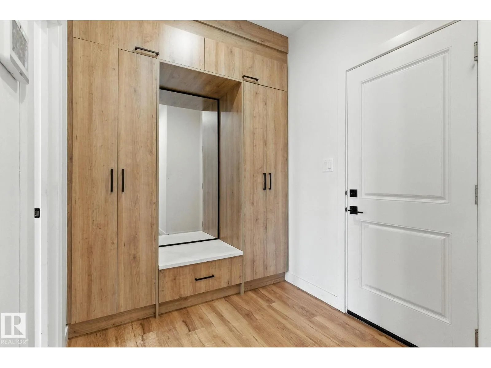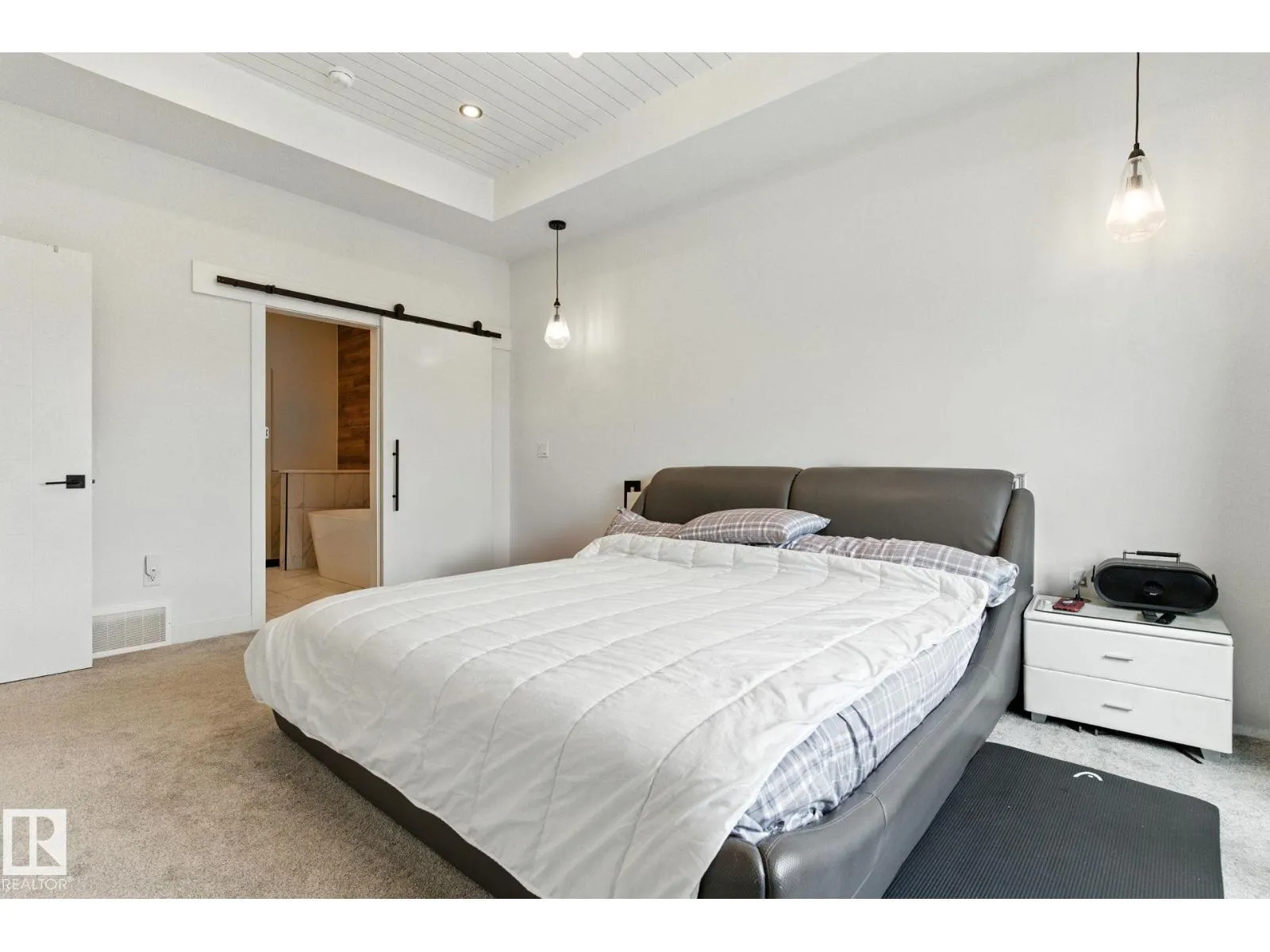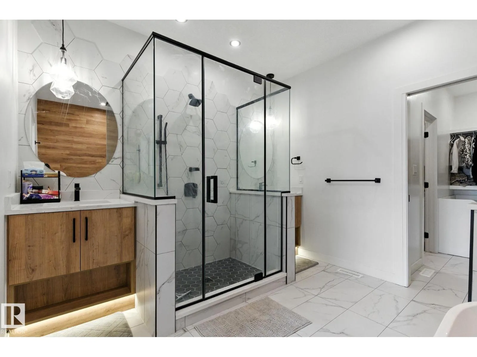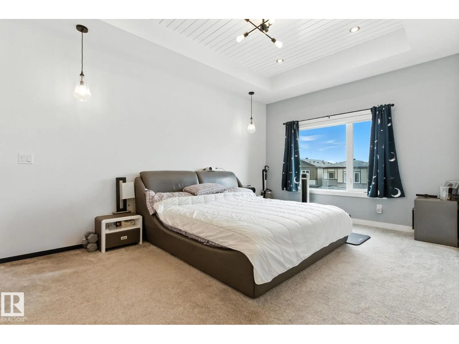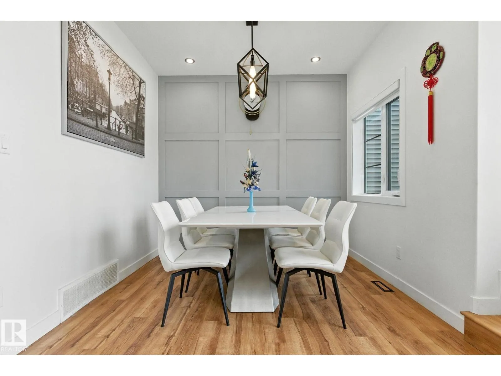 In the growing community of Kinglet Gardens, this home combines style and functionality, featuring elegant flooring, accent walls, upgraded lighting, and a kitchen with warm wood tones, built-in wine storage, and modern appliances. The main floor offers a dining area, full bathroom, and a flexible office or bedroom, while the open-to-above living room with floor-to-ceiling windows allows natural light to fill the space and creates a sense of openness. Upstairs includes a bonus room, a space suitable for a gym or meditation area, and a primary suite with coffered ceilings, barn door, ensuite with dual sinks, and a walk-in closet connected to the laundry, along with two additional bedrooms and a full bathroom. The finished basement features a separate side entrance, wet bar, entertainment area, and a den that can be used for work, guests, or hobbies, with additional storage and utility spaces. Located near schools, parks, and main roadways, the home supports a well-connected and convenient lifestyle. (id:27476)