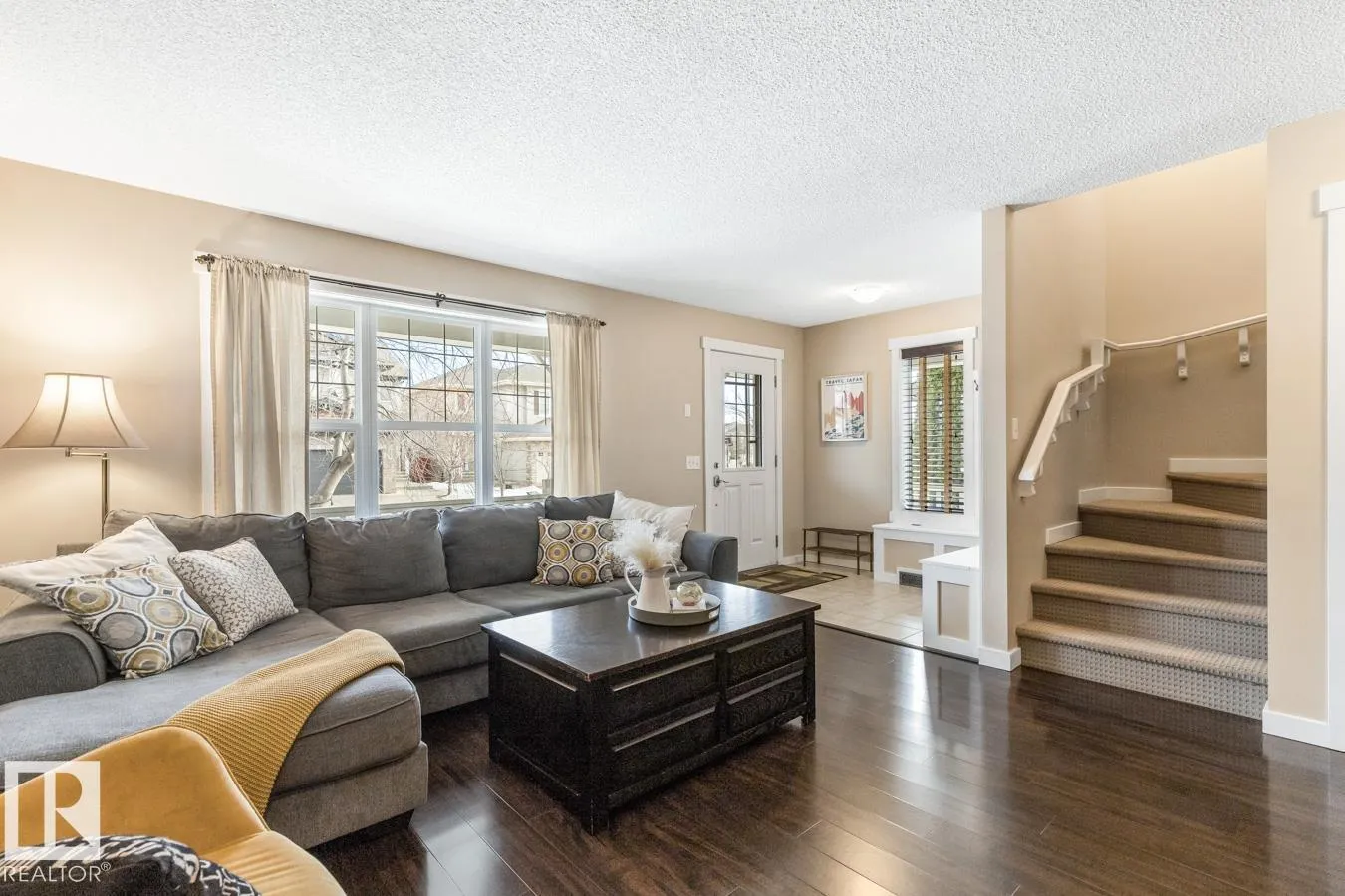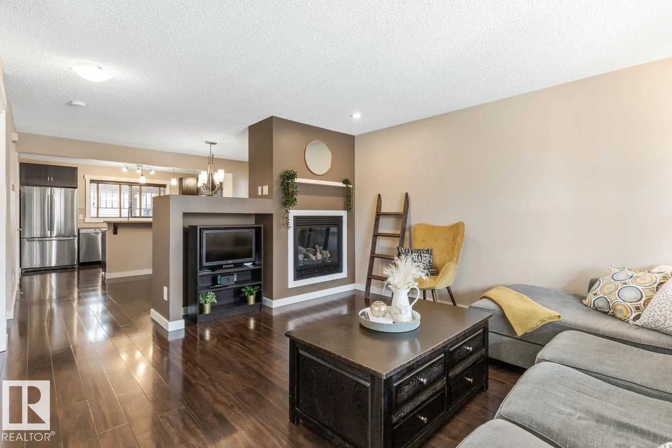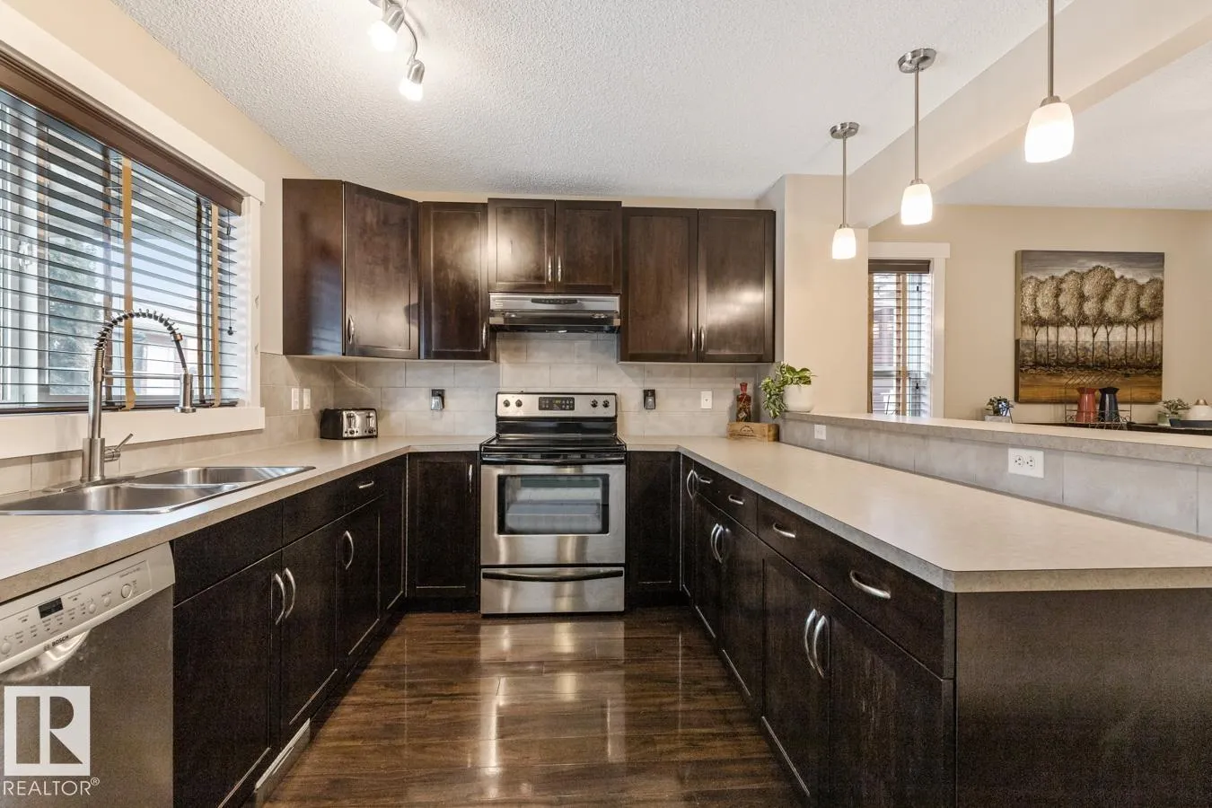 Welcome to Charlesworth and this beautifully maintained Avi-built home offering 4 bedrooms, 2.5 baths & a HEATED GARAGE. A charming front verandah sets the tone, leading into a bright, inviting layout with laminate flooring and a cozy fireplace anchoring the living room. The kitchen is designed for gathering, featuring abundant cabinetry, stainless steel appliances, pantry & peninsula island overlooking the dining area. Upstairs, the king-sized primary suite offers a walk-in closet & 4-piece ensuite, while two spacious bedrooms & a full bath complete the level. The fully finished basement expands your living space with a large rec room, 4th bedroom & excellent storage. Step outside to a fenced, landscaped yard with aggregate patio, perfect for relaxing or entertaining. Located just steps to parks, schools & shopping, this move-in ready home blends comfort, style & everyday convenience. (id:27476)