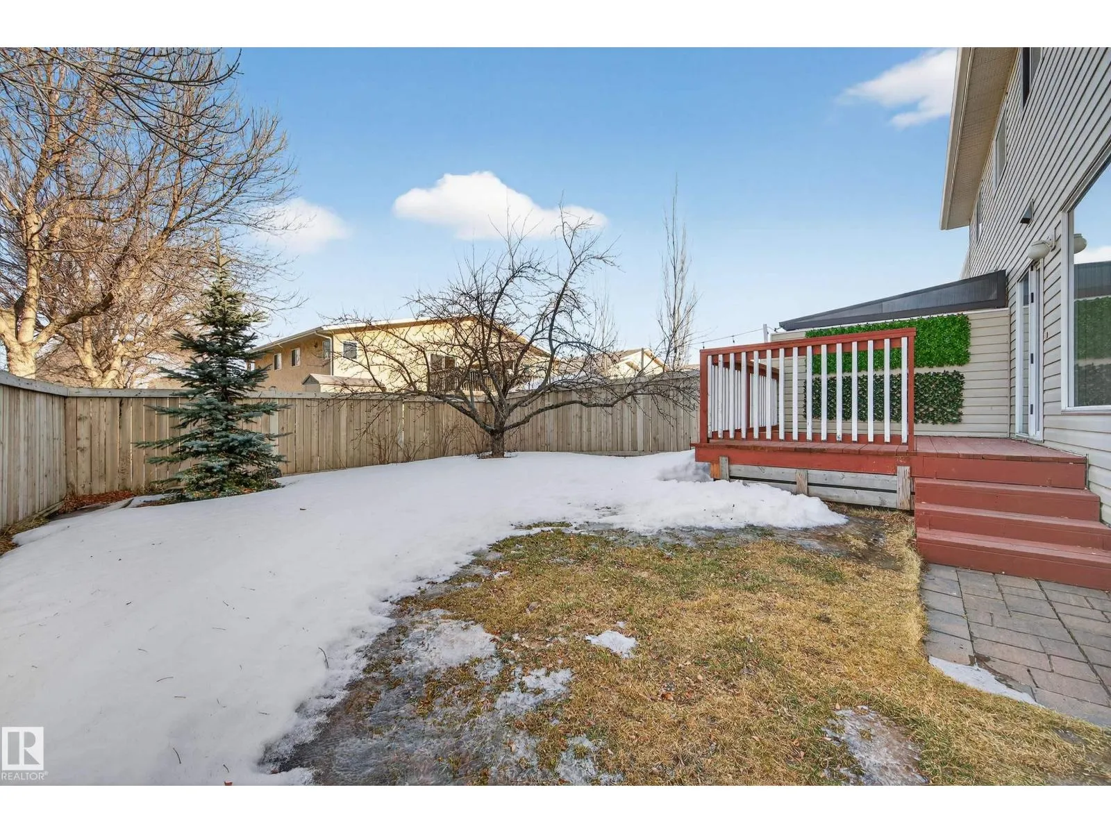 Welcome to this charming corner half duplex tucked in a quiet cul-de-sac just steps from Ozerna Park. This well-maintained home offers comfort, privacy, and beautiful natural light with mature trees and a fully fenced yard featuring a lovely apple tree. The bright main floor includes a spacious living room, dining area, and functional kitchen with updated appliances. Patio doors open to a sunny east-facing deck, perfect for morning coffee or relaxing evenings. Upstairs, youâll find 3 bedrooms, including a large primary with dual closets and direct access to the 4-piece bath. The fully finished basement adds valuable living space, and the laundry area offers potential to add a second full bathroom. Fresh paint, professional cleaning, and brand-new, never-used washer and dryer make this home truly move-in ready. Close to schools, parks, and amenities-ideal for first-time buyers, young families, or downsizers. (id:27476)