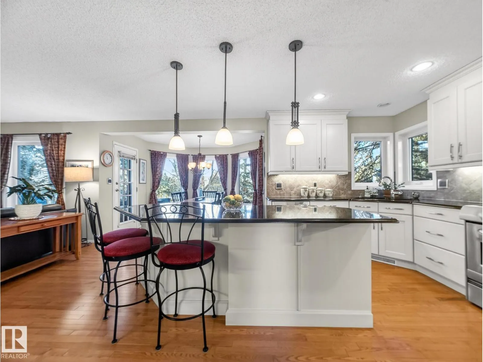 Welcome home to the prestigious community of Rhatigan Ridge. This amazing 4-bedroom family home was built by Ace Lange Homes and has had many updates and upgrades over the years. Upon entering the home, you are greeted with vaulted ceilings and a curved staircase! Updated open concept kitchen includes stainless appliances and granite countertops. The main floor includes a den/office, great room with fireplace, kitchen, breakfast nook, dining room, family room and laundry room. The rear composite deck and landscaped yard is accessed directly from the kitchen to enjoy the hot tub and BBQ. Upstairs includes 4 bedrooms and updated bathrooms. The primary bedroom is massive to include a walk-in closet and an updated 5-piece ensuite. The lower level is fully finished with an additional gas fireplace and sitting room. Upgrades to include hardwood flooring, shingles, kitchen, bathrooms, windows, and furnace....the list goes on and on! All of this and you get a triple garage! (id:27476)