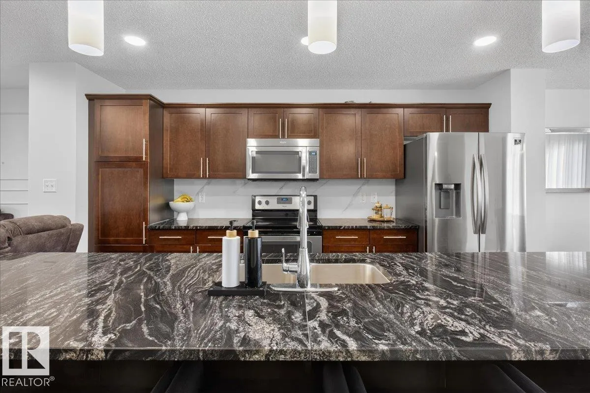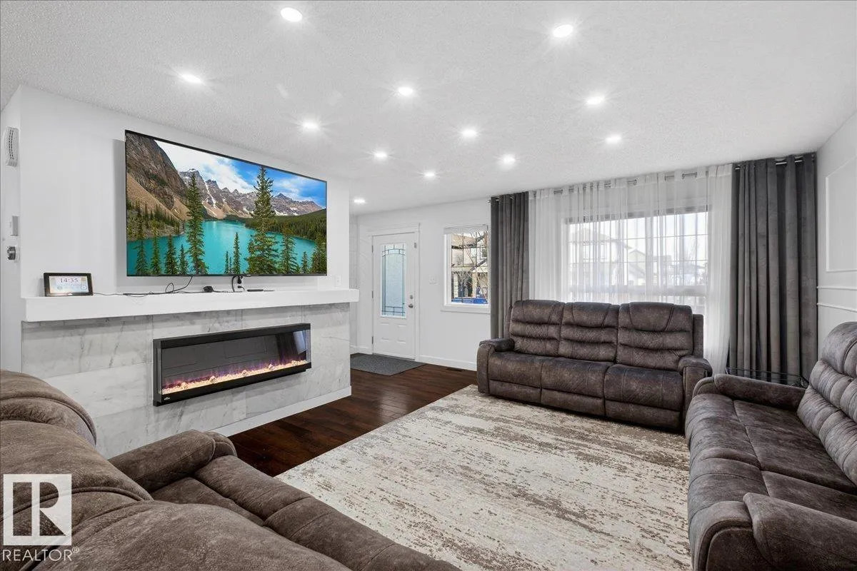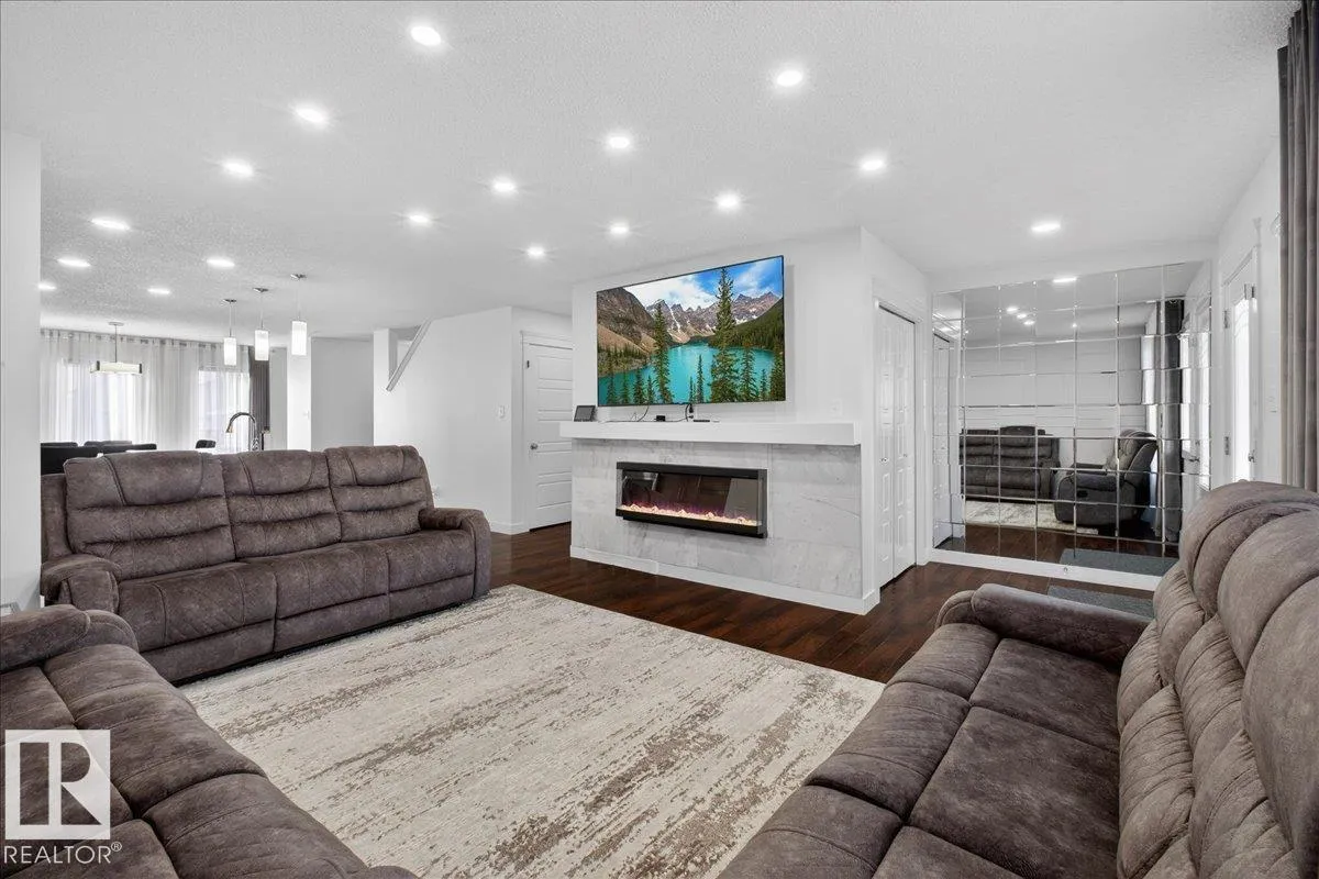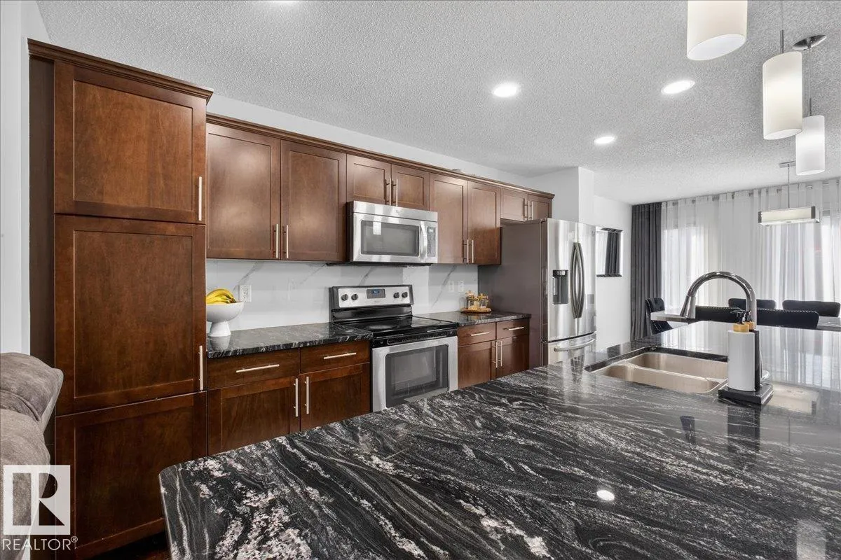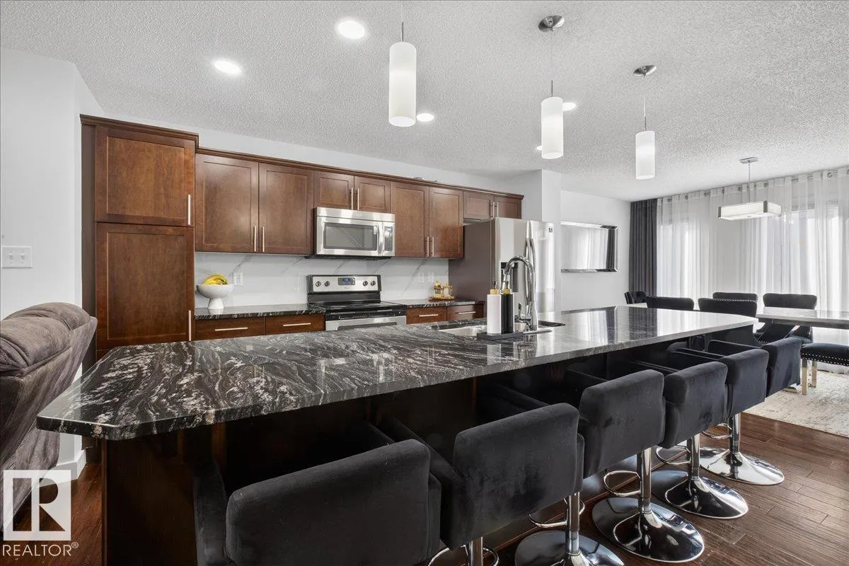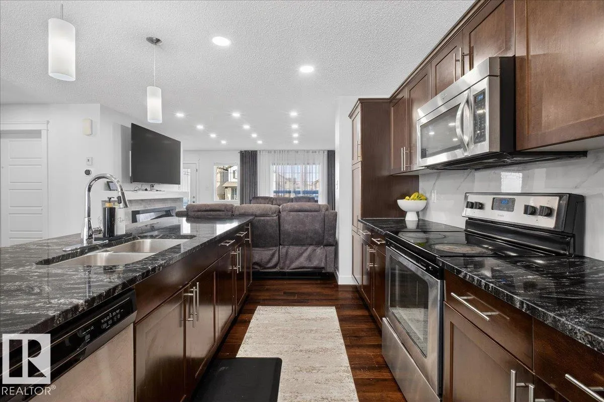 Beautiful upgraded single family house in Laurel. Main floor living room with lots of light flowing through the open concept kitchen with SS appliances, island, granite countertops, lots of cabinetry space. Adjoining is big dining area. Main floor has hardwood flooring throughout with 2 pc bath . As you go upstairs, there is master bedroom with 4 pc ensuite and WI closet. There are 2 more nicely sized bedrooms and one extra 4 pc bathroom to share on upper floor. The house has been upgraded with nice new window coverings, Fire place station , light pots, and a huge new deck, land scapings and more. Nicely fenced and landscaped backyard. Close to Laurel lake, walking trail, park, school, public transportation. Easy access to Anthony Henday.. (id:27476)