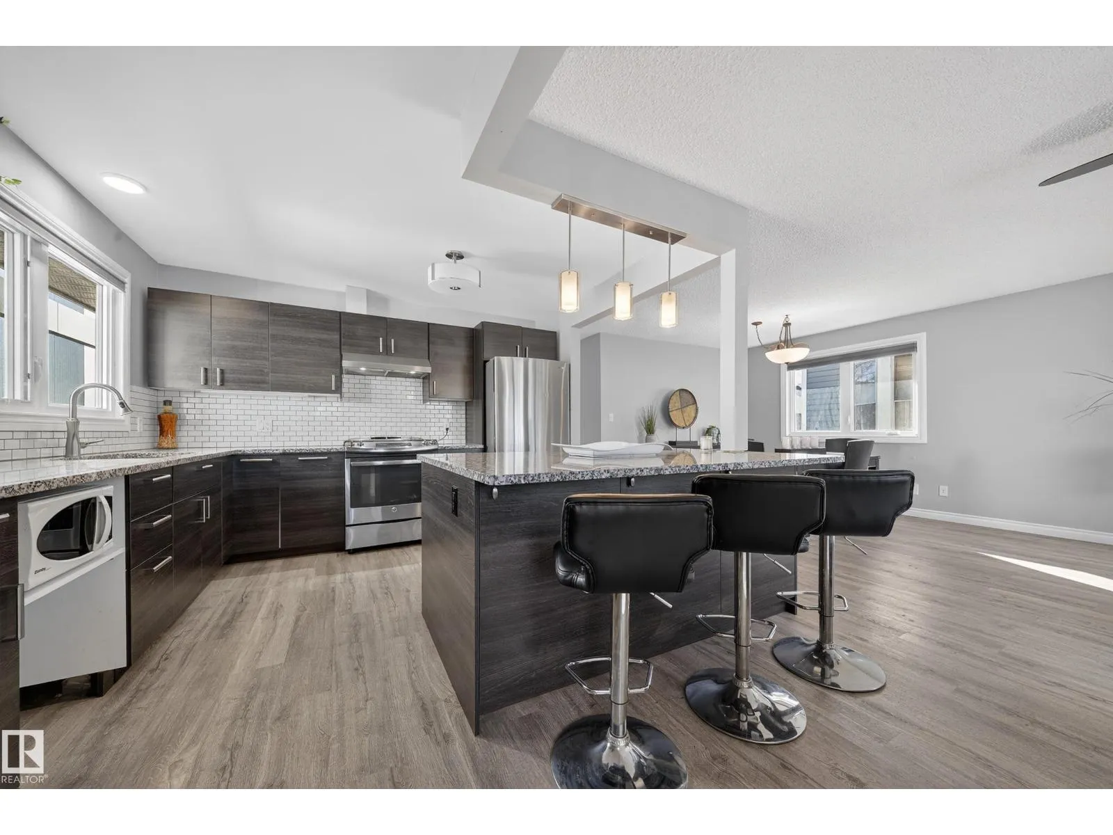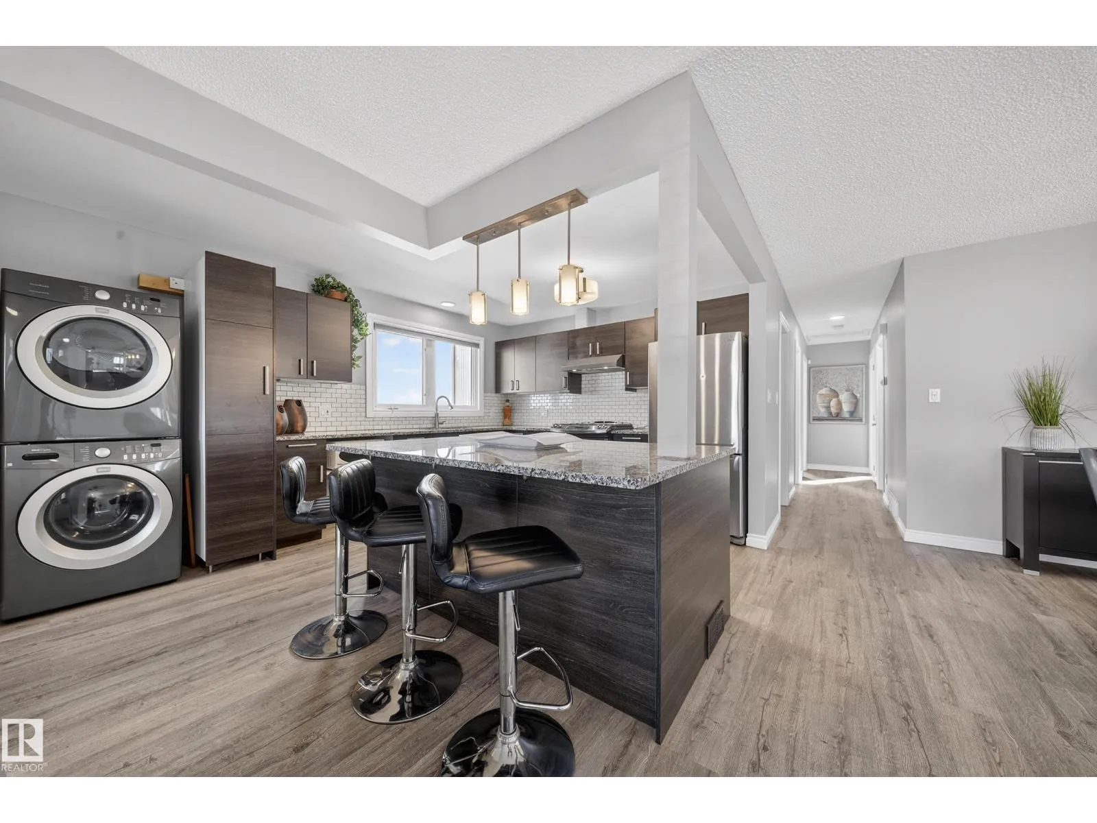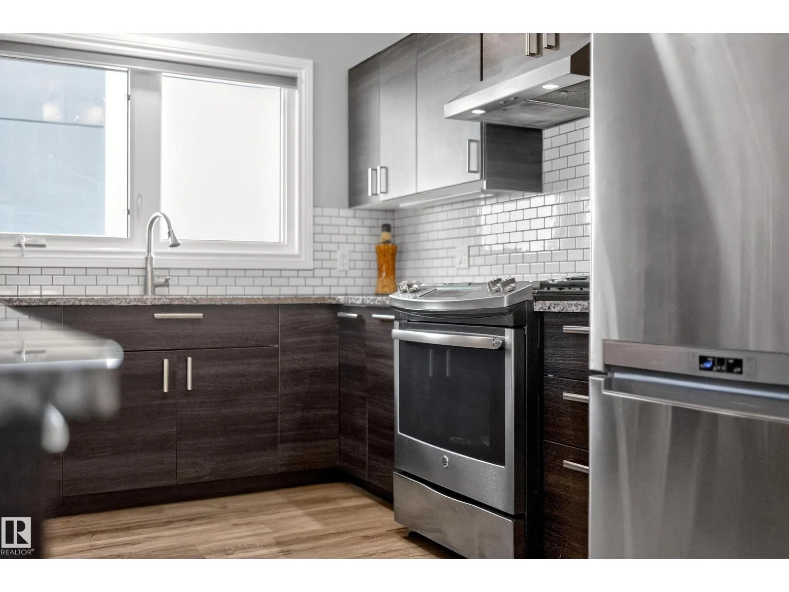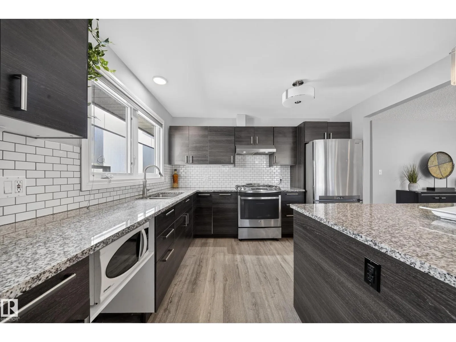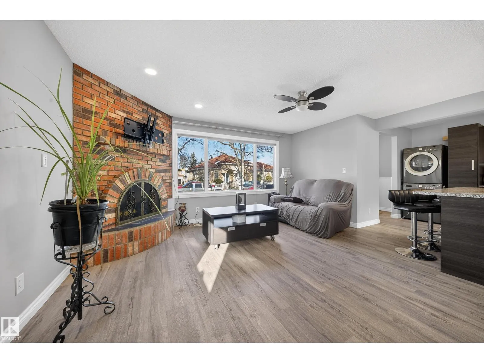 Investors & first-time buyers alert! Well-maintained and extensively updated bungalow offering 4 bedrooms, 2.5 baths, with potential for a 5th bed. Just minutes to NAIT, NorQuest, MacEwan, Rogers Place, Royal Alex Hospital, downtown, etc. The main floor features a spacious kitchen, dining area, and living room with a classic brick-facing fireplace. The primary bedroom with 2-piece ensuite. There are two additional bedrooms and a full bathroom on the main level. The basement comes with a separate entrance and includes a second kitchen with dining nook, a large living area with brick fireplace, one bedroom, full bathroom, laundry, plus an unfinished room that could be converted into a 5th bedroom. Detached garage and backyard with room for a garden. UPGRADES INCLUDE roof and shingles, foundation work with dimpled membrane & weeping tile, remodeled kitchen and baths upstairs, updated windows, vinyl plank flooring, sump pump, backflow valve, front exterior paint, smart thermostat. (id:27476)