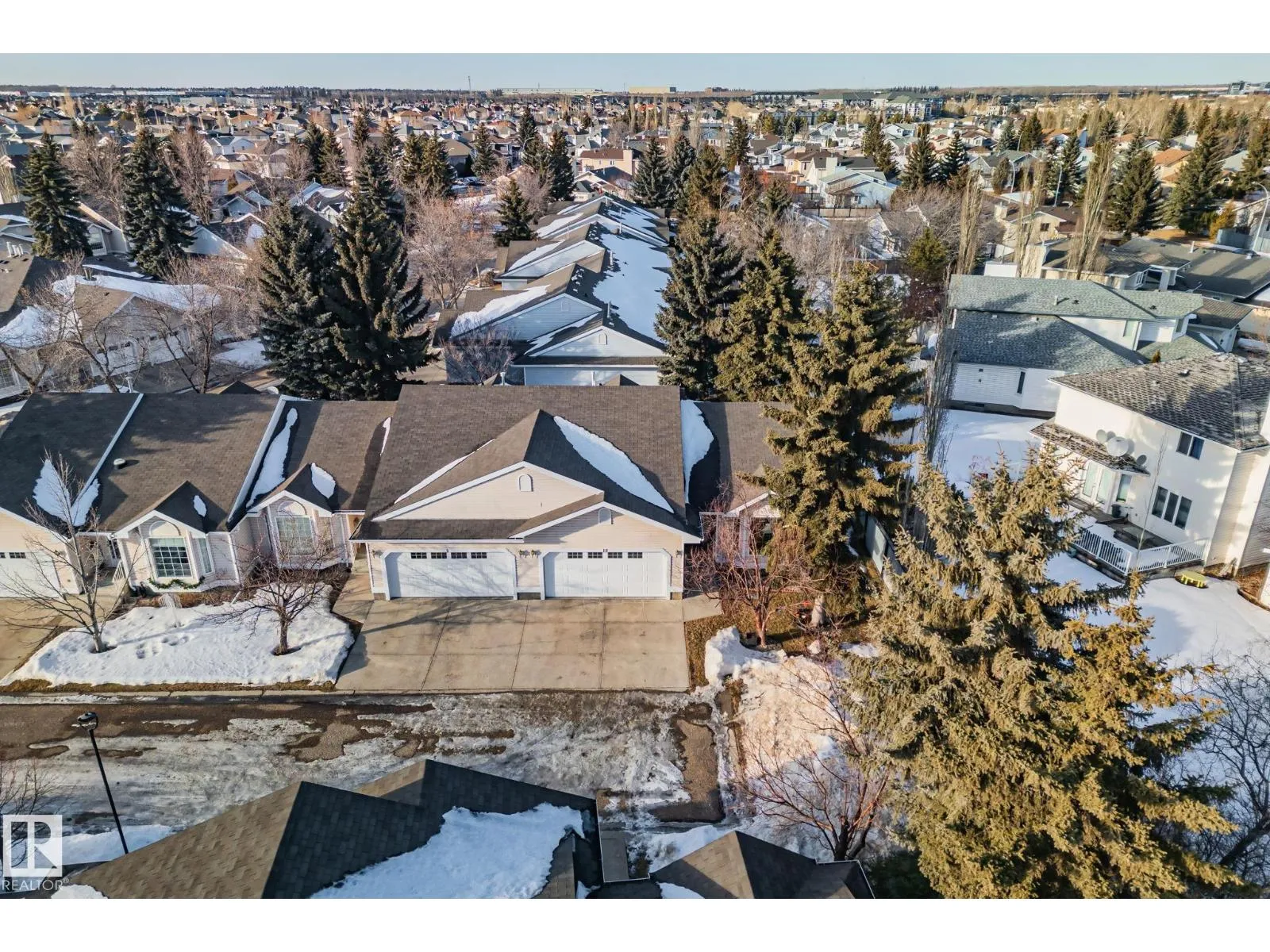 END-UNIT | UPDATED | BUNGALOW | ADULT 50+ Welcome to this bright bungalow townhome in Oxford, Northwest Edmonton, minutes to Albany Market, Skyview Centre, Saint Albert Trail and the Anthony Henday. Set in a peaceful, well-kept community close to shopping, dining and everyday amenities. Enjoy true main-floor living with a primary retreat and ensuite, plus a second bedroom and full bath on the same level. Extra windows and triple-pane glass keep it private, quiet and light-filled. Fresh paint, luxury vinyl plank flooring updated in 2022 and updated appliances keep it move-in ready. The finished basement adds a third bedroom, full bath and flexible recreation space for guests, hobbies or movie nights. Step out to your secluded back deck and enjoy the comfort of a double attached heated garage. Condo fees include water, sewer, garbage, snow removal and lawn care, plus access to a large community clubhouse. Peace of mind with a 2025 sewer scope confirmed clear and fibre optics installed. Flexible possession. (id:27476)