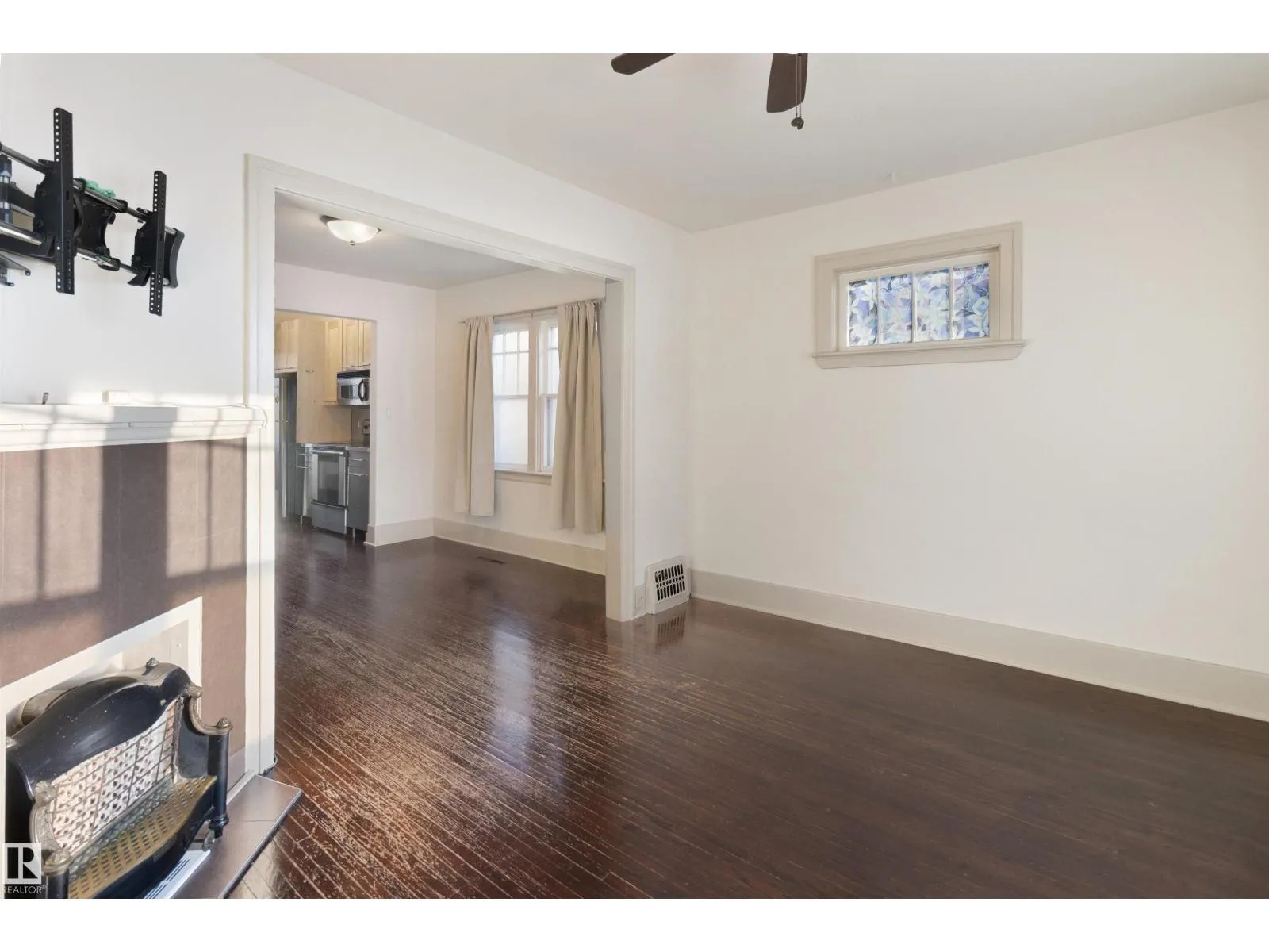 Living in Queen Alexandra offers a central lifestyle with immediate access to Whyte Avenue, the University of Alberta, and the river valley. This charming bungalow sits on a mature lot in a very desirable neighbourhood. The enclosed front foyer addition offers space for organization or something creative. The main floor contains a living room with hardwood floors and a fireplace along with a dining area. The kitchen is finished with modern cabinetry and stainless steel appliances. Two bedrooms are located on the main level while the full attic provides a primary suite or office. The property has recent yard grading to ensure proper drainage around the foundation. Existing updates to the home include the furnace, shingles, and basement windows. The exterior space includes a private deck, mature gardens, and a single detached garage. An unfinished basement provides options for storage or future development. This home combines a functional layout with a prime location near downtown and major transit routes. (id:27476)