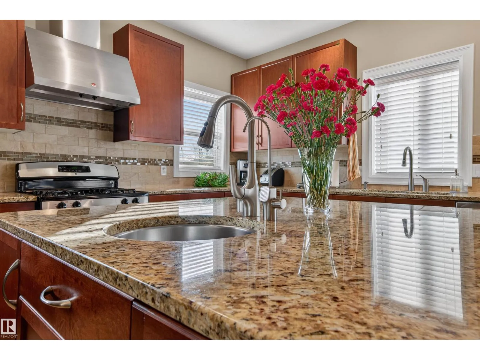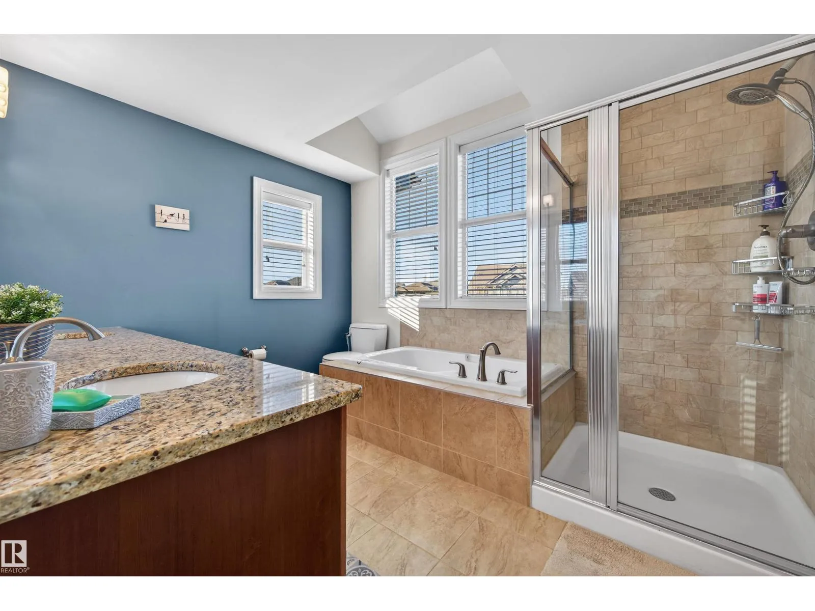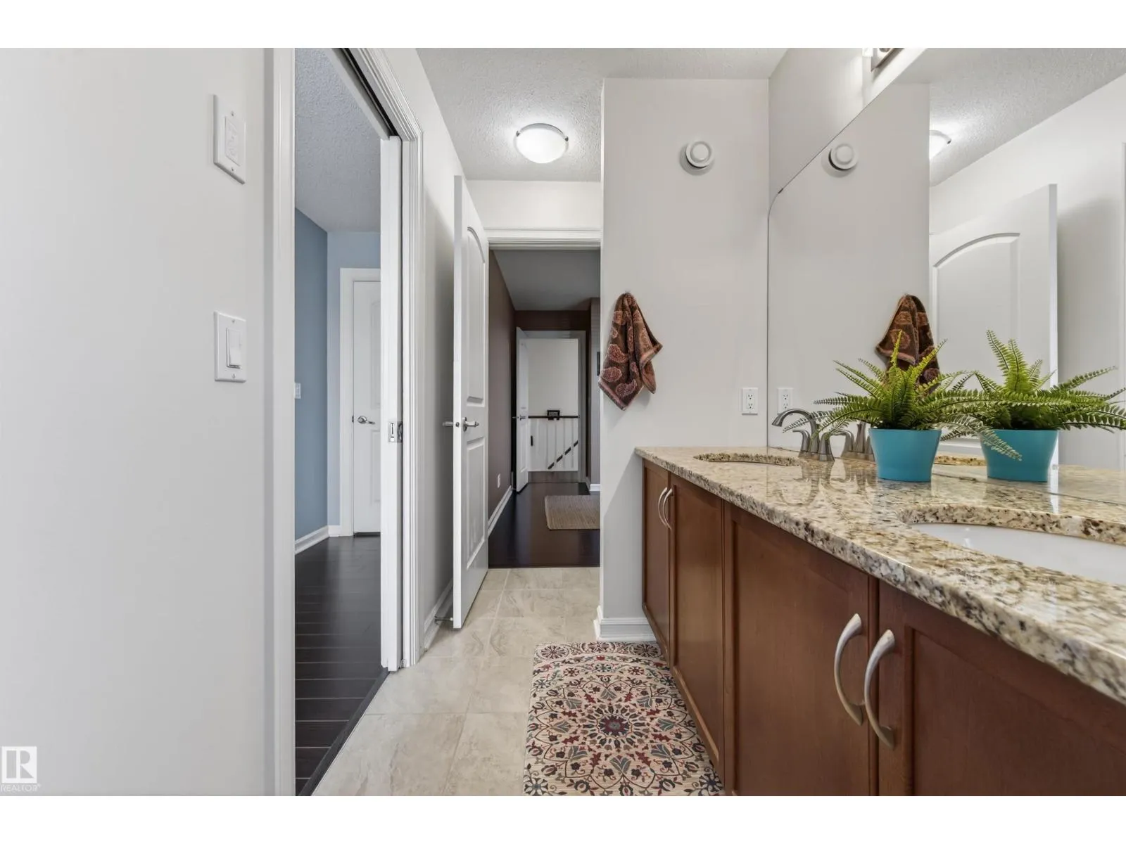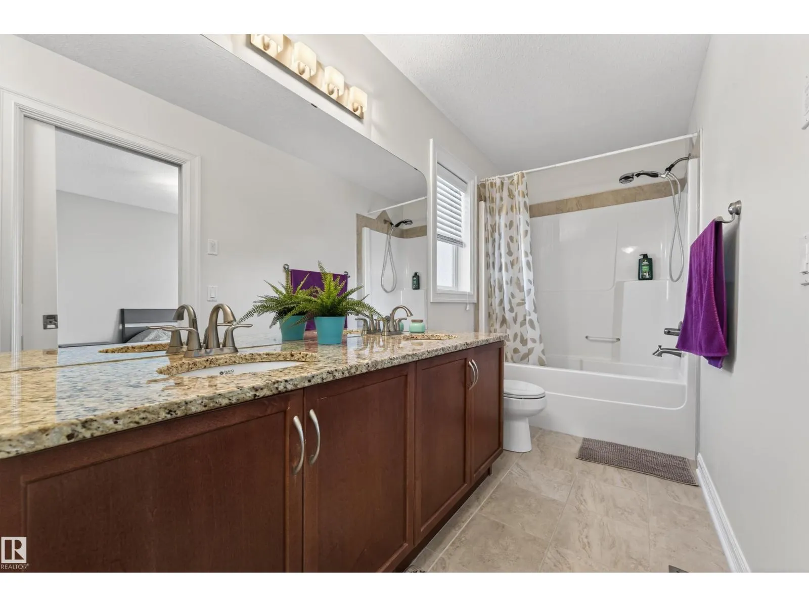 Welcome to this beautifully home where style, comfort, and thoughtful design come together seamlessly. A spacious entryway opens into an impressive living room anchored by a striking two-sided fireplace that flows effortlessly into the bright and elegant dining area. At the heart of the home is the stunning chefâs kitchen, featuring granite countertops, a gas stove, fridge (2024), built-in pantry, and an oversized island complete with a second sink(water filter)âperfect for cooking, gathering, and entertaining. Upstairs, the oversized primary bedroom offers a true retreat with a walk-in closet and a spa-inspired ensuite showcasing a large soaker tub and a glass-and-tile shower. Two additional bedrooms share a convenient Jack-and-Jill 5PC bathroom. A bonus room, upper-floor laundry, built-in tech space complete this level. The fully developed basement provides the ideal flex space, complete with a 4PC bathroom featuring Heated Floors. There is also potential for a second entrance through the mudroom. AC. (id:27476)