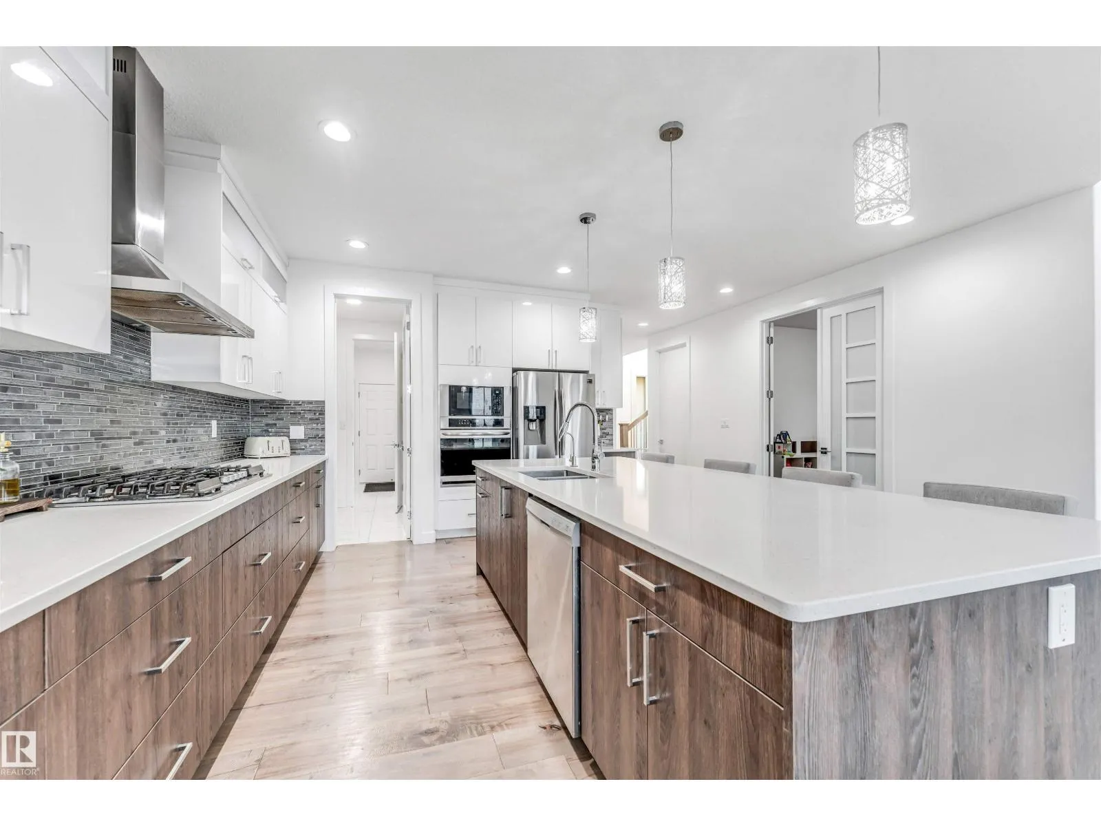 Welcome to Graydon Hill, a serene southwest community surrounded by nature yet minutes from city conveniences. This beautifully maintained home offers over 2,700 sq.ft. plus a fully finished basement with a side entrance. Enjoy natural light throughout w/ soaring windows & a vaulted living room. Gorgeous kitchen features a walk through pantry, upgraded appliances (incl. gas stove), Air Condition & reverse osmosis. Open concept kitchen, dining, living room + MAIN FLOOR BATH & DEN/BDRM. Upstairs find huge primary walk-in & 5pc ensuite. 2 more well-sized bedrooms, 4pc bathroom, laundry & spacious bonus room. Basement offers 2 additional bedrooms, living area & wet bar. Features engineered hardwood, quartz throughout, central vac rough-in, 8' doors, 9' ceilings, new windows, BACK GATE for ADDTL PARKING & new landscaping. Walking trail across the street leading to a naturalized storm pond + large park down the block. Easy access to Henday, Calgary Trail, Currents of Windermere, South Common & more! (id:27476)