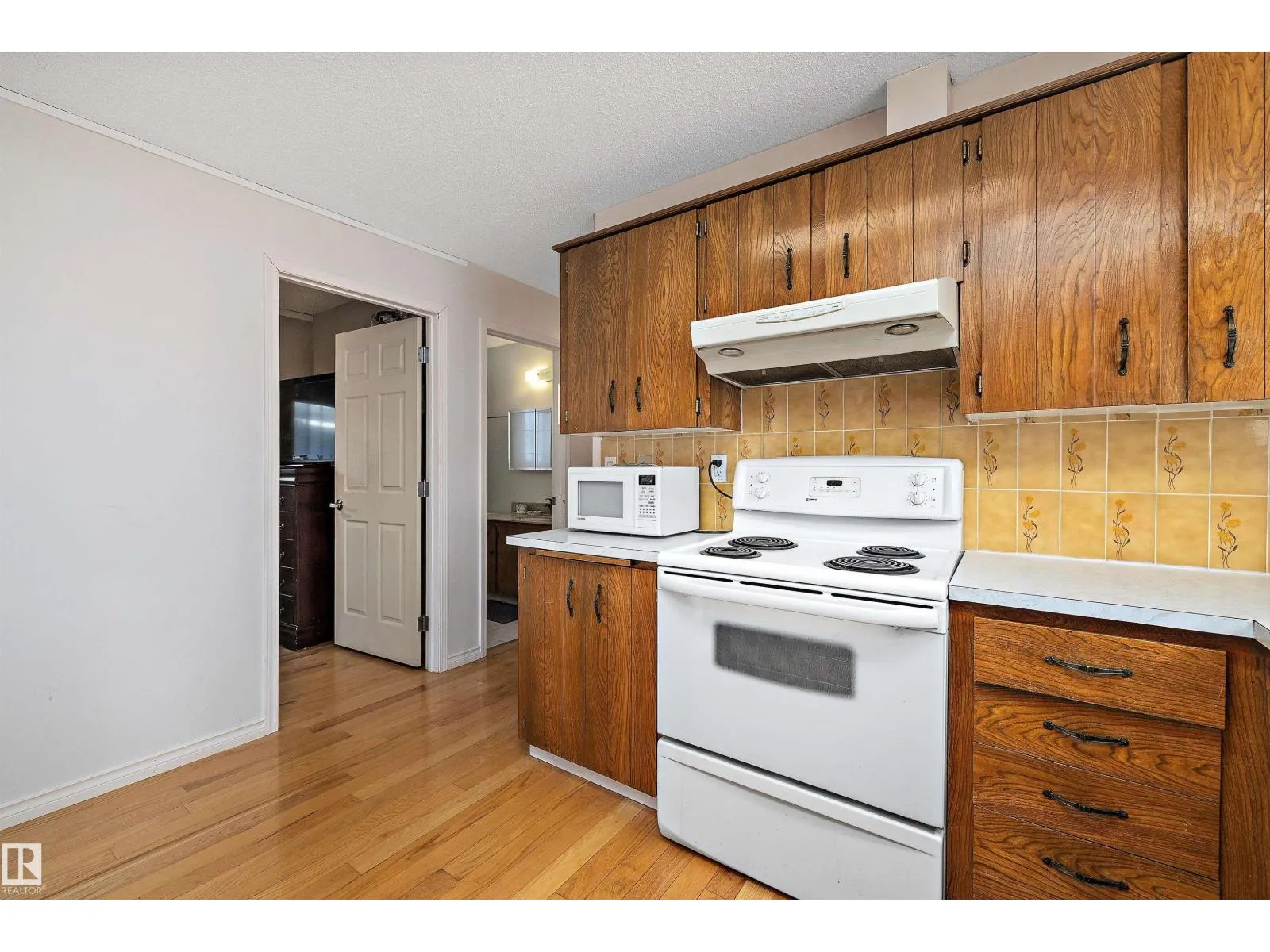 Welcome to this beautifully maintained 990 sq ft bi-level home featuring a fully finished basement for exceptional living space. The main floor offers an open-concept design with a bright, spacious living room showcasing gorgeous hardwood flooring throughout, seamlessly flowing into the adjacent dining area. The generous kitchen includes warm oak cabinetry and ample storage. This level also provides the primary bedroom, 2 sizable bedrooms and a full 4-piece bathroom. A separate side entrance leads to the fully developed basement, which includes a second kitchen, two additional bedrooms plus a den (easily convertible to a fifth bedroom), a large family room, another bathroom, laundry facilities, and a utility room. Outside, enjoy a single detached garage accessed via the back lane, along with a fully landscaped backyard. The property is ideally situated with easy access to bus routes, schools, NAIT, parks, shopping centres, and all essential amenities. (id:27476)