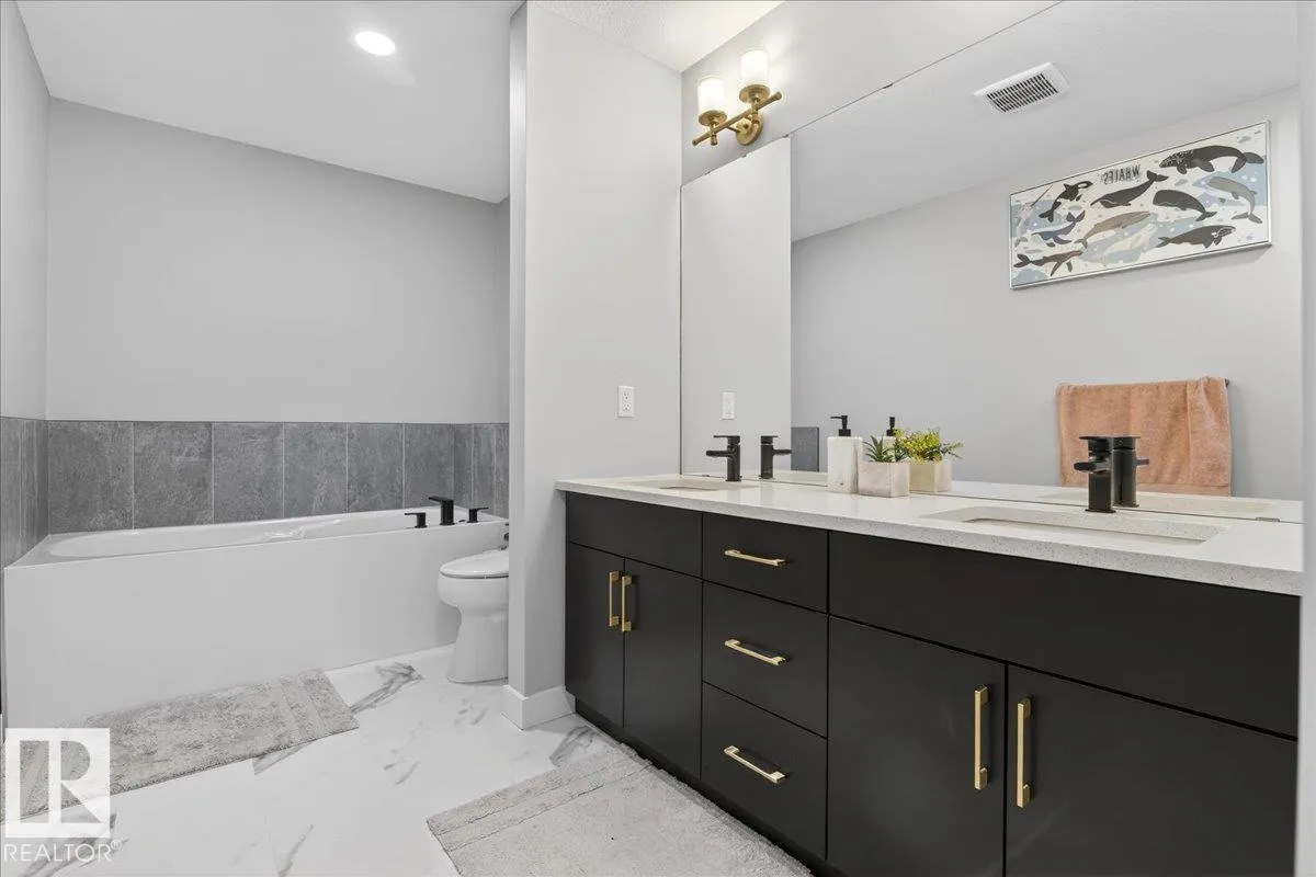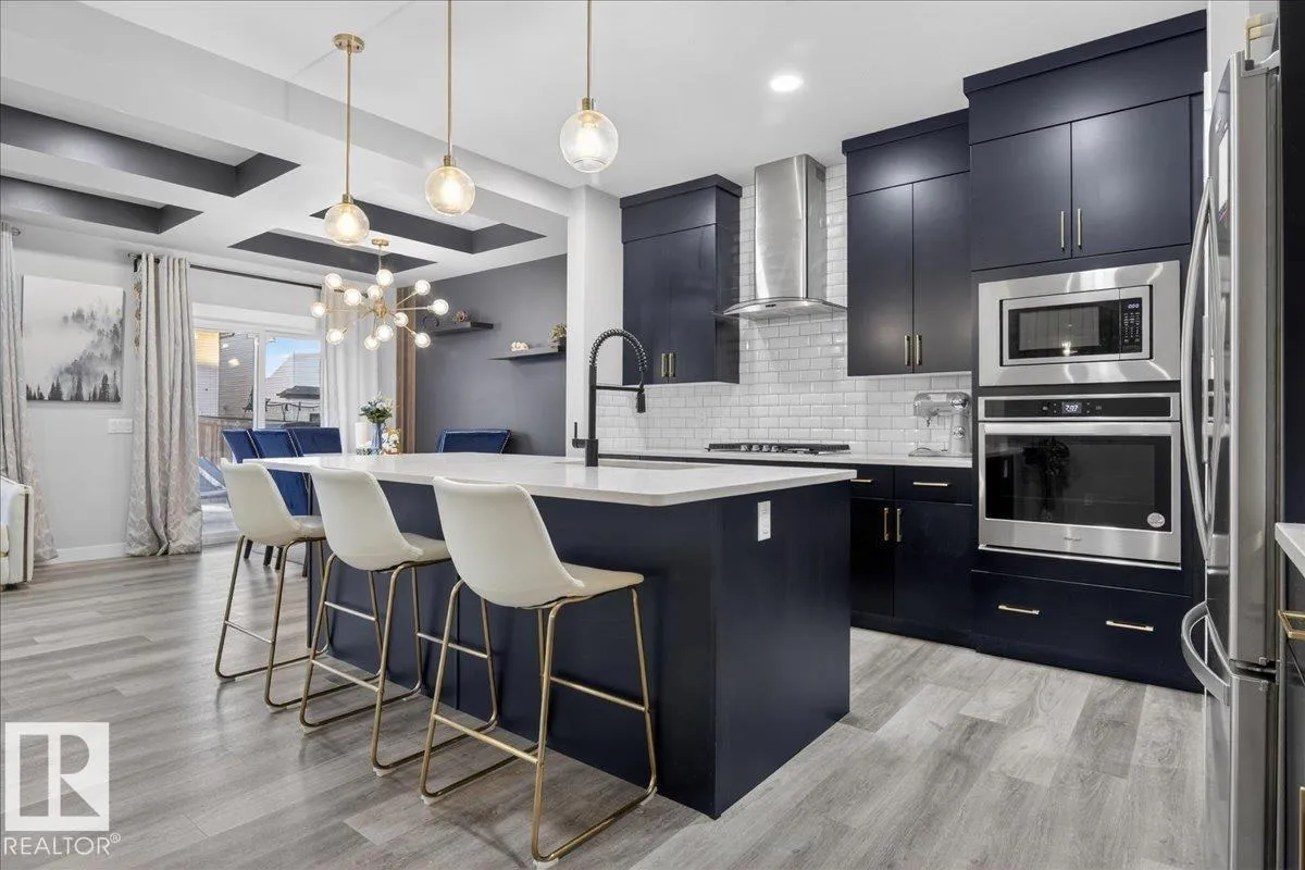 Welcome to Cavanagh, Edmontonâs one of the most popular communities. This meticulously maintained turnkey house is situated on REGULAR LOT with almost $20k in upgrades boasting over 2000 sq ft of luxury living. Situated in a quite cul-de-sac, the main floor features open concept with coffered ceiling, a bedroom, half bath, modern upgraded kitchen with cabinets to the ceiling, and durable vinyl flooring throughout the main and second levels. Upstairs offers 2 good sized bedrooms, convenient laundry, and a stunning primary retreat with vaulted ceilings, feature wall with fireplace and 5-pc ensuite. Legal 2-bed basement suite is already rented for $1,300/month + 35% utilities provides excellent mortgage help. Enjoy a large backyard & double attached garage. Located near walking trails, Costco, South Edmonton Common, Queen Elizabeth II Highway, and Edmonton International Airport, plus a future school opening in 2027. This home is also equipped with central A/C for hot summer days. Make this home yours today! (id:27476)
