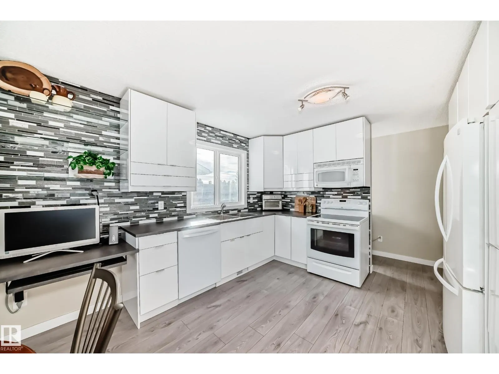 This beautifully updated bi-level offers a balance of old & new, in an established neighbourhood. The main level is highlighted by a stylish & highly functional kitchen featuring clever organizational solutions behind every cabinet door & a built-in desk area for added convenience. The primary bedroom showcases a 3 pc ensuite & closet concealed by an elegant sliding door system, maximizing both privacy & style. The fully finished basement significantly expands the living space with large windows, a SECOND KITCHEN, family room, two additional bedrooms, a 4-piece bathroom, & in-suite laundry both up and down â providing exceptional flexibility for extended family or investment potential. Behind the scenes, valuable upgrades include new PEX plumbing throughout, a separate basement heating system with independent controls, fire-rated insulation barrier between levels, and luxurious heated floors in the entry & basement bath. Ideally located close to all amenities, this home delivers comfort & convenience. (id:27476)