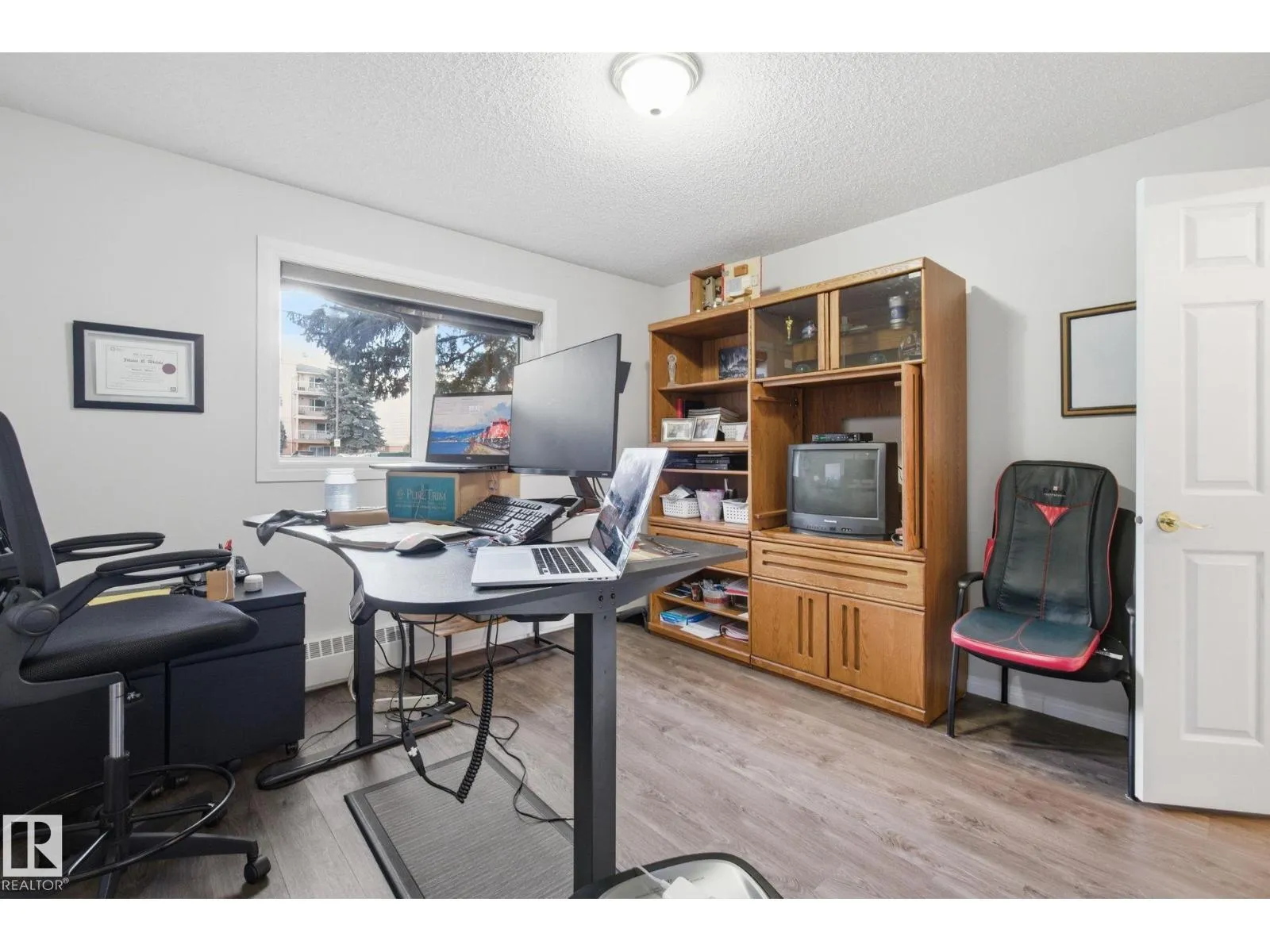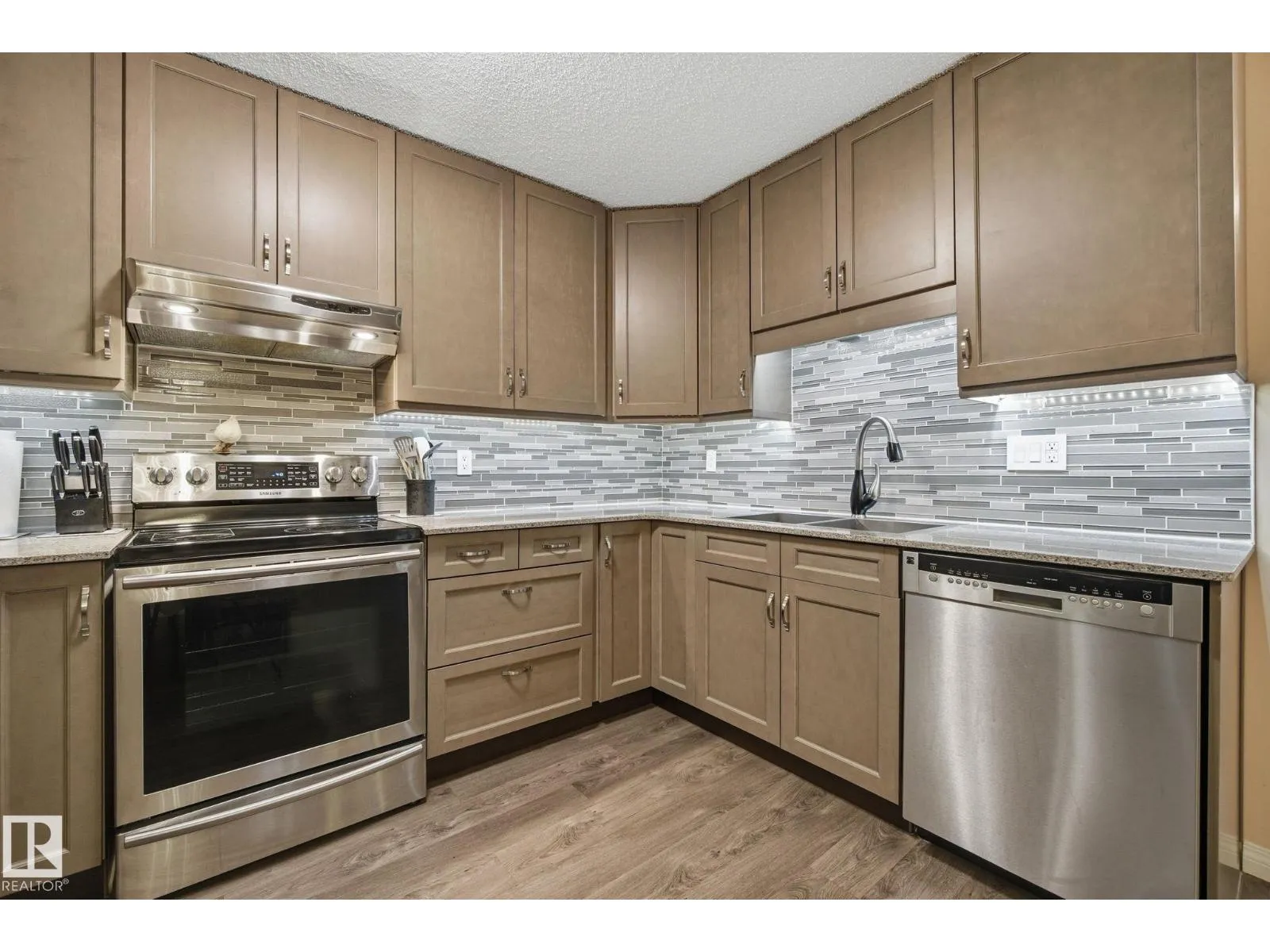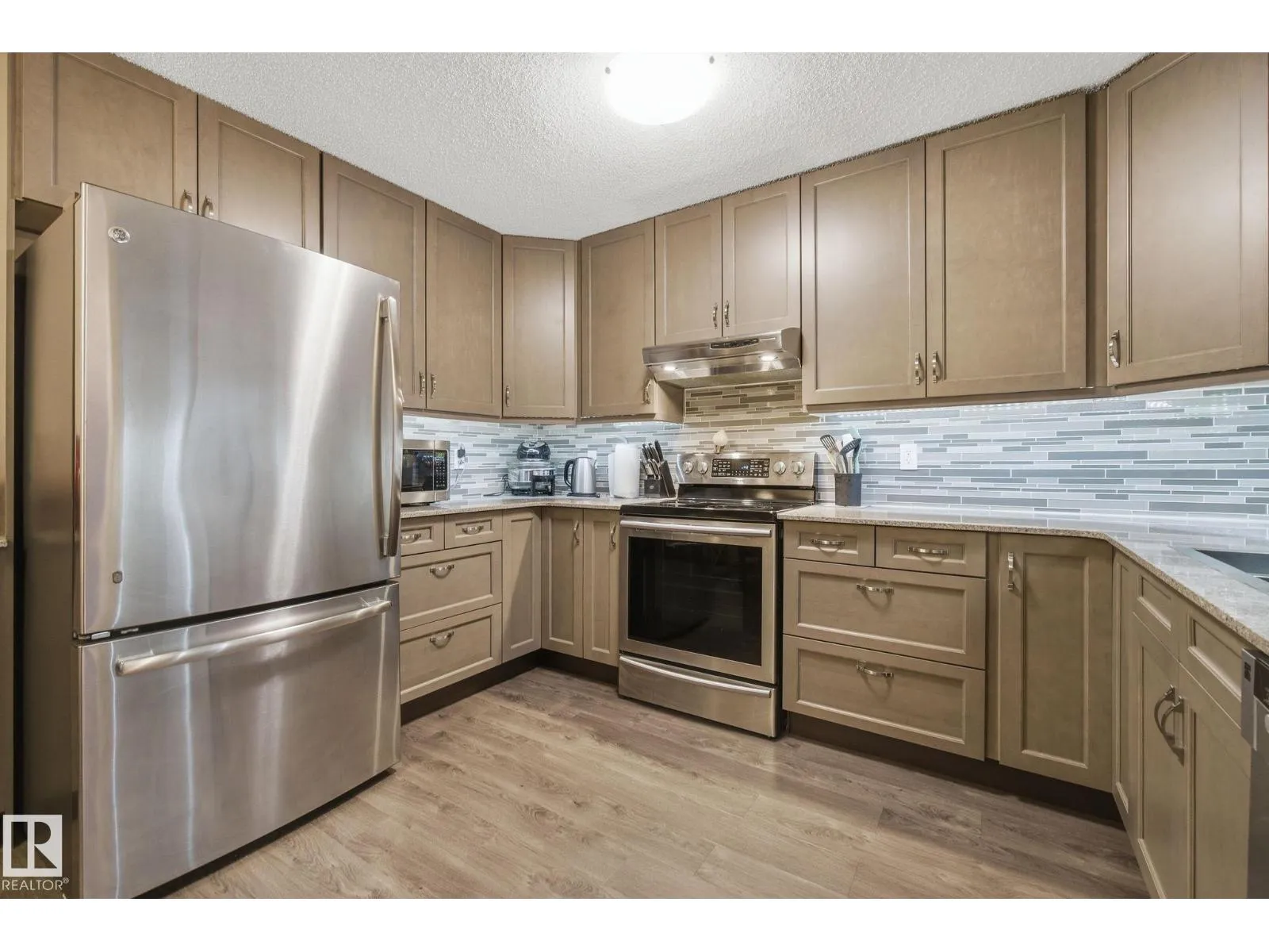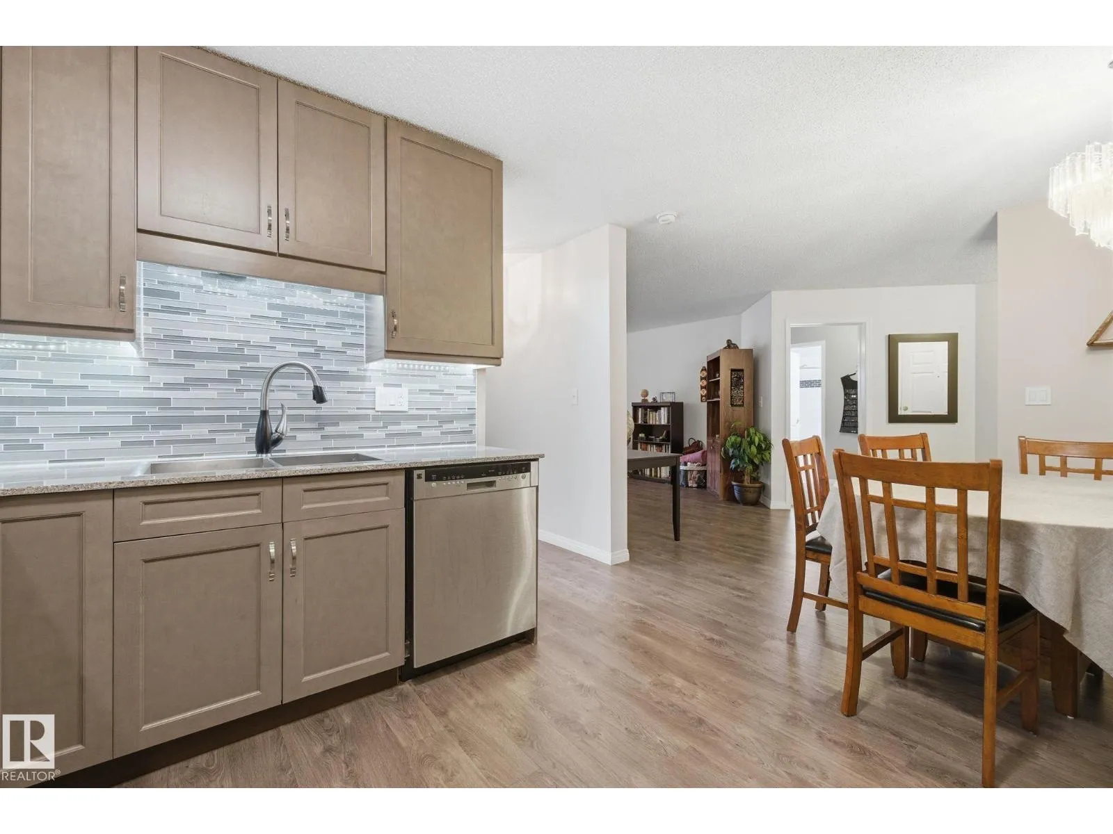 Welcome to Heritage Mansion East, a well maintained adult 55 plus building in south Edmonton. This bright main floor condo offers a functional layout with the convenience of main level living, elevator access, and air conditioning. There is no balcony, but large windows provide great natural light without the upkeep that comes with one. The home features a fully renovated kitchen with a custom dining hutch and newer stainless steel appliances. Newer vinyl plank flooring and newer paint throughout create a clean, move in ready feel. Both bathrooms have been updated. Bedrooms are located on opposite sides for privacy. The primary bedroom includes a three piece ensuite and walk in closet. In suite laundry offers extra storage. A heated underground parking stall and secure storage cage are included. Building amenities include a library, exercise room, craft room, social room, and workshop. Walking distance to medical services, groceries, ETS transit, and Century Park LRT. (id:27476)