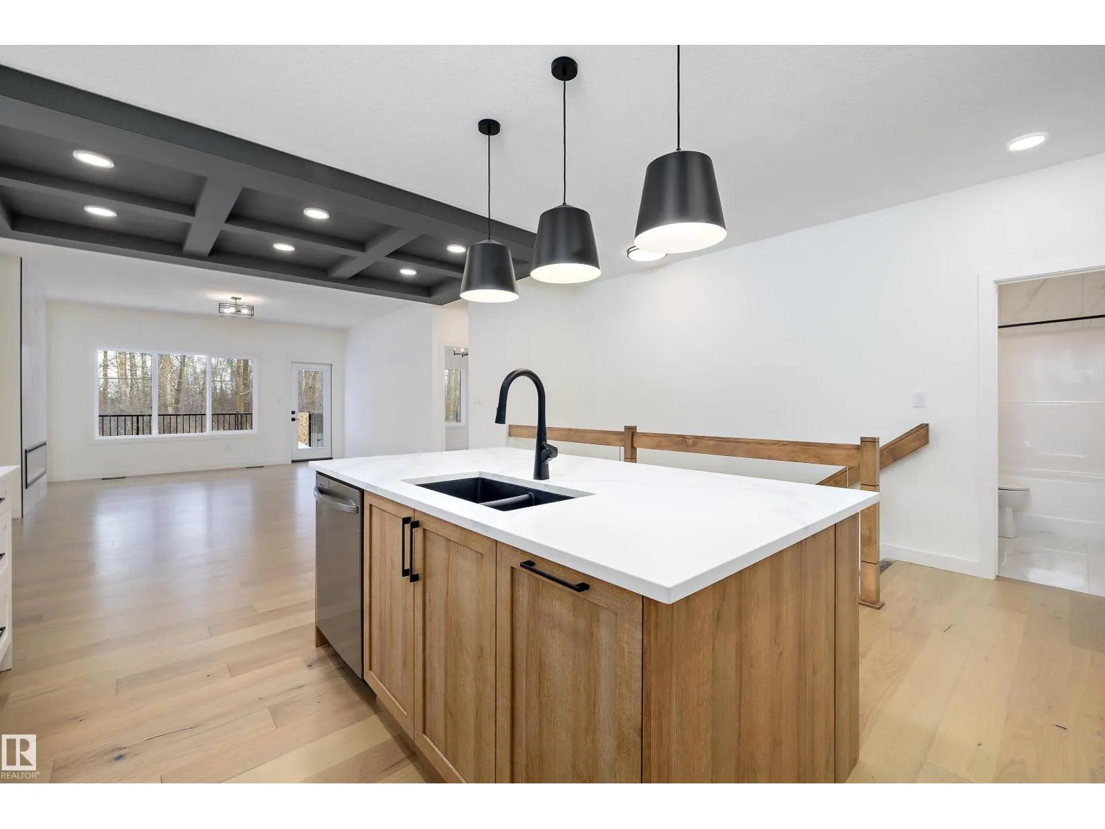 Welcome to this beautiful Ravine Backing 1450 Sqft award winning Coventry Bungalow built by Blackstone Homes in Woodhaven Edgemont. This home has won the best home with Canadian Home Building Association. Upon entering you will be impressed by the huge foyer with beautiful wainscotting. The chef's dream kitchen offers up to the ceiling cabinets, large island, built-ins, and open to dining room with beautiful coffered ceilings. Spacious Great room w/ large windows & fireplace with tiles. On the main floor you will find huge Master bedroom with beautiful ensuite - stand alone tub, double sinks shower & 10MM frameless glass. Mudroom with bench, built ins & laundry. Other features - MDF shelving, South backyard deck with metal railing, master feature wall, black plumbing & fixtures, maple railing, quartz countertops, 9' main & basement ceilings, engineered hardwood, stainless steel appliances, Ravine backing w/ walking trail and New home warranty, Close to amenities & quick access to Anthony Henday drive. (id:27476)