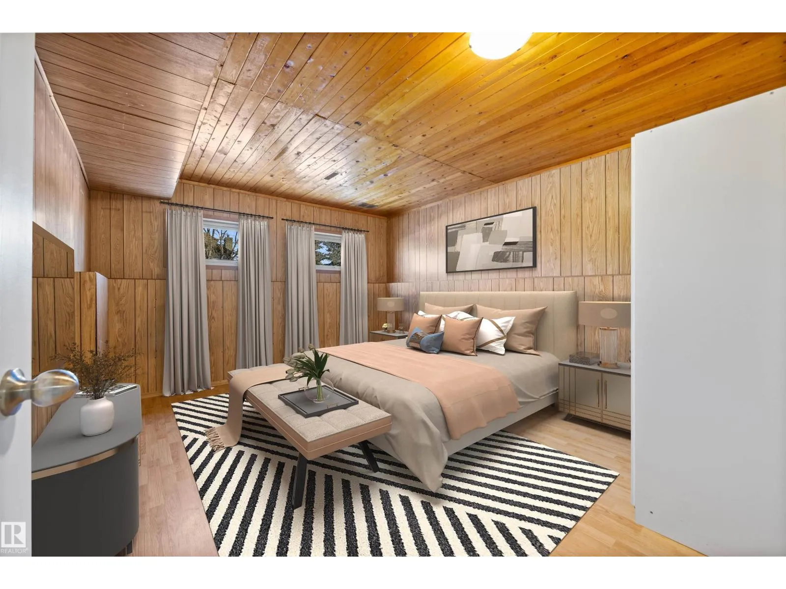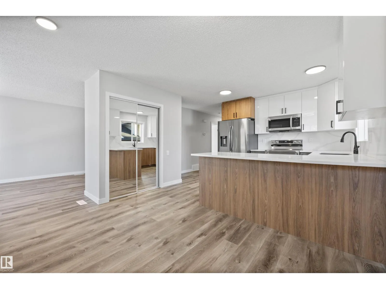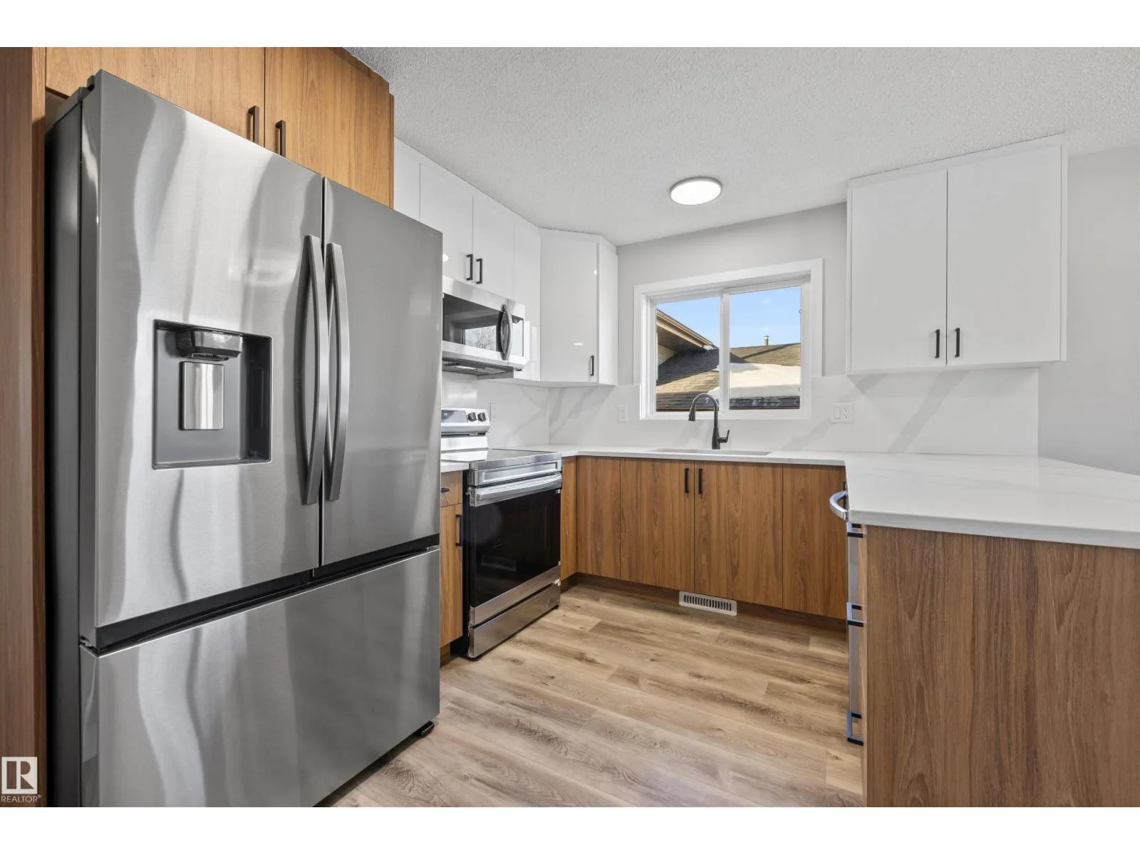 Step into this beautifully renovated raised bungalow that blends modern style, complete with a bright in law suite and separate side entrance, perfect for families, multi generational living, or savvy investors. The main floor features a sun filled living room with a large window, luxury vinyl plank flooring, three spacious bedrooms, a stylish 4 piece bath, private laundry, and a stunning kitchen with quartz countertops, backsplash, ceiling height cabinetry, and a premium Samsung appliance package. The lower level offers oversized windows, a full kitchen, generous living space, three bedrooms, separate laundry, and its own private entrance. Outside enjoy a fully fenced yard, private patio, double oversized garage, and a concrete RV parking pad. Upgrades include a high efficiency furnace, quick recovery hot water tank, and a brand new roof, all close to schools, parks, lakes, shopping, and quick Henday access. (id:27476)
