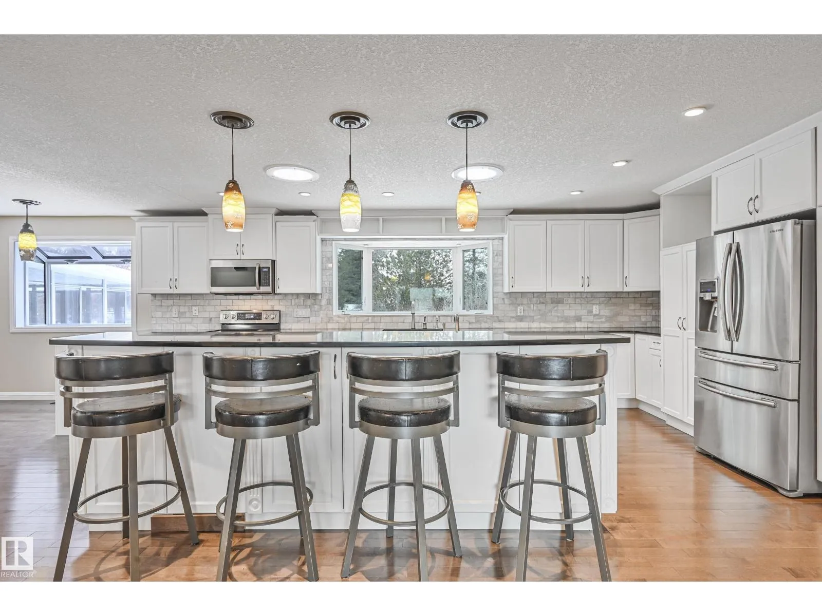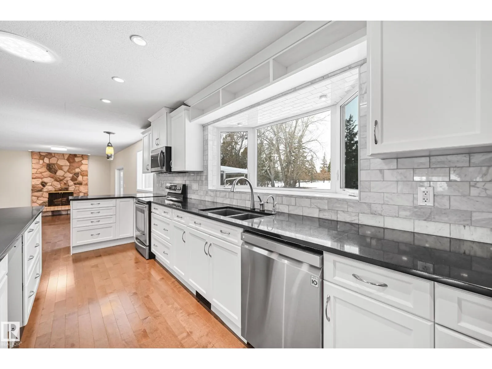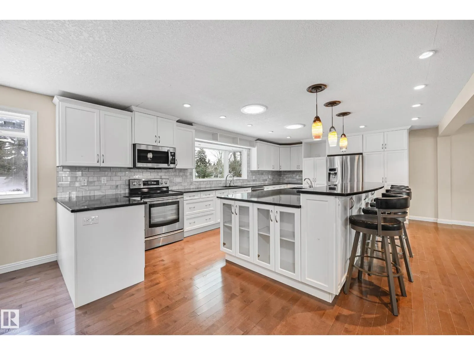 Welcome to prestigious Westbrook Drive in Westbrook Estates. This mature, nearly 15,000 sq ft (0.34-acre) lot backs directly onto the Derrick Golf Course, offering privacy, space, & beautiful views. The renovated main floor features an open-concept living and dining area anchored by a chefâs kitchen with expansive granite countertops, abundant shaker cabinetry, s/s appliances, & golf course views. Upstairs, the primary retreat offers a private balcony, walk-in closet, & ensuite, plus a second bedroom, full bath, & upper-level laundry. The finished basement includes a large recreation space,2 additional rooms, and a bathroom. Enjoy the landscaped backyard or enclosed sunroom. Additional features include A/C, hardwood floors, skylights, updated lighting, 8-foot fencing, and a heated 27-foot garage. Recent updates include driveway, windows, shingles, and mechanical. Ideally located with quick access to downtown, the university & Whitemud Ravine trail system. Home needs TLC, being sold As is where is (id:27476)