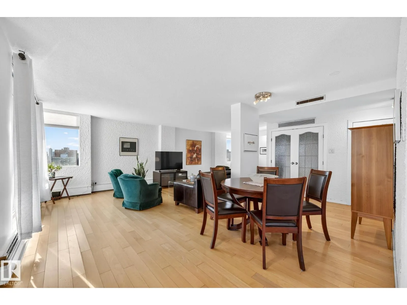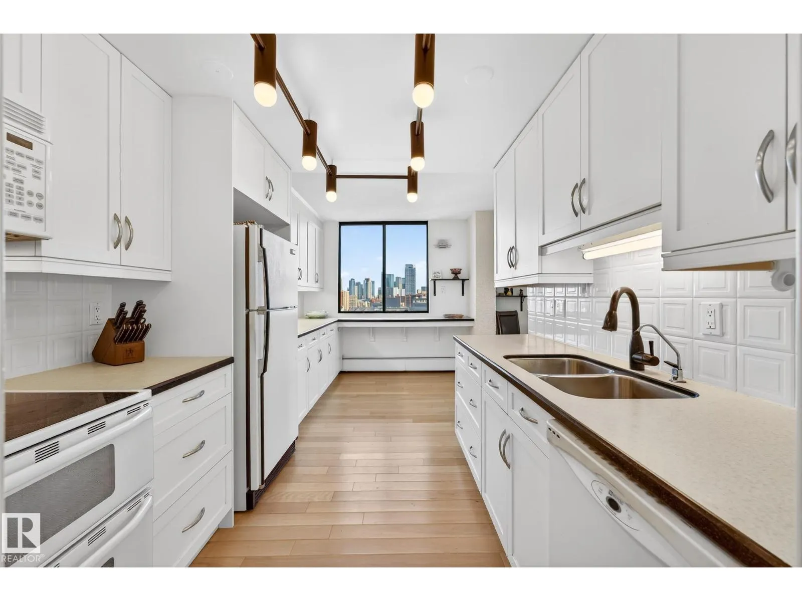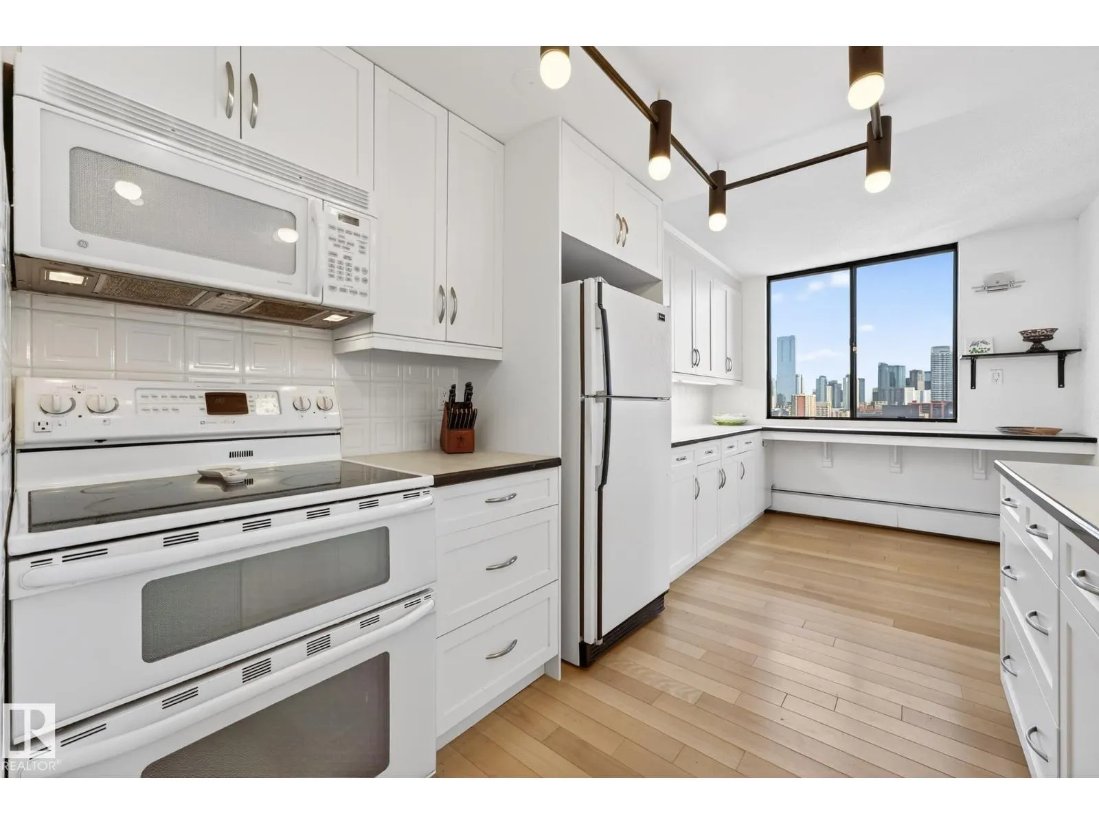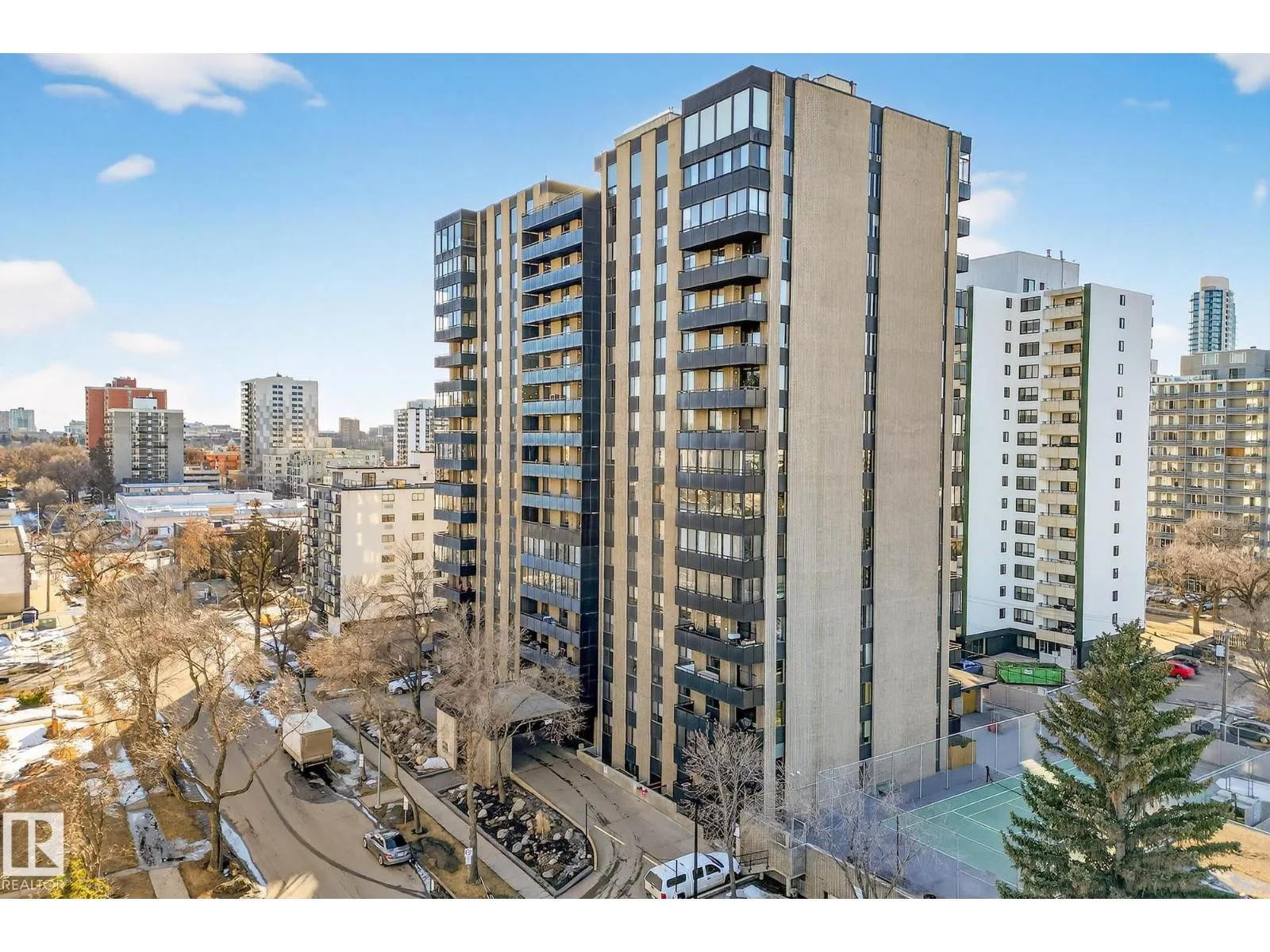 Welcome to the renowned Hyde Park- a solid concrete building. This award winning building was the first high rise constructed in Western Canada. Featuring resort style amenities, including an outdoor pool, indoor pool, hot tub, dry & wet sauna, fitness centre, guest suite, outside BBQ & picnic area, indoor games room, tennis & pickle ball courts. Located in the vibrant downtown core, you are surrounded by Edmontonâs most popular restaurants, shopping, & entertainment. Step outside your front door and walk to Jasper Avenue, the Ice District, Rogers Place, Grant MacEwan University, the LRT pedway & all your daily essentials. This impressive 15th-floor corner unit offers 1295 sqft of upgraded living space. The open concept layout features 2 beds, 2 baths, stunning city skyline views & a year round SE facing balcony. Complete with in-suite laundry, heated underground parking (#36), a storage locker (#86) and condo fees that include all utilities, this exceptional unit delivers comfort, convenience & style. (id:27476)