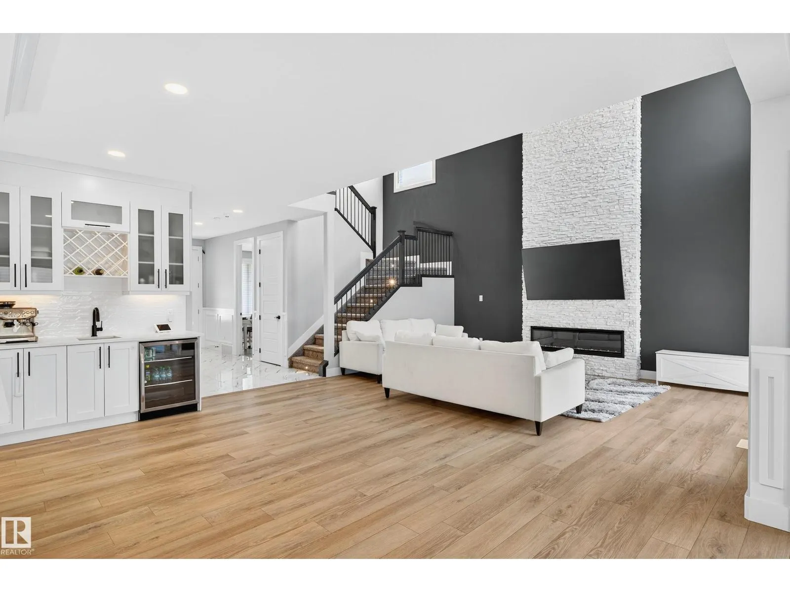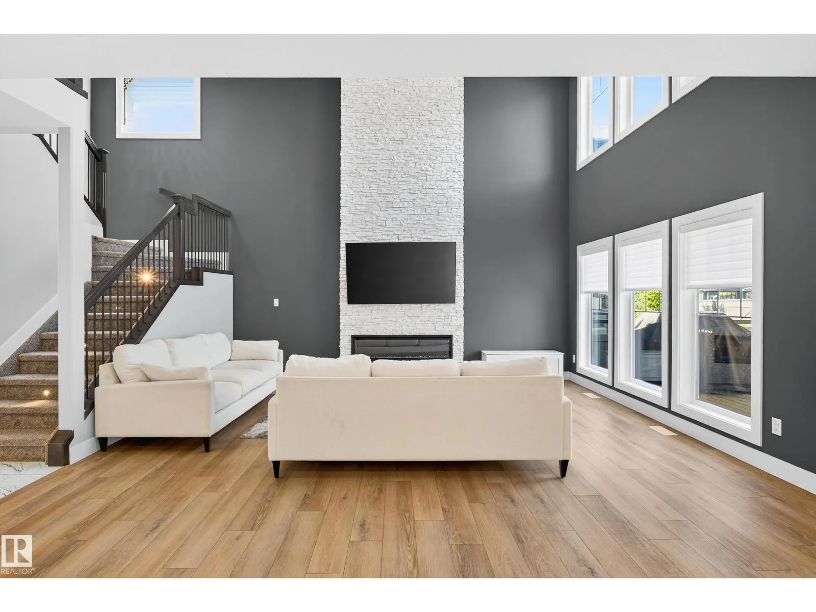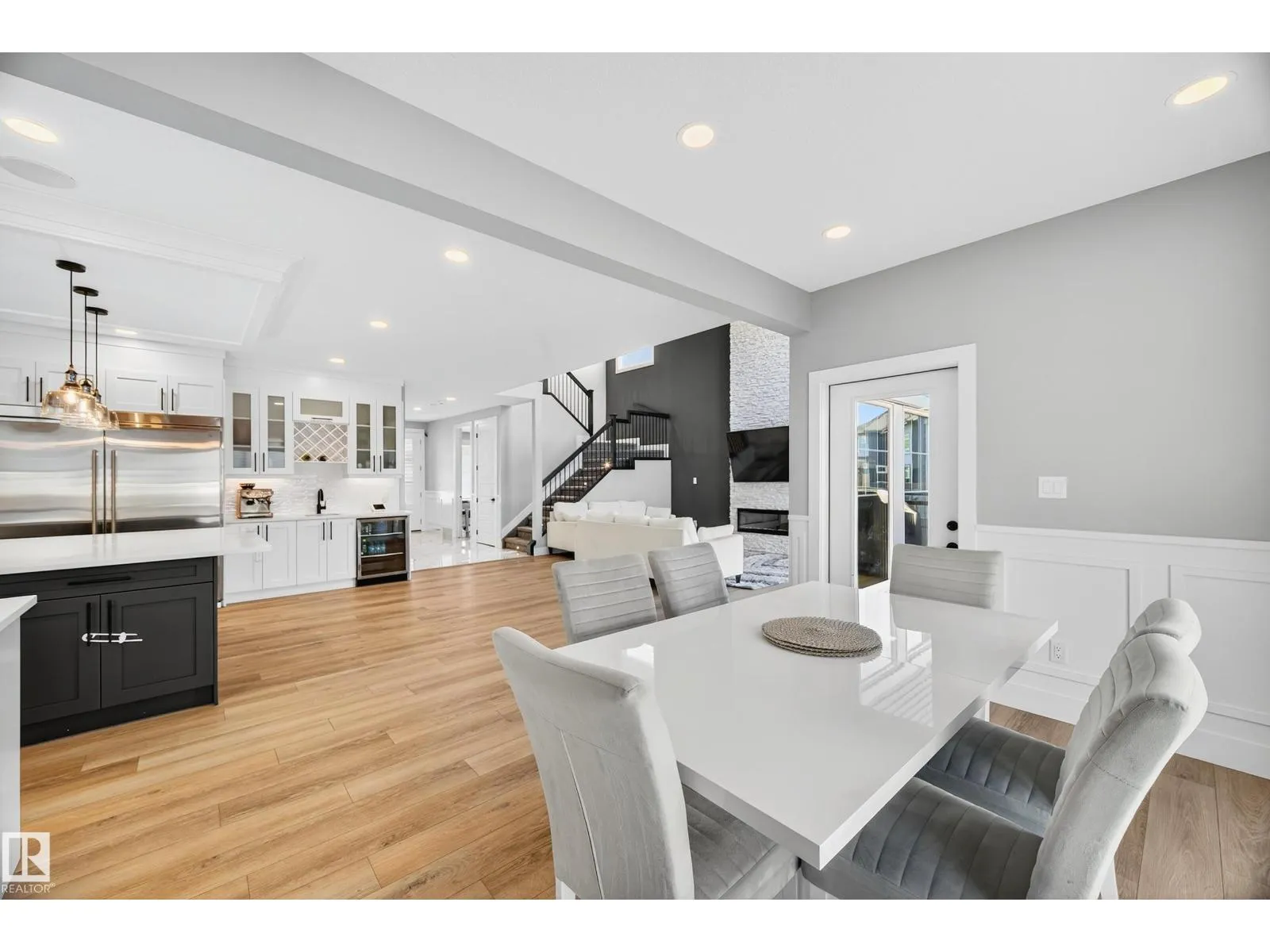 DESIGNED for large or multigenerational families, this exceptional home is FULLY FINISHED on all 3 levels with 8 bedrooms & 5 full baths. The main floor showcases soaring ceilings, dramatic wall of windows, floor-to-ceiling fireplace, elegant wainscoting, chef-inspired kitchen with upgraded cabinetry, under-cabinet lighting, oversized island, walk-through pantry, premium appliances, spacious mudroom, MAIN-FLOOR BEDROOM & FULL BATH. Upstairs offers 4 generous bedrooms, including a luxurious primary retreat w/ double-sided fireplace, jetted soaker tub, private bidet, double shower & custom walk-in closet. The basement, with separate side entrance, is perfect for extended guests and includes a theatre room w/ surround sound, wet bar, 3 additional bedrooms, 5th full bath & laundry rough-in. EXTRAS include central A/C, built-in speakers, water softener, window coverings, large deck w/ glass railings & gas hookup, TRIPLE garage w/ aggregate driveway, beautifully landscaped & steps to trails and Kim Hung School (id:27476)
