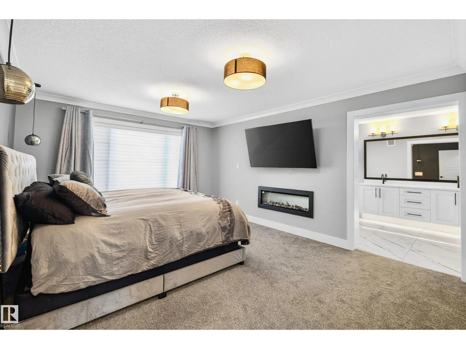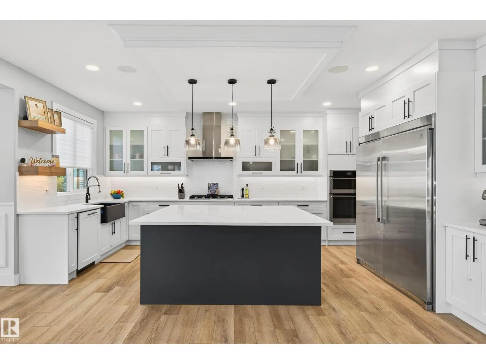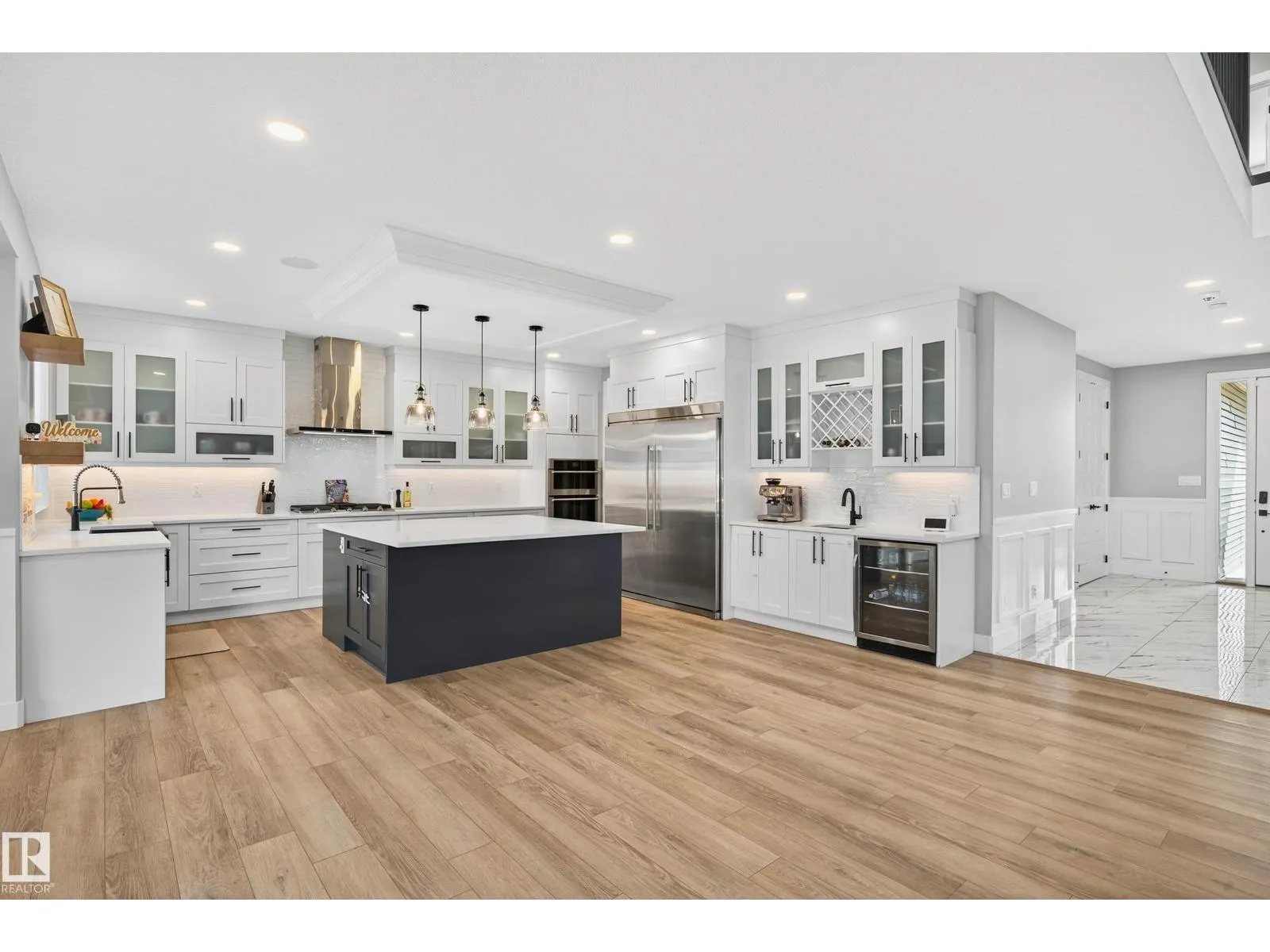 DESIGNED for large or multigenerational families, this exceptional home is FULLY FINISHED on all 3 levels with 8 bedrooms & 5 full baths. The main floor showcases soaring ceilings, dramatic wall of windows, floor-to-ceiling fireplace, elegant wainscoting, chef-inspired kitchen with upgraded cabinetry, under-cabinet lighting, oversized island, walk-through pantry, premium appliances, spacious mudroom, MAIN-FLOOR BEDROOM & FULL BATH. Upstairs offers 4 generous bedrooms, including a luxurious primary retreat w/ double-sided fireplace, jetted soaker tub, private bidet, double shower & custom walk-in closet. The basement, with separate side entrance, is perfect for extended guests and includes a theatre room w/ surround sound, wet bar, 3 additional bedrooms, 5th full bath & laundry rough-in. EXTRAS include central A/C, built-in speakers, water softener, window coverings, large deck w/ glass railings & gas hookup, TRIPLE garage w/ aggregate driveway, beautifully landscaped & steps to trails and Kim Hung School (id:27476)