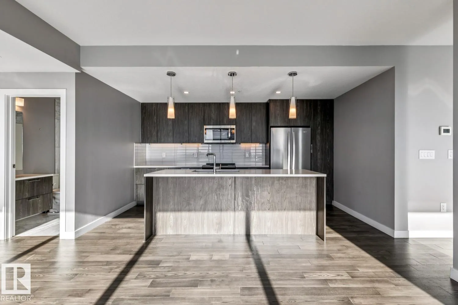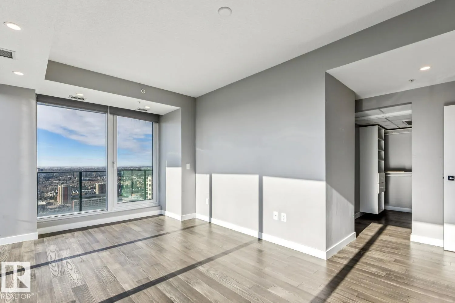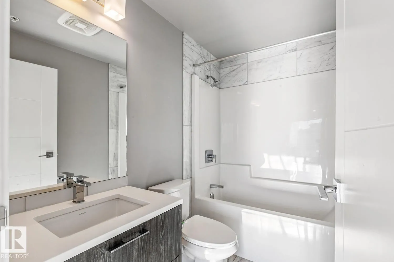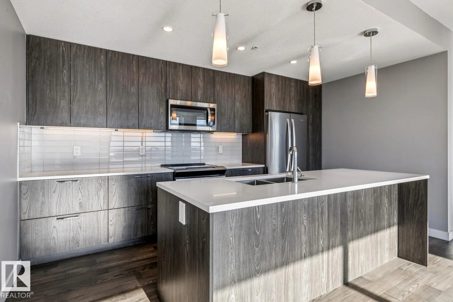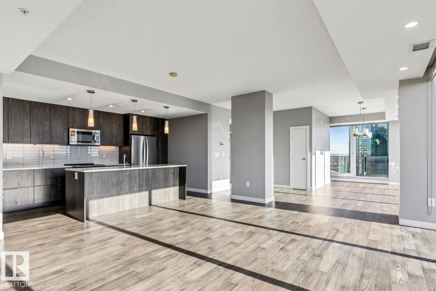 Too many upgrades to mention!! Welcome to Suite #3300 @ Encore Tower, an amazing 2 Bedroom, 2 Full Bath that is located on the ENTIRE SOUTH WALL of the Tower! This property offers some of the best city and rivervalley views that Edmonton has to offer! Suite upgrades include; Carrara Marble throughout: a fireplace feature wall, tile surfaces in both bathrooms, and front entry tile, as well as engineered glue-down hardwood floors. The unit offers a 100ft+ span of floor-to ceiling windows, with window coverings. Modern design includes a stylish kitchen with full-size stainless steel appliances, quartz countertops, a spacious island with seating, 9-foot ceilings* and in-suite laundry (full-size). Life at Encore includes many conveniences - friendly concierge, an inviting party-room, 4th floor sundeck and a private fitness room. Steps from ICE District, numerous dining choices, and an al fresco market?... Do not miss this opportunity at the city's ultimate central location, and best new-construction value! (id:27476)