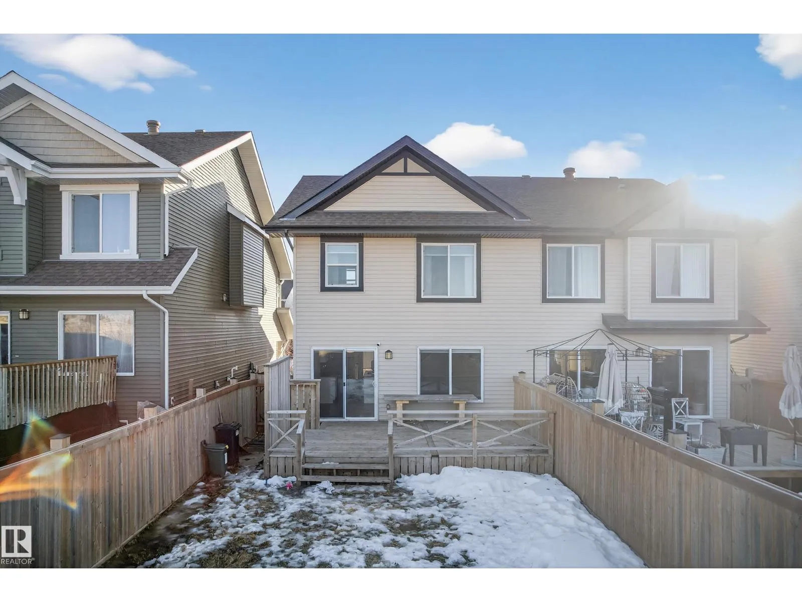 RARE DOUBLE PRIMARY + DOUBLE ENSUITE DUPLEX with BONUS ROOM and UPPER LAUNDRY. This thoughtfully designed home offers TWO OVERSIZED PRIMARY SUITES, each featuring its own private ENSUITE and WALK-IN CLOSET. The upper level also includes a LARGE BONUS ROOM and convenient LAUNDRY, creating an ideal layout for young families, roommates seeking privacy, or buyers wanting flexible living space. The unique floor plan provides EXTRA-LARGE BEDROOMS, generous storage, and excellent functionality throughout. Enjoy a spacious driveway, garage, and an OVERSIZED DECK with a fully fenced BACKYARD perfect for entertaining, relaxing, or kids and pets. Eye-catching curb appeal welcomes you with a landscaped front yard and mature shrubs. Inside, the central kitchen is open and inviting with UPGRADED GE PROFILE APPLIANCES, QUARTZ COUNTERTOPS, and off-white CEILING-HEIGHT CABINETRY, delivering a clean, modern, and polished finish. (id:27476)