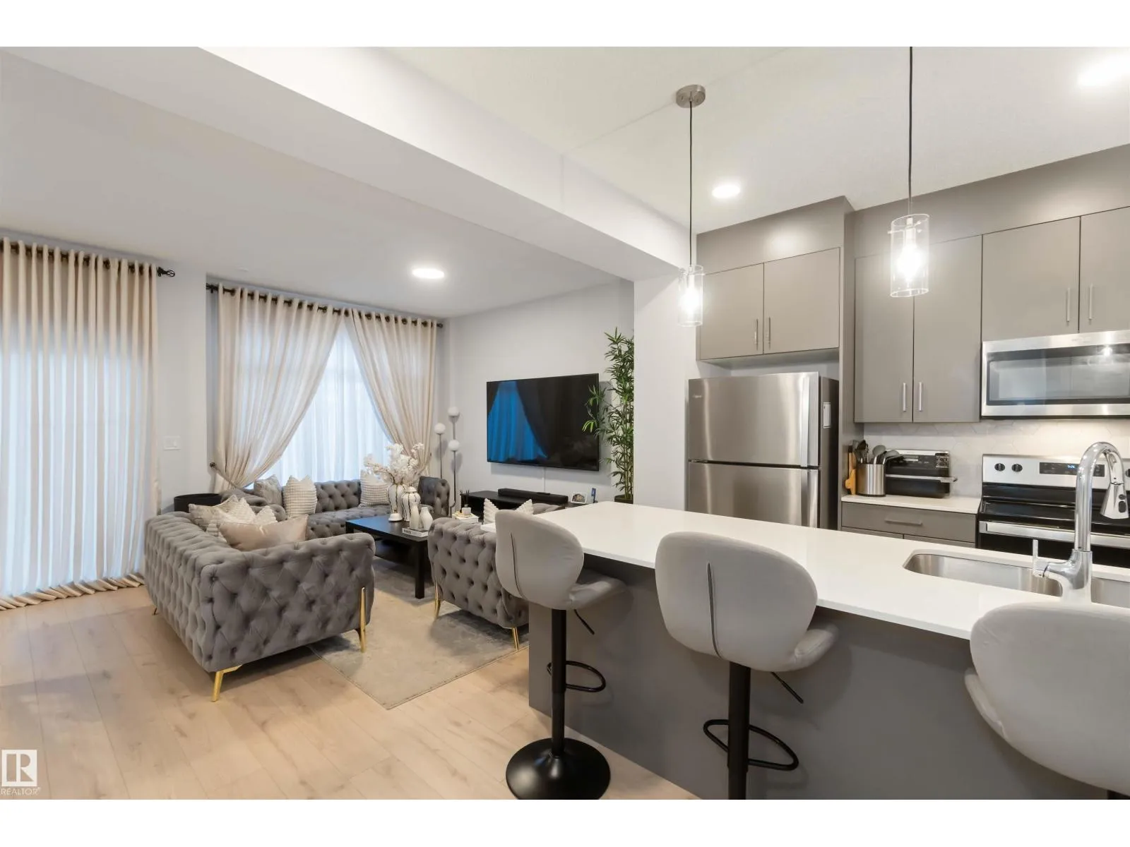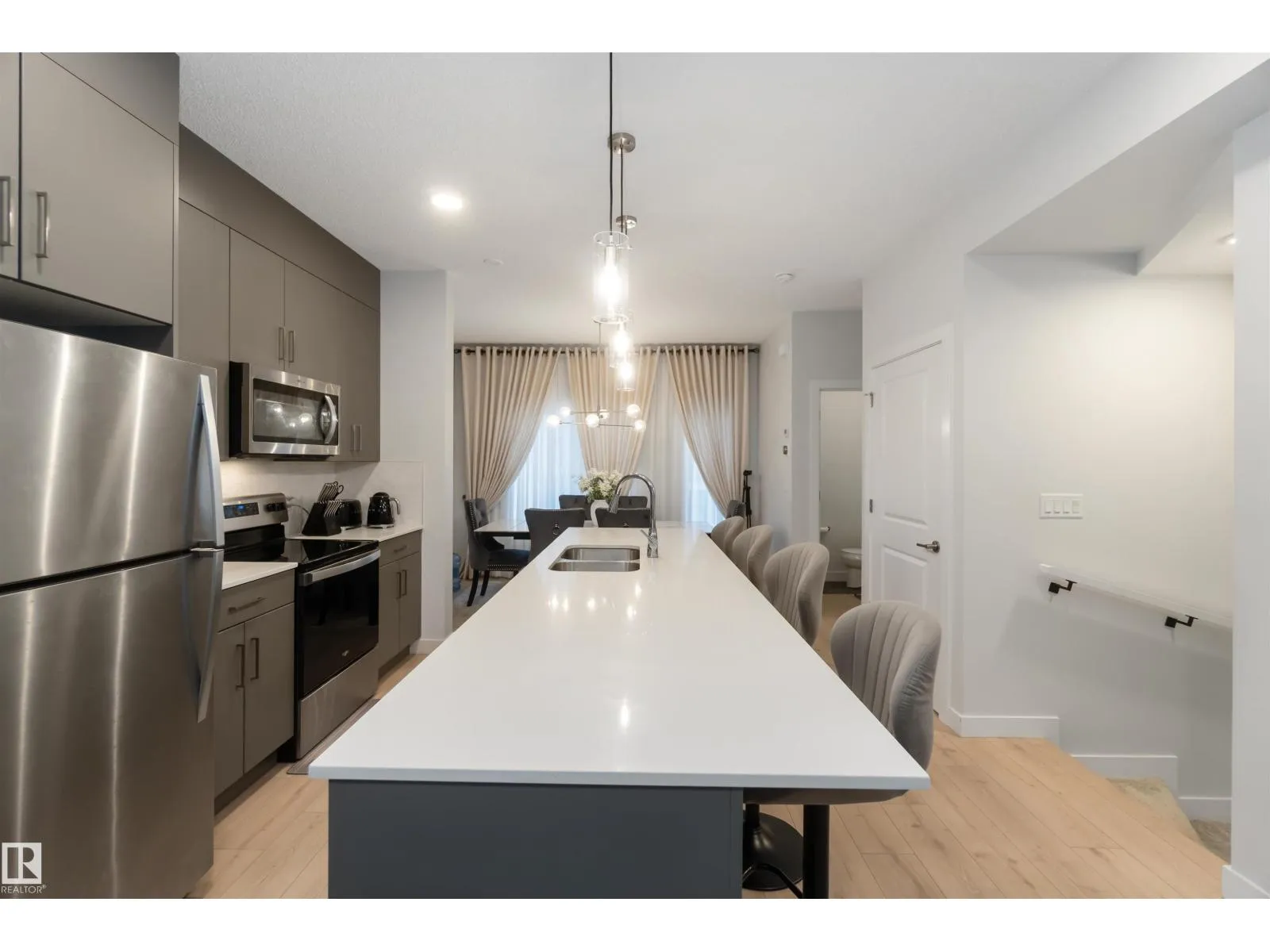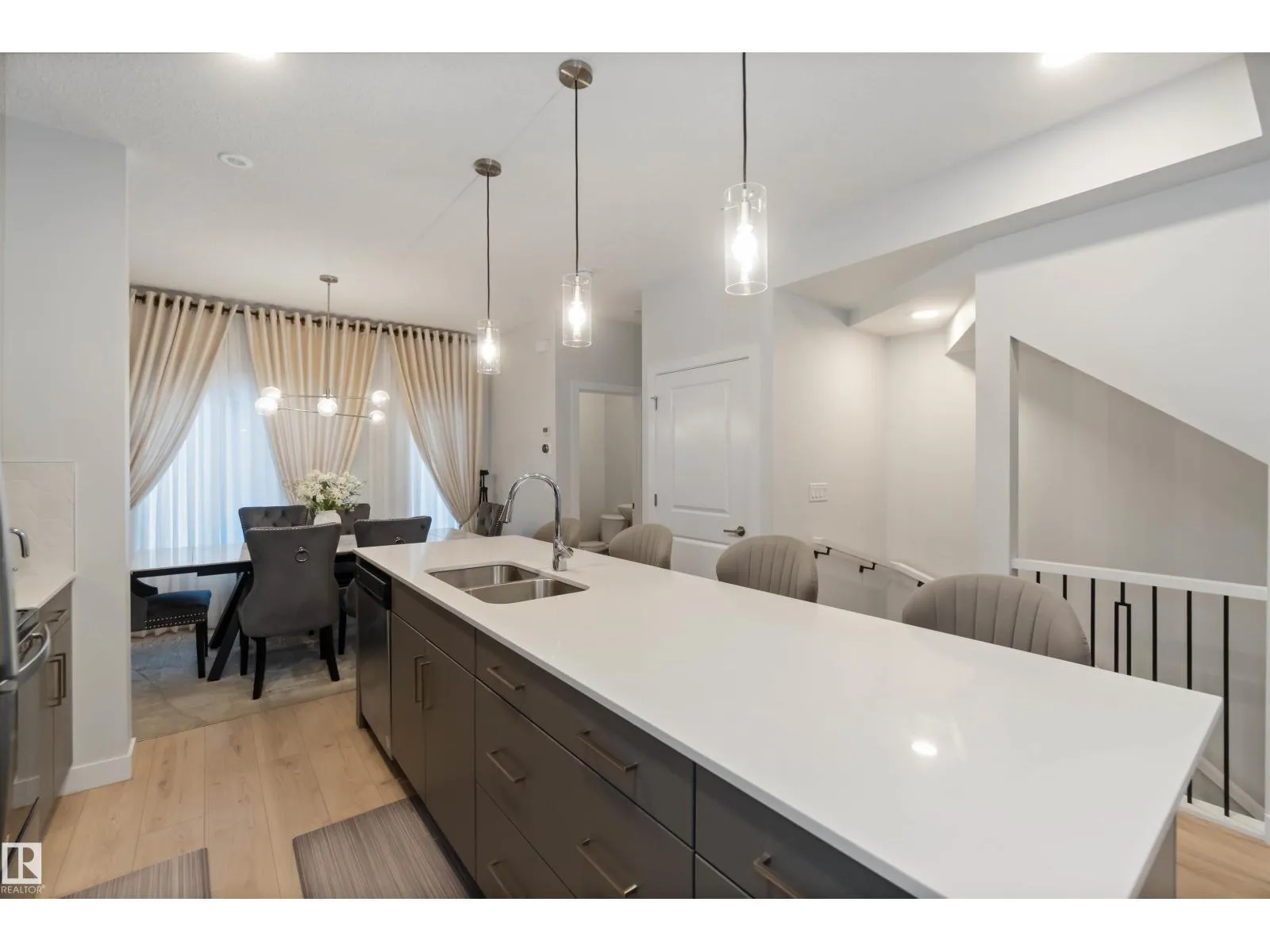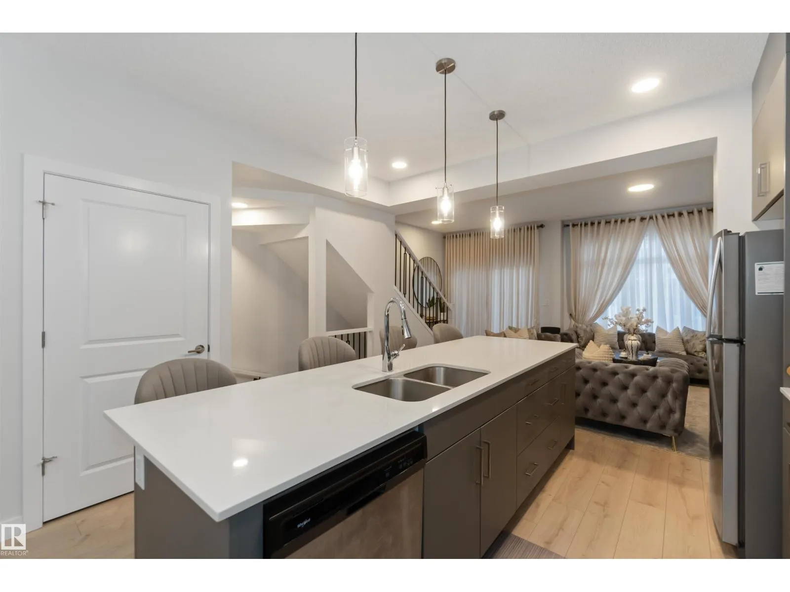 Sophisticated three-storey townhome in the sought-after community of Chappelle, offering 3 bedrooms, 2.5 bathrooms, and a double attached garage. This beautifully appointed home features 9-foot ceilings, quartz countertops throughout, and a stunning modern kitchen with stainless steel appliances, an oversized 10-foot island, pendant lighting, and access to a spacious balconyâideal for entertaining. A versatile den provides the perfect space for a home office or guest area, while smart-home upgrades include a Nest thermostat, SkyBell doorbell camera, and keyless entry. Enjoy maintenance-free living with landscaping and snow removal included. Surrounded by wetlands, parks, and green space, and offering over 9.8 km of walking and biking trails, this exceptional home blends luxury, lifestyle, and location. (id:27476)