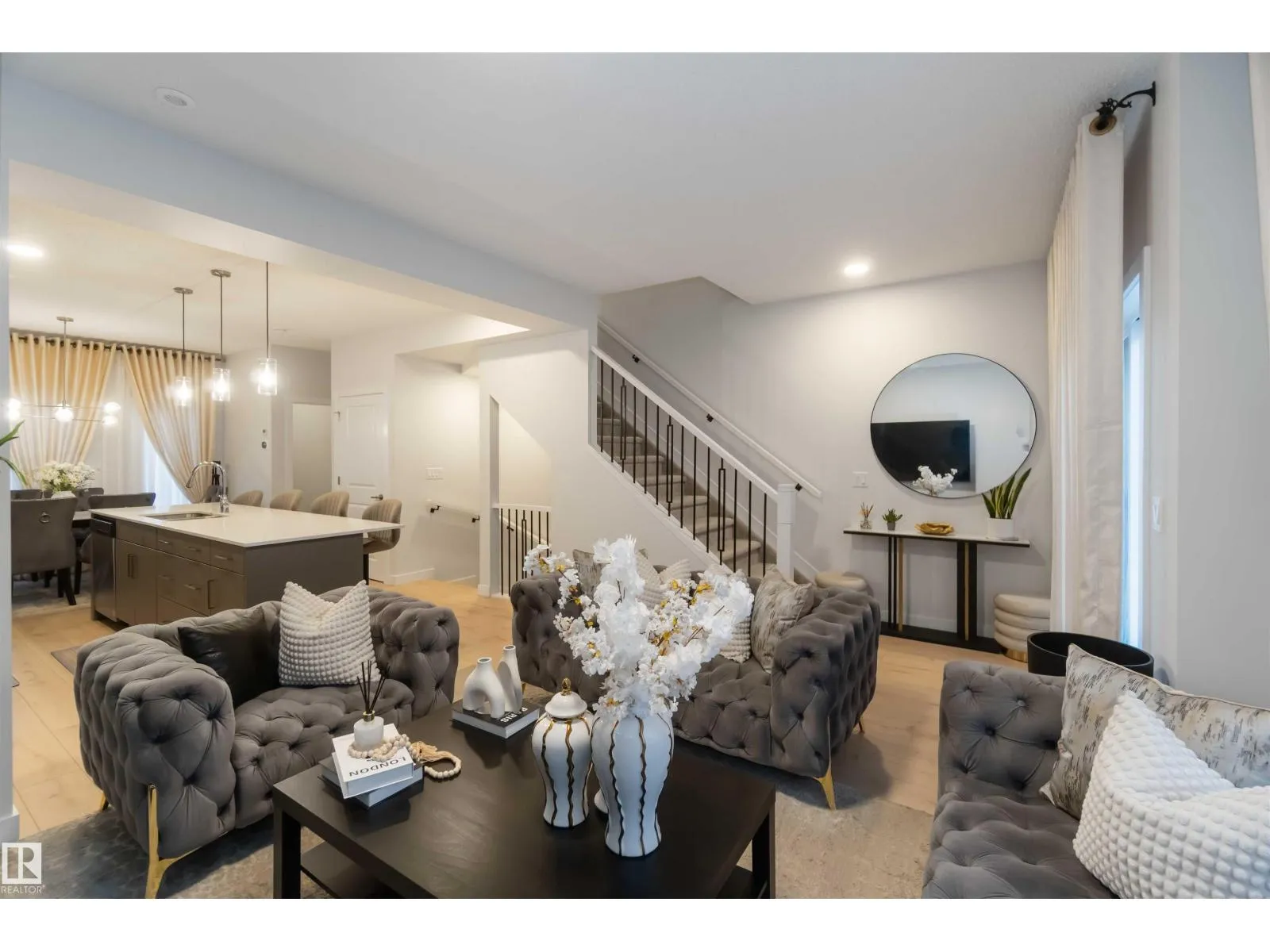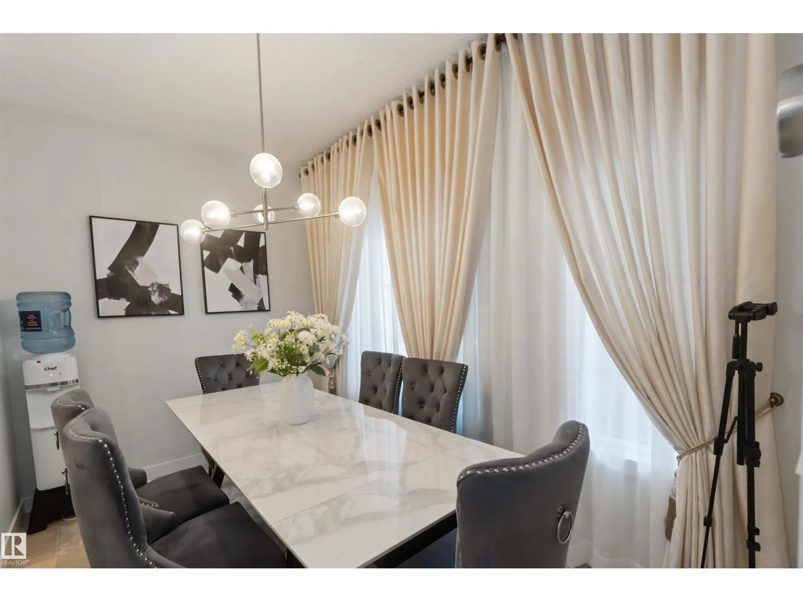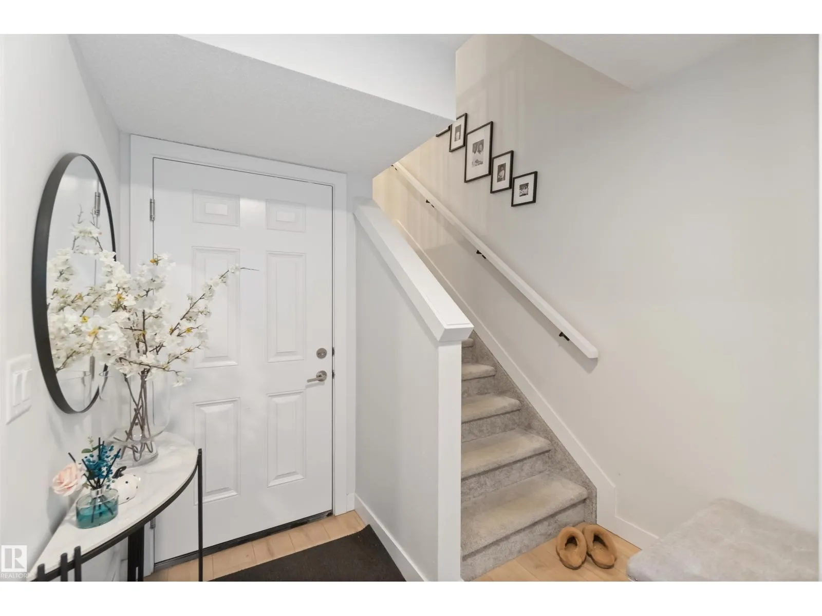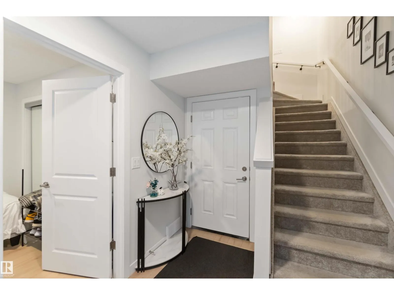 Sophisticated three-storey townhome in the sought-after community of Chappelle, offering 3 bedrooms, 2.5 bathrooms, and a double attached garage. This beautifully appointed home features 9-foot ceilings, quartz countertops throughout, and a stunning modern kitchen with stainless steel appliances, an oversized 10-foot island, pendant lighting, and access to a spacious balconyâideal for entertaining. A versatile den provides the perfect space for a home office or guest area, while smart-home upgrades include a Nest thermostat, SkyBell doorbell camera, and keyless entry. Enjoy maintenance-free living with landscaping and snow removal included. Surrounded by wetlands, parks, and green space, and offering over 9.8 km of walking and biking trails, this exceptional home blends luxury, lifestyle, and location. (id:27476)