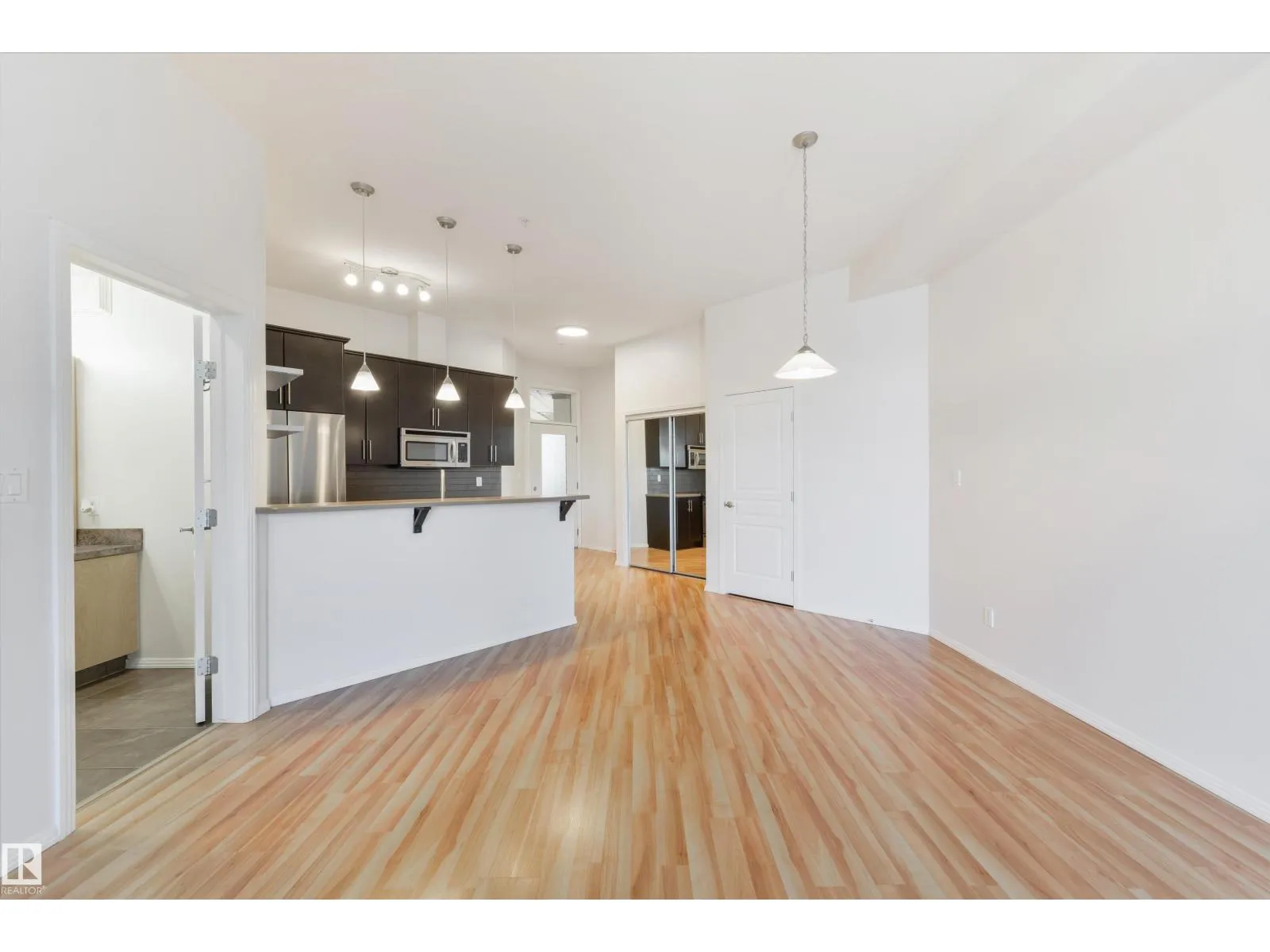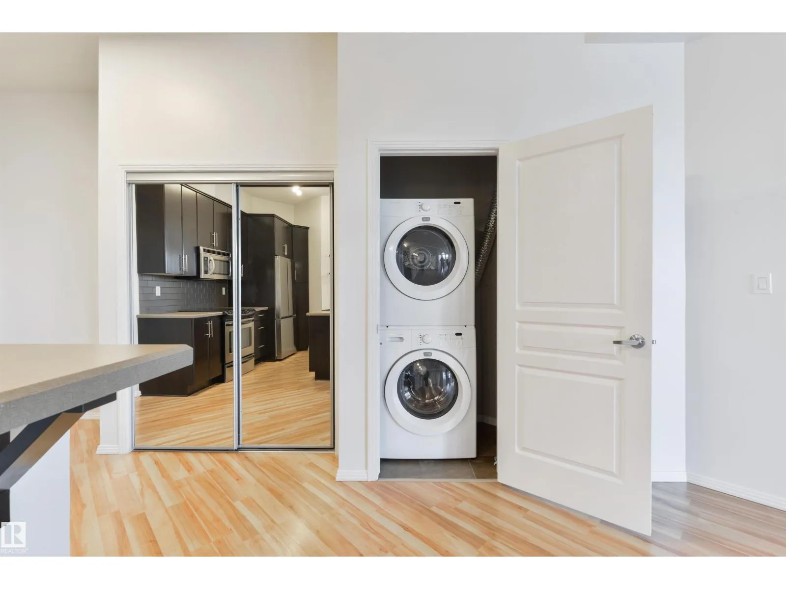 This well-maintained 1-bedroom condo offers a 4-piece bathroom, kitchen with raised eating bar, living room and convenient insuite laundry. Enjoy a bright west-facing balconyâperfect for soaking up afternoon sun and relaxing after a long day. This unit includes titled underground parking and a storage locker, providing added value and everyday convenience. Ideally situated within walking distance to MacEwan University, Oliver Square, and the Ice District, with easy access to downtown offices, shopping, dining, and public transit. An excellent opportunity for first-time buyers, students, or investors seeking strong rental potential in a prime location. (id:27476)
