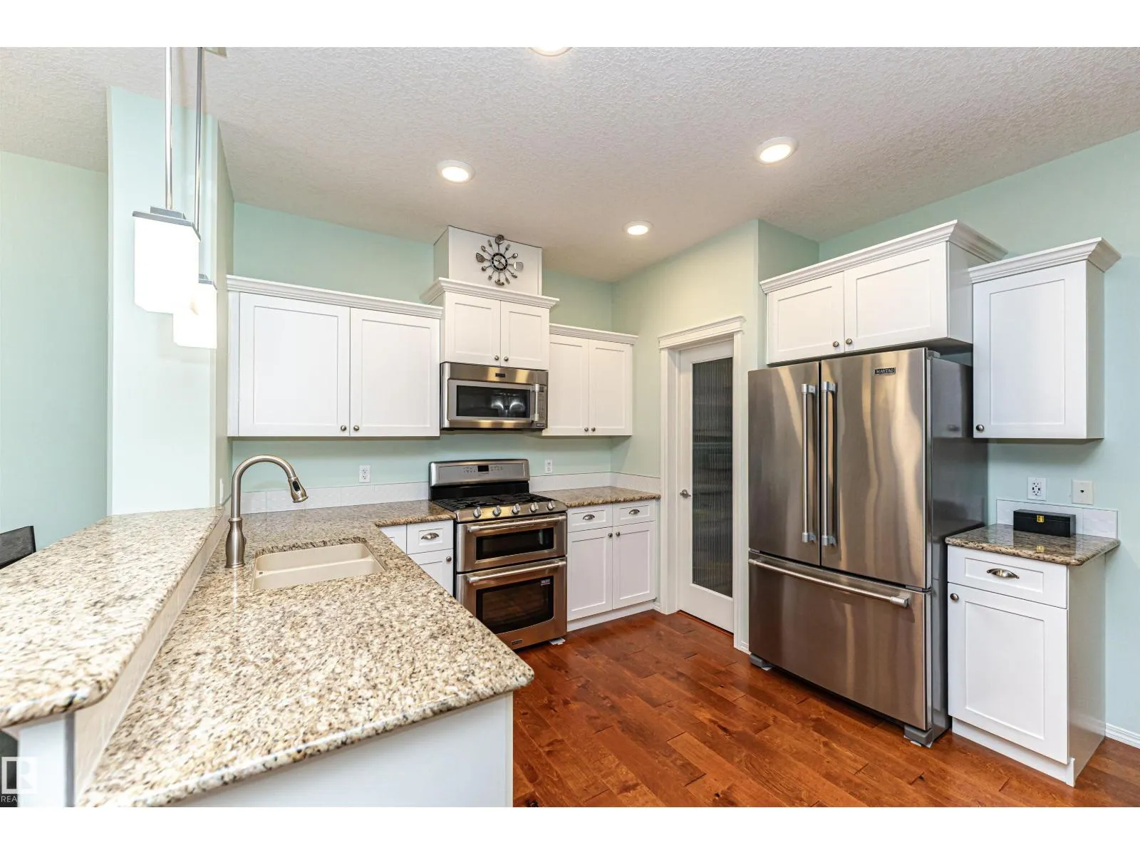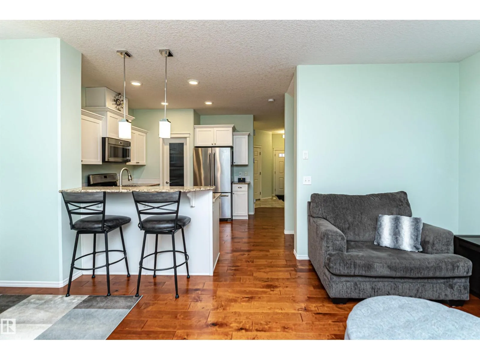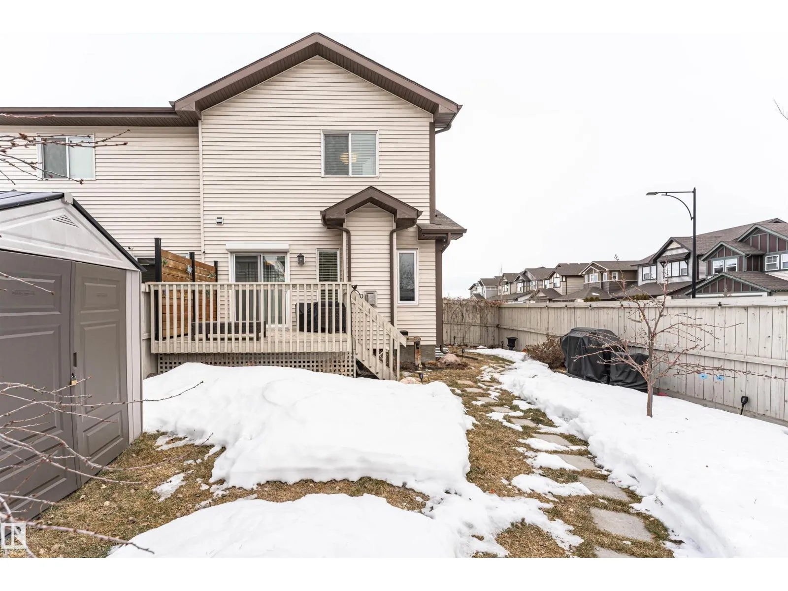 ABSOLUTLY STUNNING 1/2 DUPLEX! This charming well looked after 1872 total sq. ft. home is located on a corner lot in the sought-after SCHONSEE neighborhood, close to the Anthony Henday and all amenities. This spotless well maintained home features 9-foot ceilings & gorgeous hardwood floors on both the main and upper levels. California knockdown ceilings add a stylish touch, while the bright, open kitchen offers granite countertops & a spacious walk-in pantry. Patio doors with roll shutters lead to a sunny deck & a beautifully landscaped backyard. The living rm features a cozy gas fireplace with plenty of windows that fill the space with natural light. Upstairs, youâll find a convenient laundry area, lrg primary bedroom with 4-piece ensuite & walk-in closet, plus roomy second bdrms with possibility of a 3rd. The fully finished basement includes lino flooring, a full 4-piece bathroom huge family room & storage/utility. Outside is the fully fenced yard, a single attached garage & plenty of street parking! (id:27476)