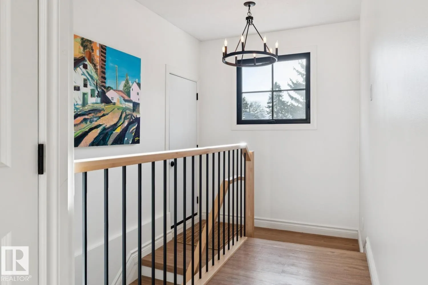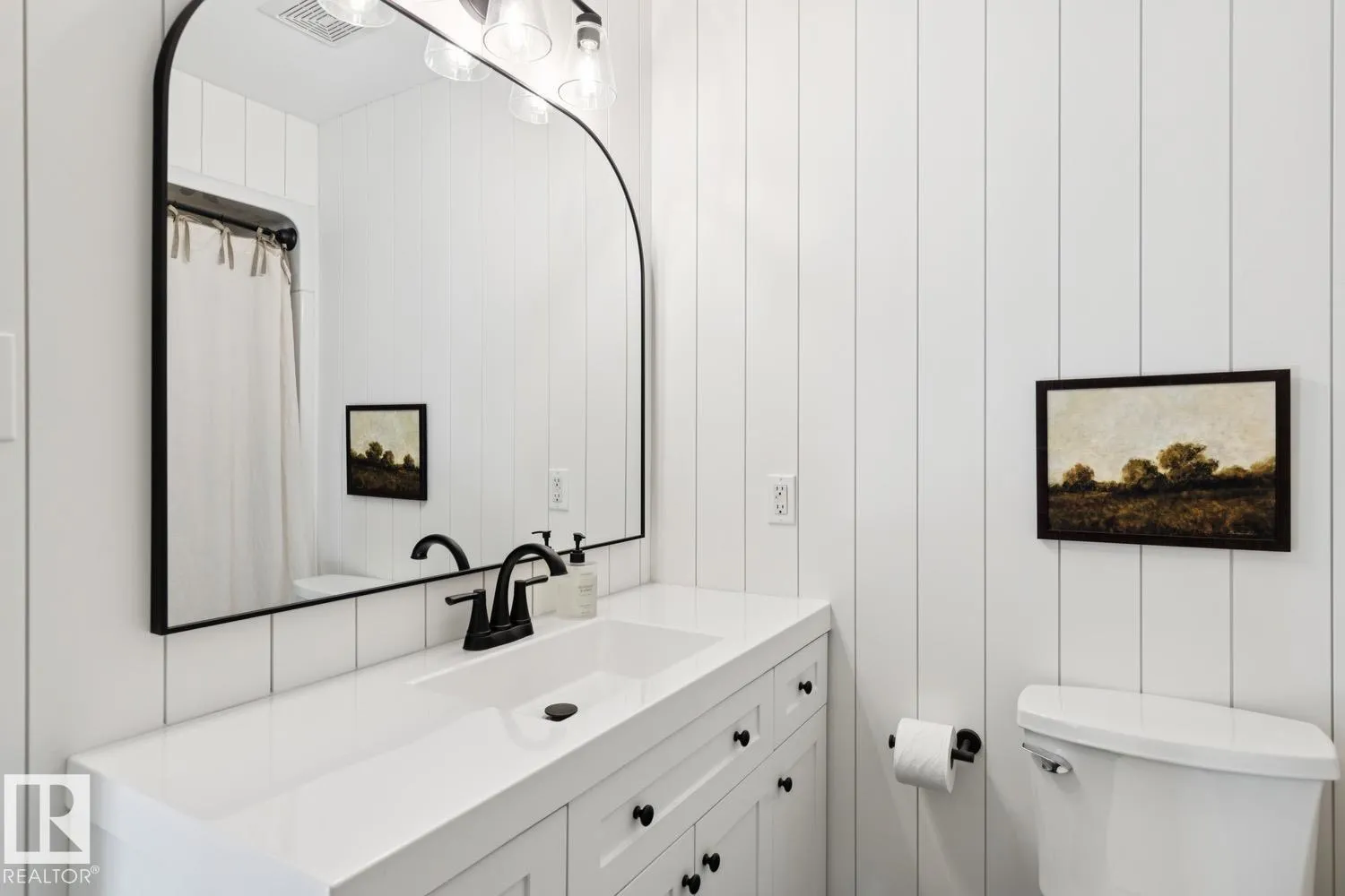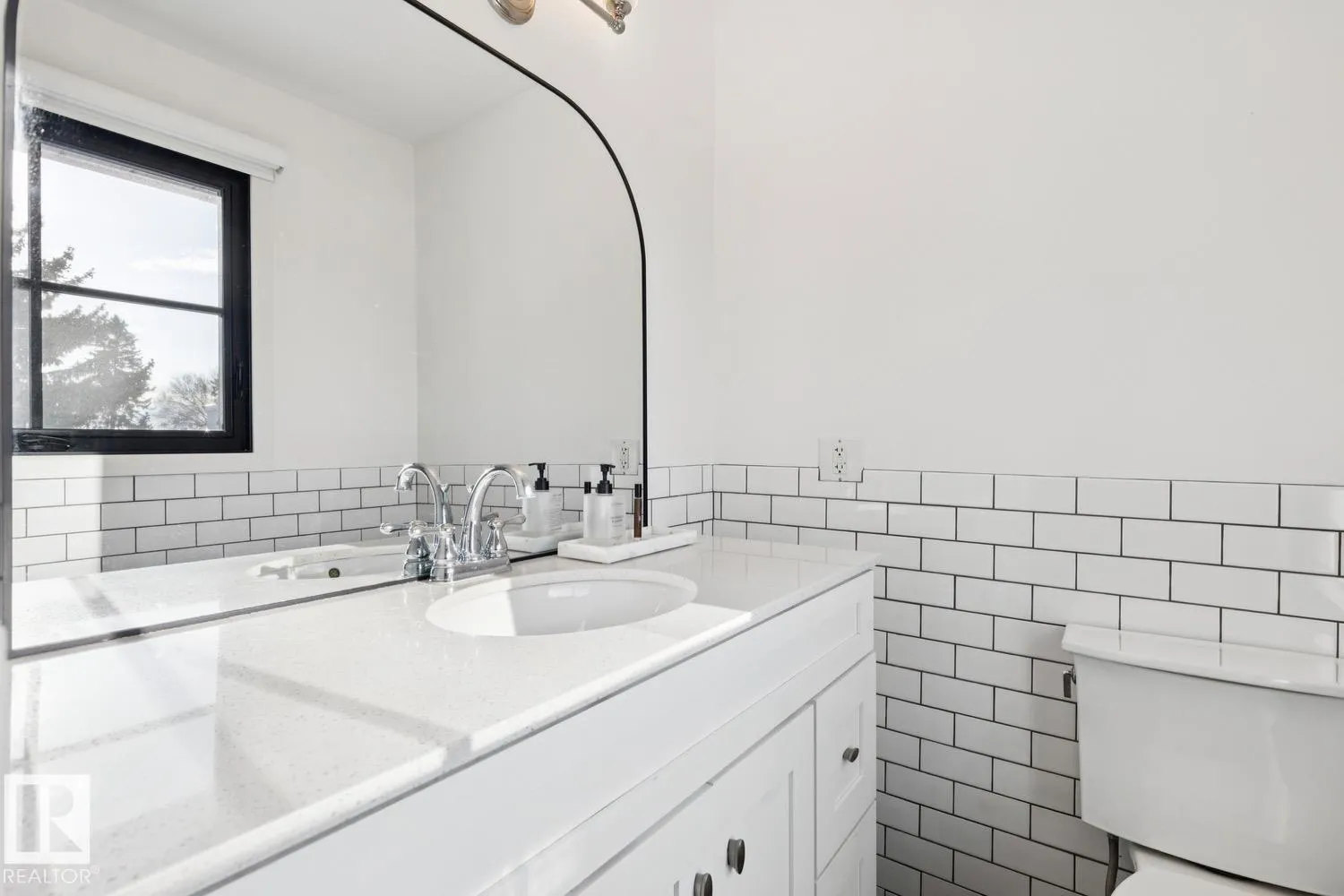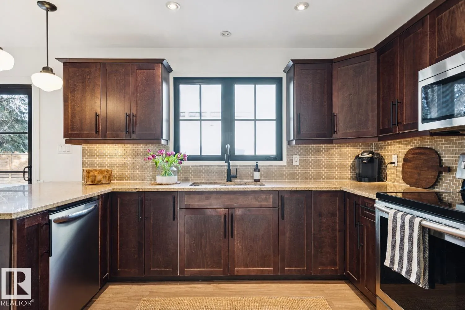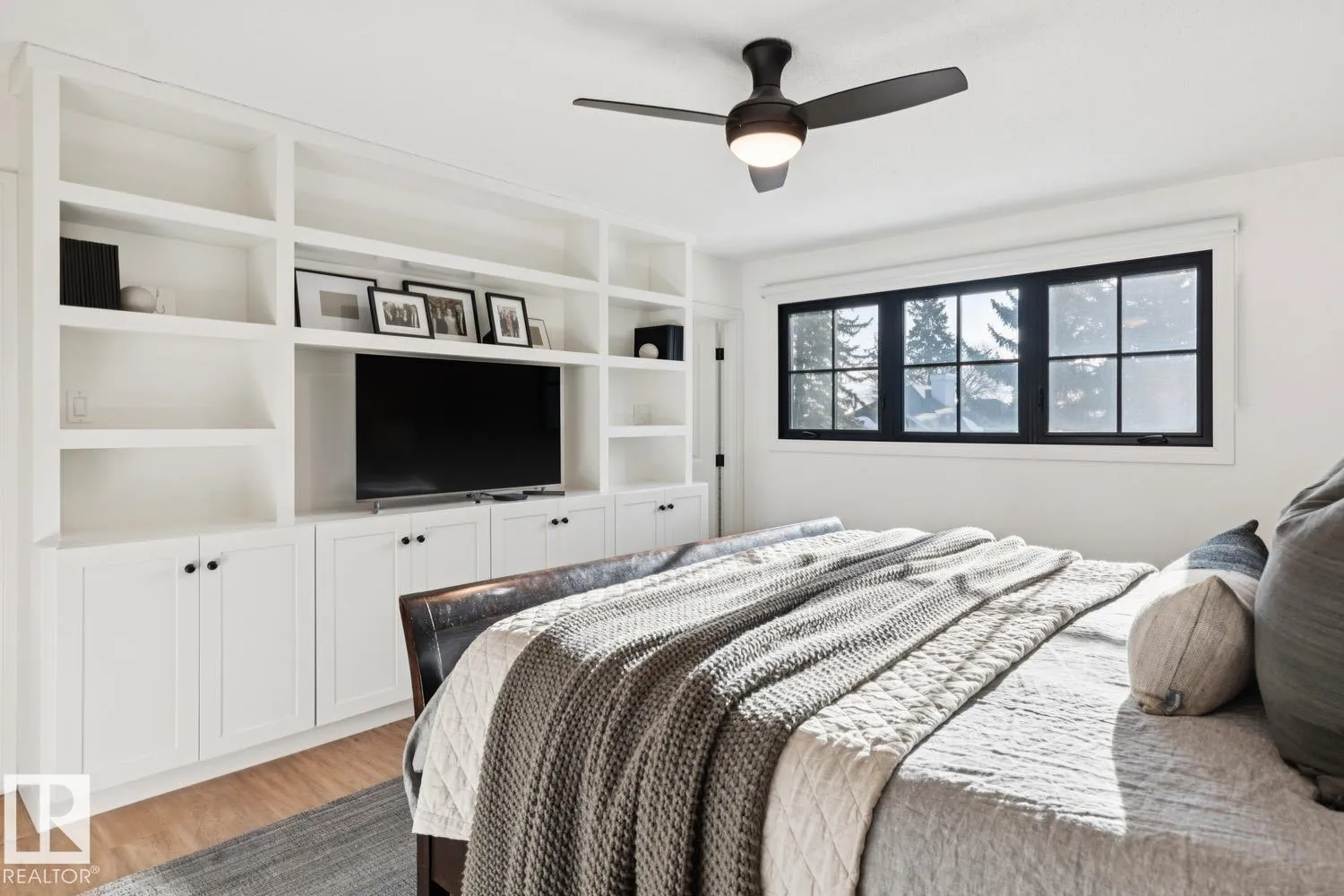This is the one youâve been waiting for! Welcome to this elegantly renovated two-storey, with a huge rooftop patio, in the highly desirable neighbourhood of Rio Terrace. Situated on a expertly manicured 11,290 SF lot, and across the street from the North Saskatchewan River Valley, this 4-bedroom home offers exceptional space and function for modern family living. The main floor is spacious and bright, featuring a magazine worthy living room with stone-facing fireplace and massive south facing windows. Kitchen was designed with the chef in mind, and adjacent dining room is the spot to host all your dinner parties. Down the hall you'll find a large office/den with access to the backyard & side gate - perfect for a home based business! Upstairs youâll find three generous bedrooms including a stunning primary retreat with a massive walk-in closet & 3-piece ensuite, plus a full main bath. The basement is fully finished with large rec/family room, half-bath and 4th bedroom! Double attached garage, A/C & more! (id:27476)