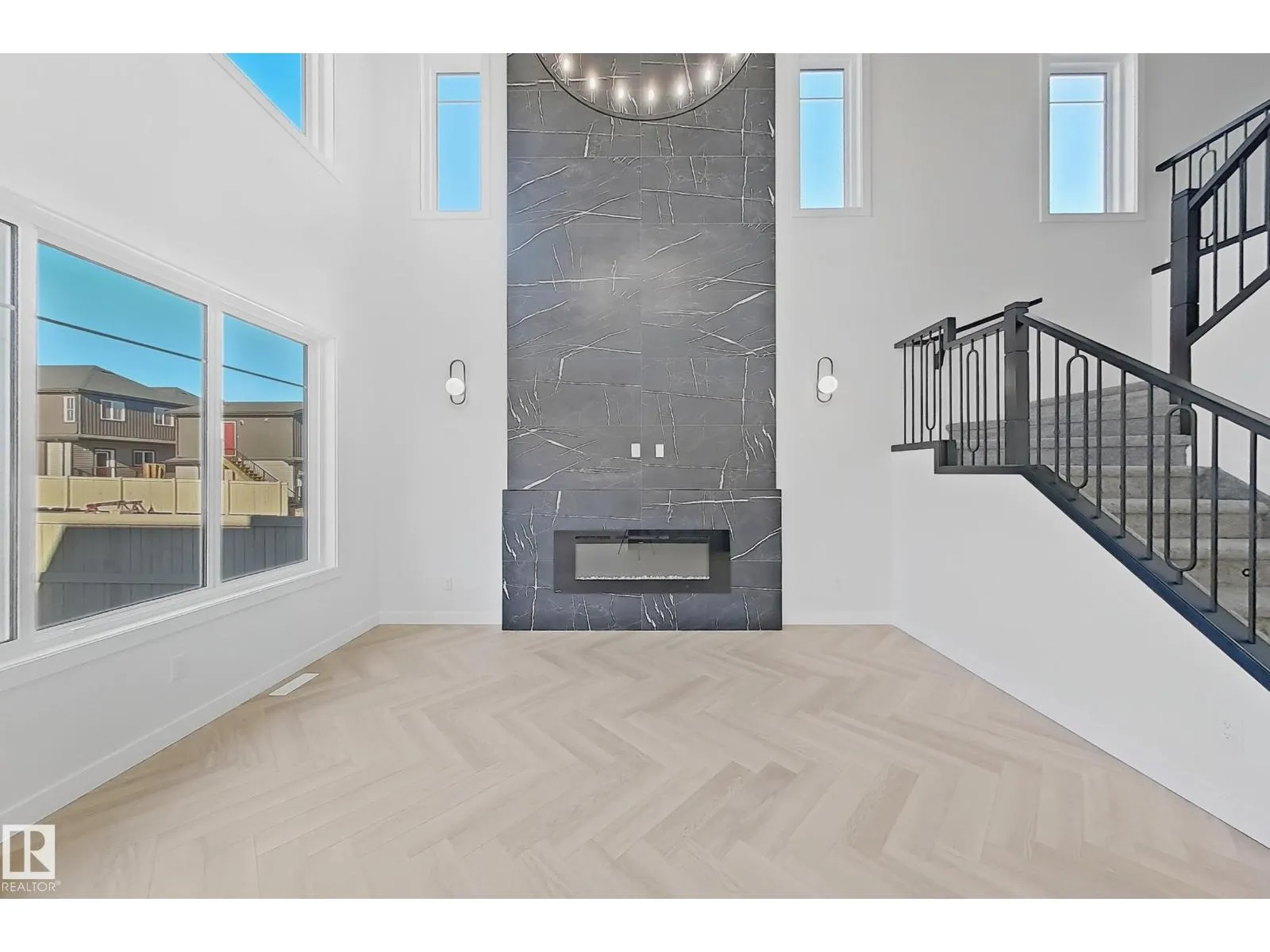 Check out this beautifully designed corner house with 4 bedrooms, 3 full bathrooms, a kitchen with a walk-thru pantry, living room open to below, dining area, upstairs laundry, a bonus room, and a side entrance to the basement. The upgraded kitchen features quartz countertops, upgraded cabinets with glass, pot & pan drawers, and built-in appliances. All 3 levels have 9 ft ceilings, and the open-to-above living room boasts large windows and a fireplace. Other upgrades include a custom master shower with a bench, a high-efficiency furnace, an upgraded roof and insulation, soft-close features throughout, upgraded railings, MDF shelving, upgraded lighting and plumbing fixtures, upgraded hardware, gas lines to the deck, kitchen, and garage, basement rough-ins, and additional windows due to the corner lot location. The upgraded exterior elevation includes stone, premium vinyl siding, and front concrete steps. It's also walking distance to a pond, trail, and park. (id:27476)