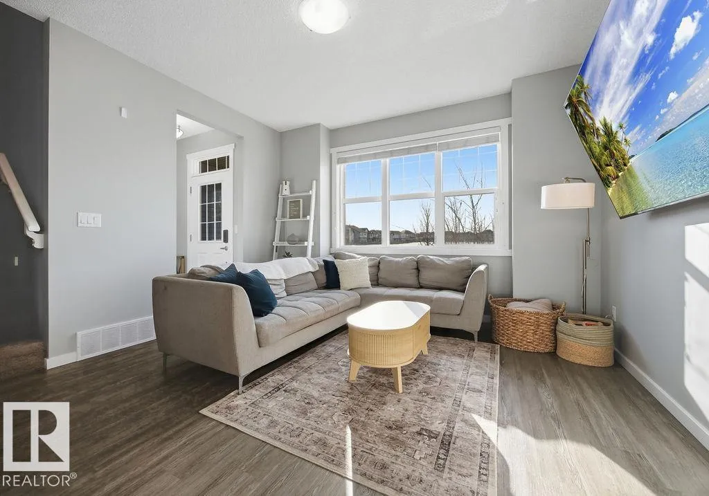 Welcome to this beautifully designed 2-storey townhome in the desirable Glenridding Heights neighborhood. Step inside to a bright, open-concept floor plan filled with natural light and thoughtfully designed living space. The main level features a spacious living room that flows seamlessly into the kitchen and dining areaâ perfect for both everyday living and entertaining. Large windows enhance the airy feel, while the functional layout ensures effortless hosting and family gatherings. Upstairs, youâll find three generously sized bedrooms, including a private primary retreat complete with a full ensuite bath. Two additional bedrooms and a well-appointed main bathroom provide ample space for family, guests, or a home office. A convenient main-floor powder room adds extra functionality. The backyard features a spacious private patio and the double detached garage offers secure parking and additional storage space. Located just minutes from shopping, dining, parks, schools, and everyday amenities! (id:27476)