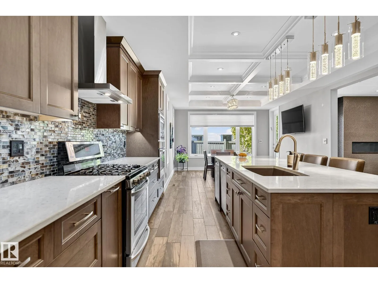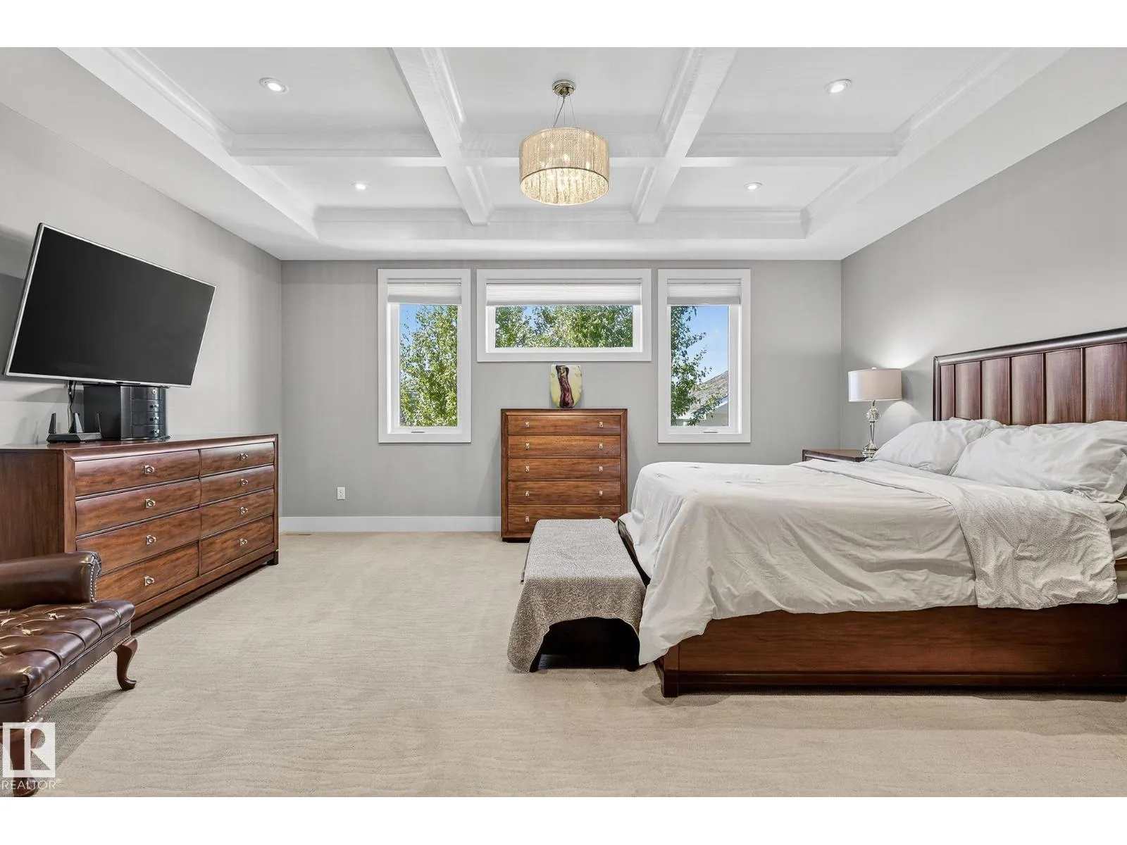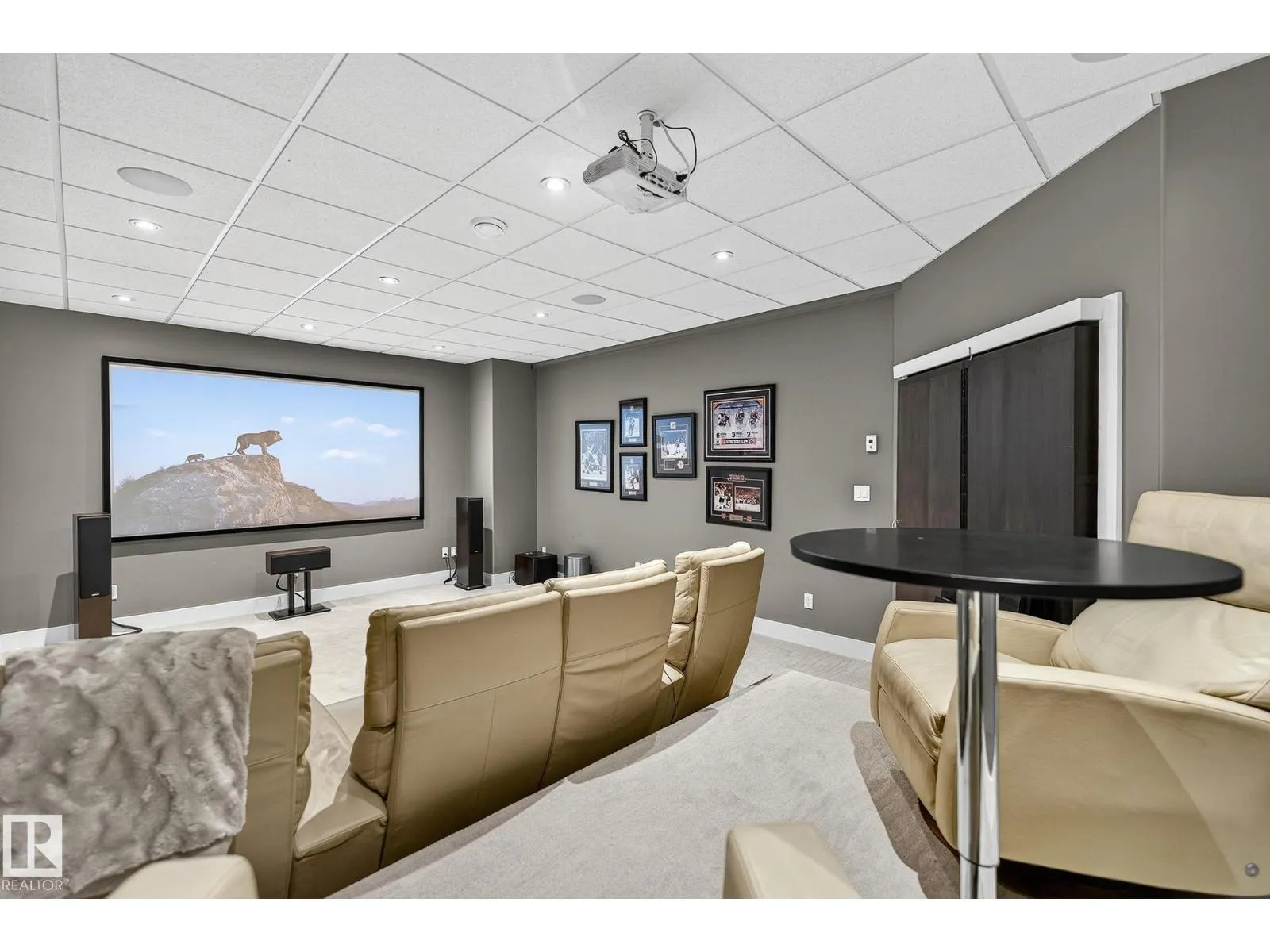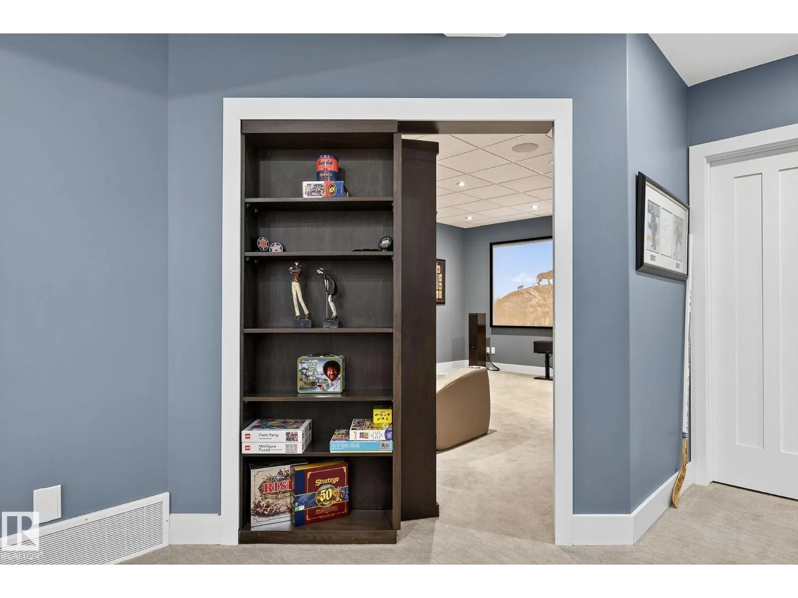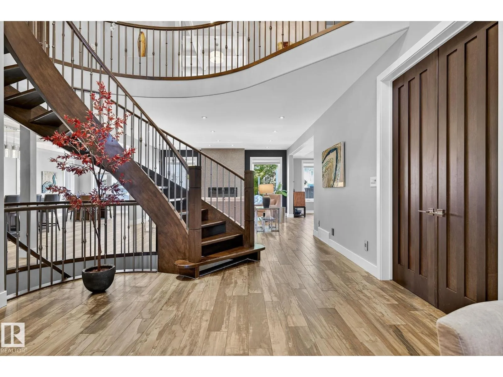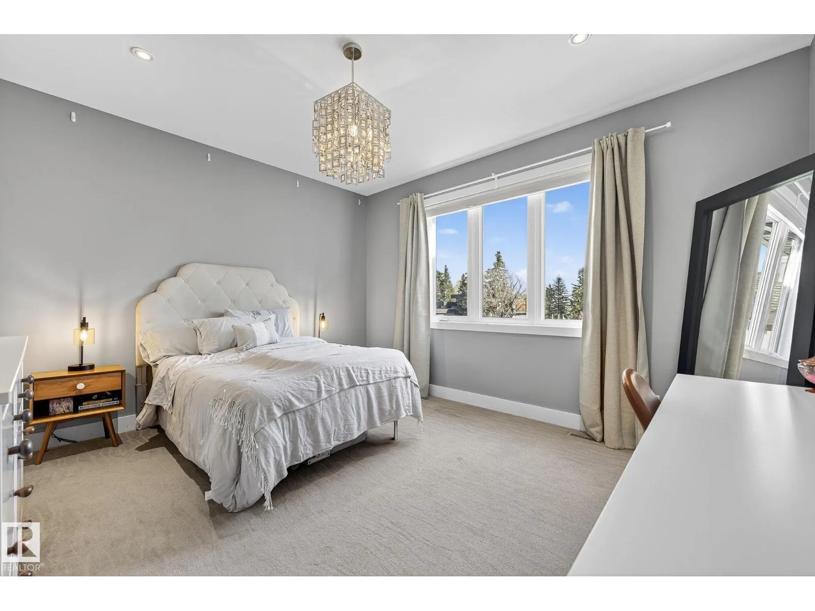 Exquisite custom-built estate in the prestigious Properties of Donsdale, one of Edmontonâs most sought-after communities. Offering 6,952sqft just steps from the river valley, this home seamlessly blends luxury, functionality & craftsmanship. Featuring an open floor plan with 9ft ceilings on all floors, spiral staircase, warm durable tile flooring & plenty of natural light. The chefâs kitchen stuns with quartz counters, dual ovens, dishwashers, fridges, massive pantry & coffered ceilings. Highlights include a presidential office, grand dining room, spacious mudroom. Upstairs, the primary suite offers dual walk-ins, a spa ensuite w/ heated floors, jetted tub & fireplace. Three additional bedrooms each enjoy walk-in closets & private ensuites + laundry & a cozy bonus room. The finished basement boasts zoned in-floor heat, wet bar, private HIDDEN BOOKSHELF theatre, multi-TV sports area, hockey & art room or 2 bedrooms. Oversized triple heated garage w/ drains & low maintenance turf yards + so much more. (id:27476)