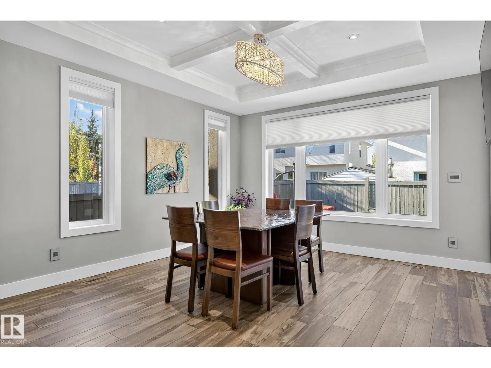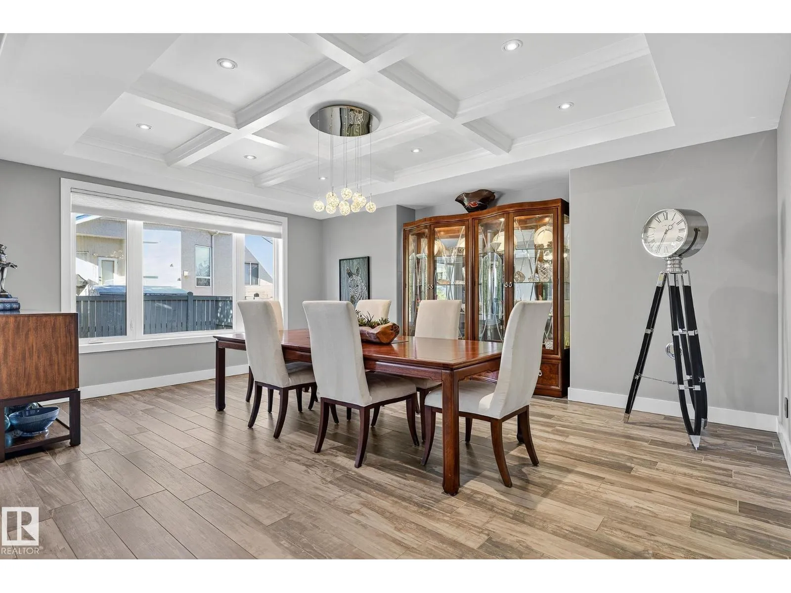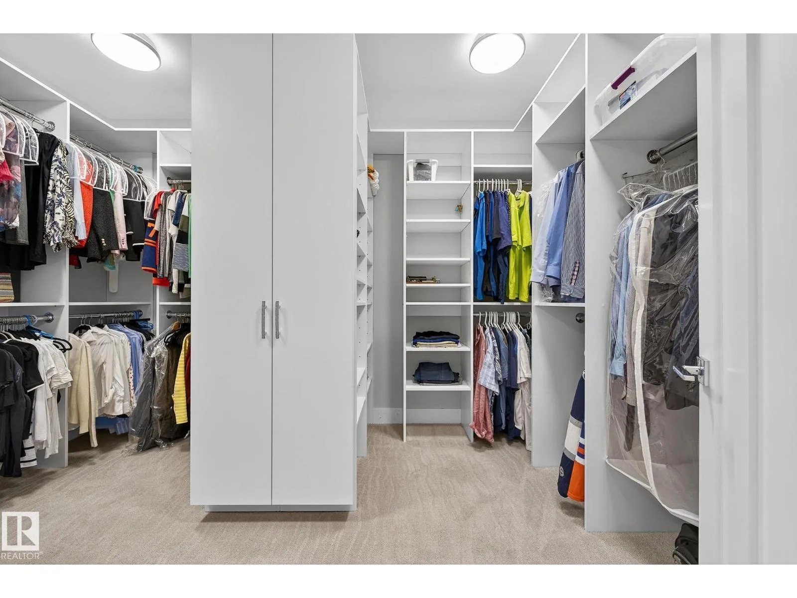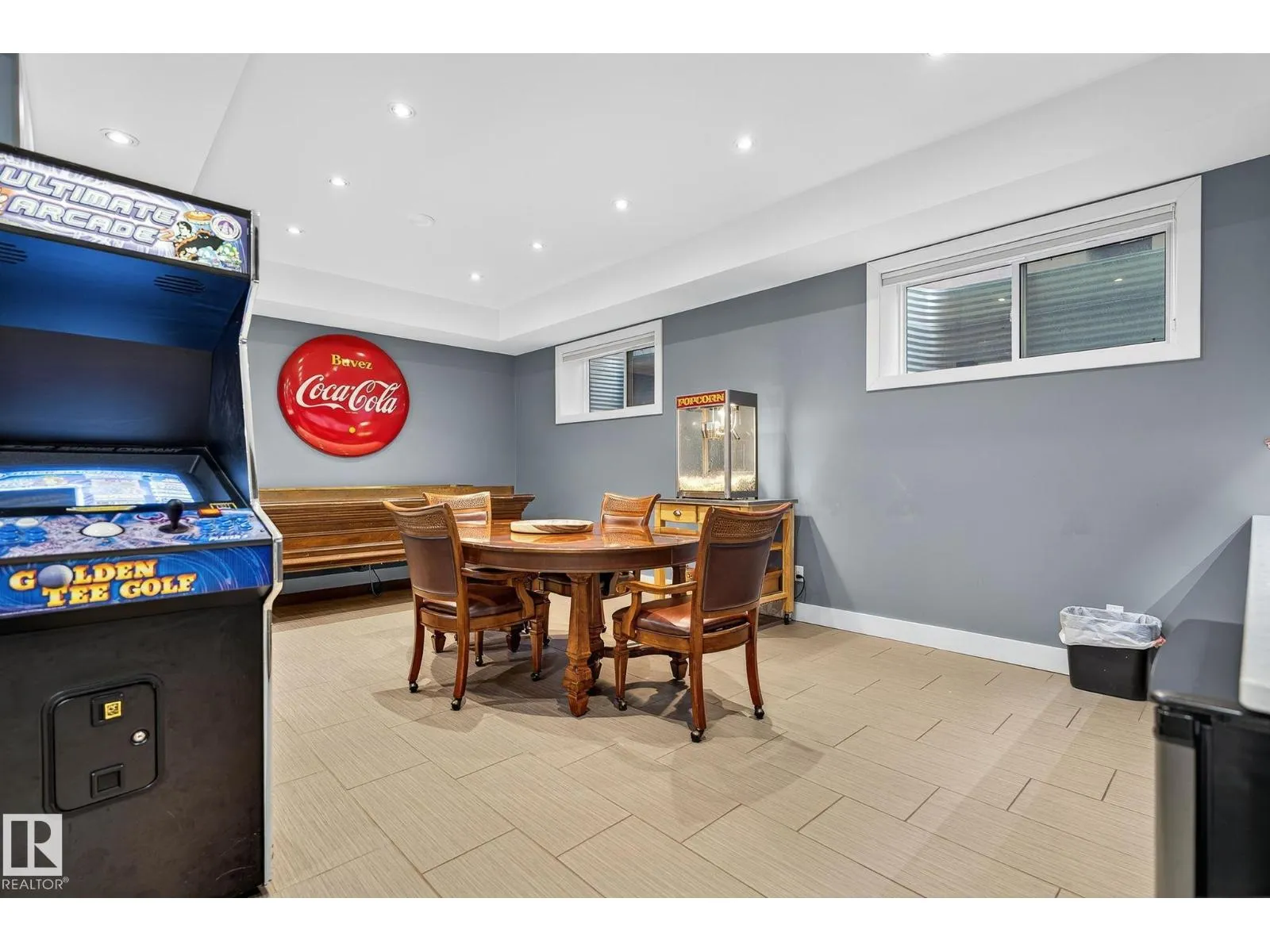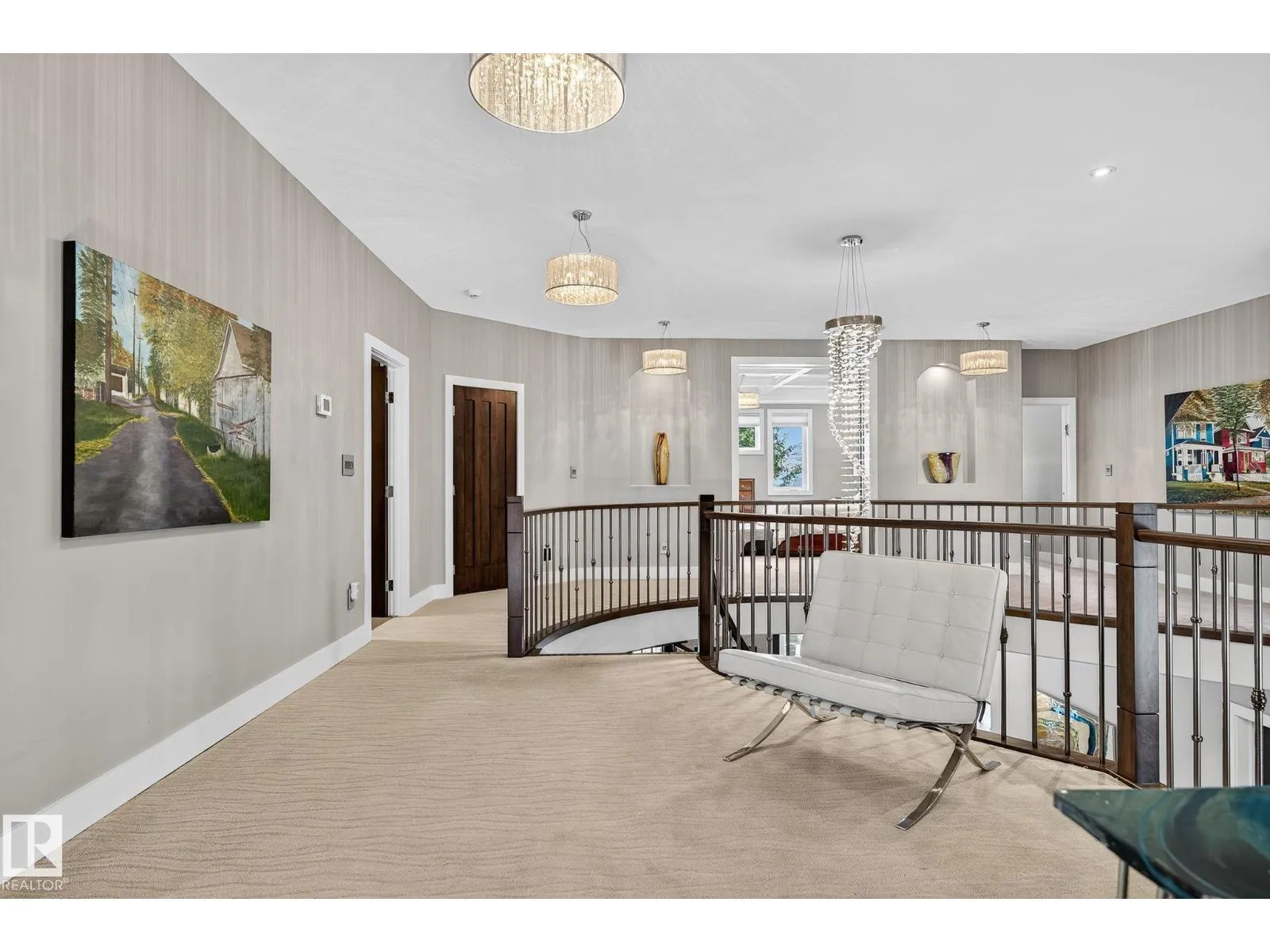 Exquisite custom-built estate in the prestigious Properties of Donsdale, one of Edmontonâs most sought-after communities. Offering 6,952sqft just steps from the river valley, this home seamlessly blends luxury, functionality & craftsmanship. Featuring an open floor plan with 9ft ceilings on all floors, spiral staircase, warm durable tile flooring & plenty of natural light. The chefâs kitchen stuns with quartz counters, dual ovens, dishwashers, fridges, massive pantry & coffered ceilings. Highlights include a presidential office, grand dining room, spacious mudroom. Upstairs, the primary suite offers dual walk-ins, a spa ensuite w/ heated floors, jetted tub & fireplace. Three additional bedrooms each enjoy walk-in closets & private ensuites + laundry & a cozy bonus room. The finished basement boasts zoned in-floor heat, wet bar, private HIDDEN BOOKSHELF theatre, multi-TV sports area, hockey & art room or 2 bedrooms. Oversized triple heated garage w/ drains & low maintenance turf yards + so much more. (id:27476)