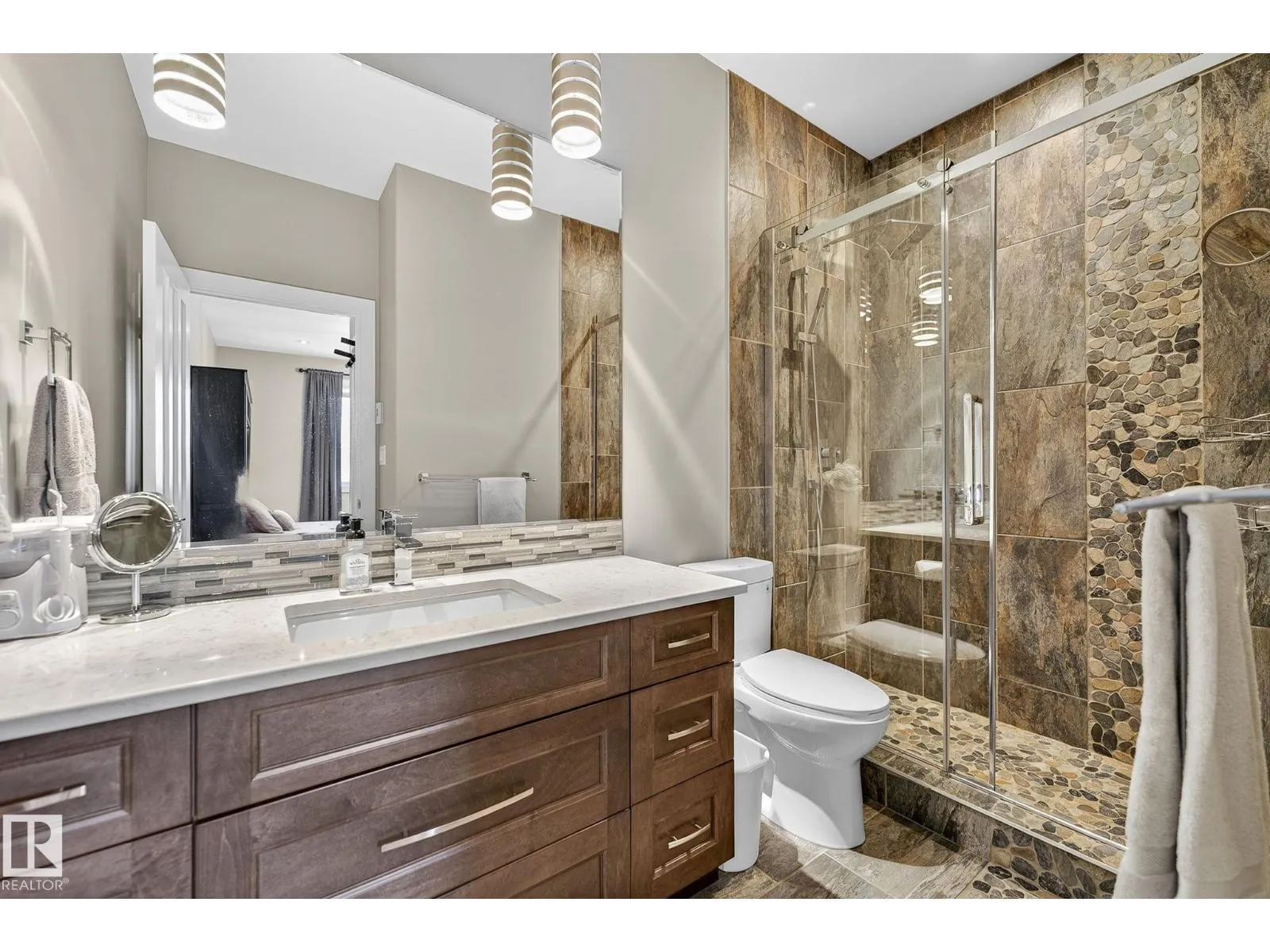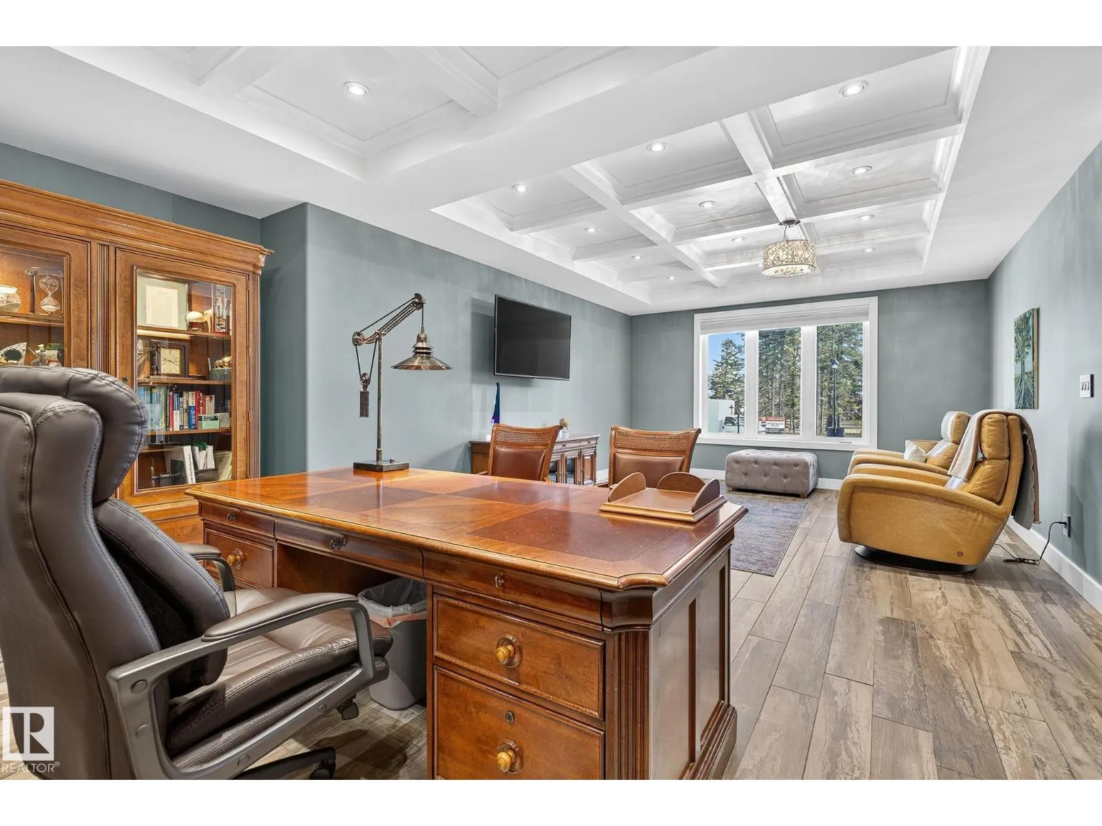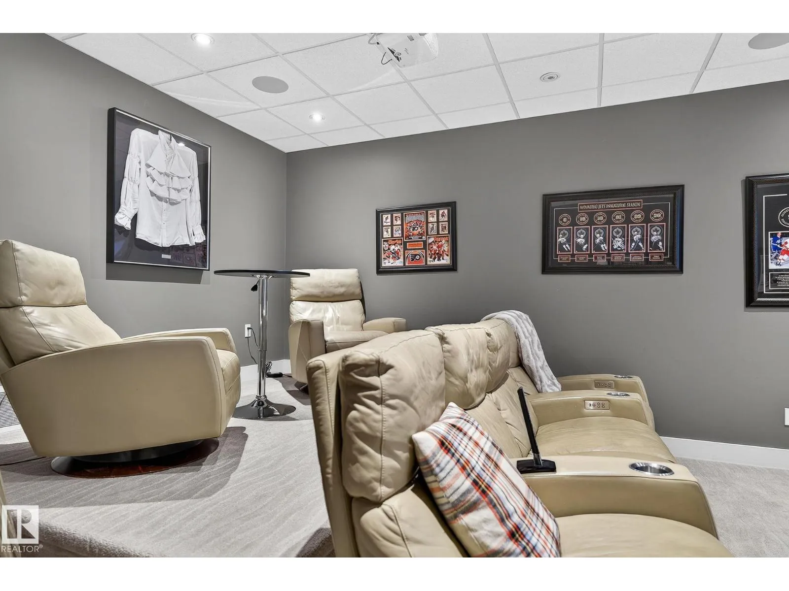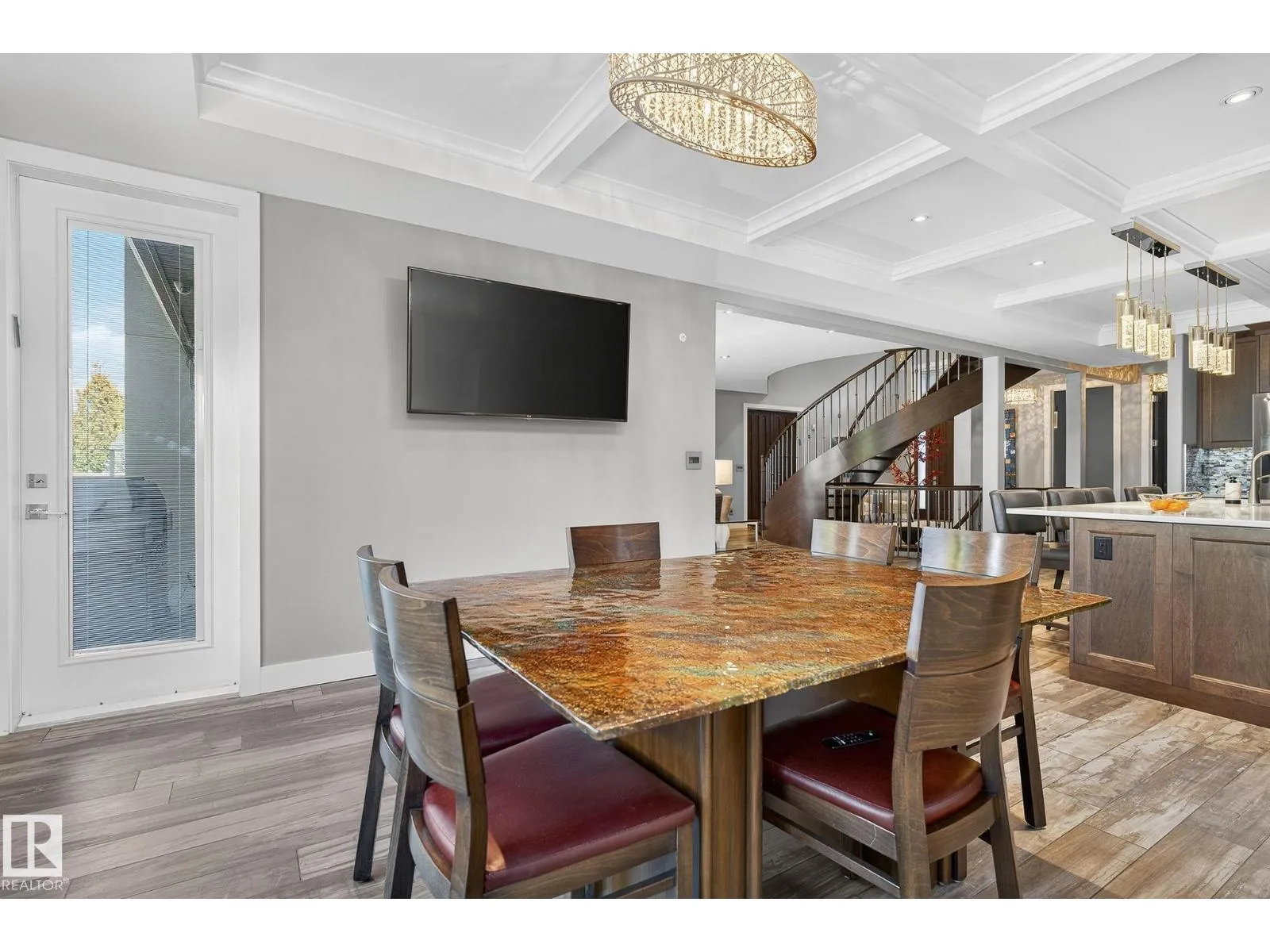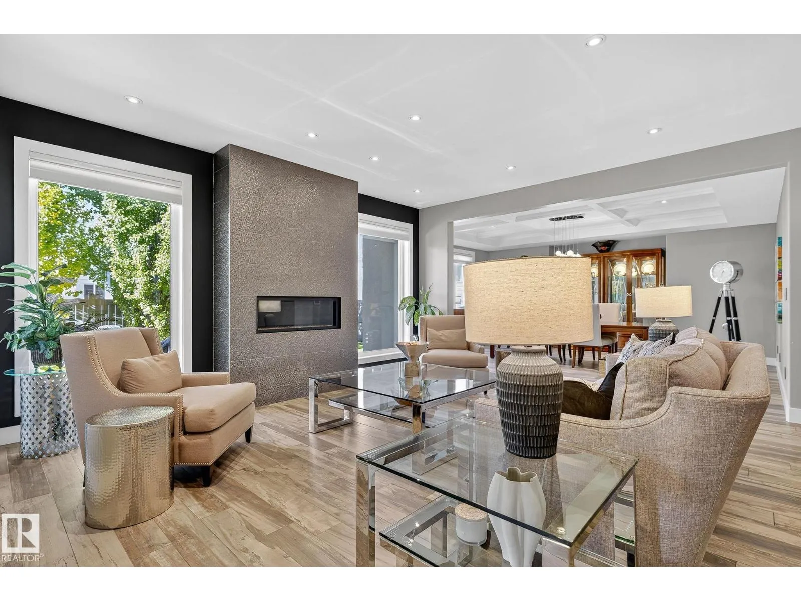 Exquisite custom-built estate in the prestigious Properties of Donsdale, one of Edmontonâs most sought-after communities. Offering 6,952sqft just steps from the river valley, this home seamlessly blends luxury, functionality & craftsmanship. Featuring an open floor plan with 9ft ceilings on all floors, spiral staircase, warm durable tile flooring & plenty of natural light. The chefâs kitchen stuns with quartz counters, dual ovens, dishwashers, fridges, massive pantry & coffered ceilings. Highlights include a presidential office, grand dining room, spacious mudroom. Upstairs, the primary suite offers dual walk-ins, a spa ensuite w/ heated floors, jetted tub & fireplace. Three additional bedrooms each enjoy walk-in closets & private ensuites + laundry & a cozy bonus room. The finished basement boasts zoned in-floor heat, wet bar, private HIDDEN BOOKSHELF theatre, multi-TV sports area, hockey & art room or 2 bedrooms. Oversized triple heated garage w/ drains & low maintenance turf yards + so much more. (id:27476)