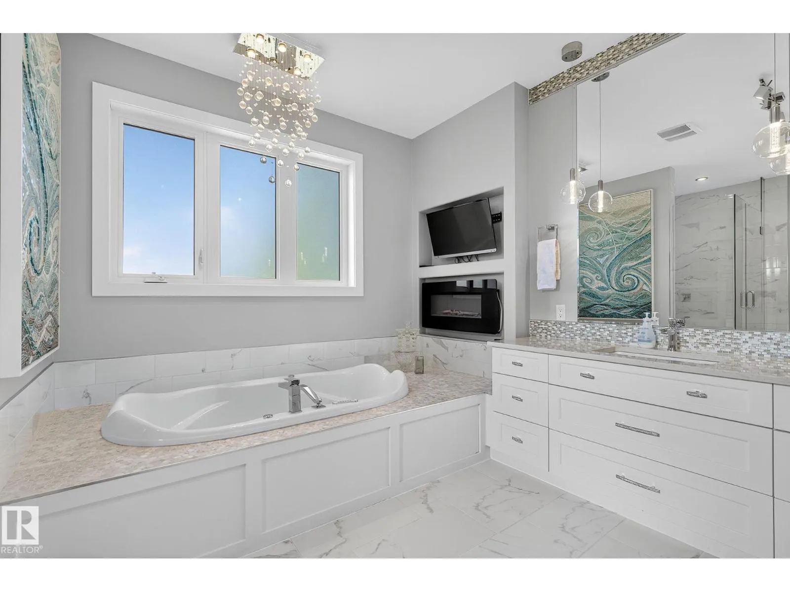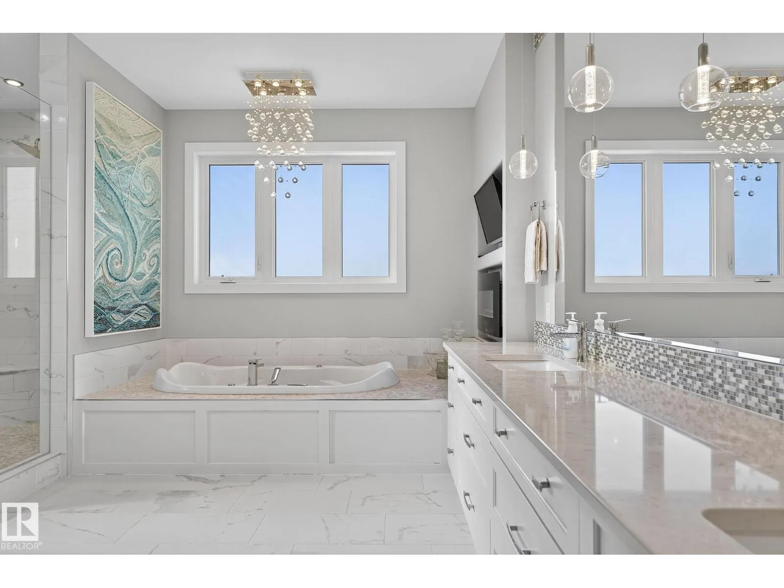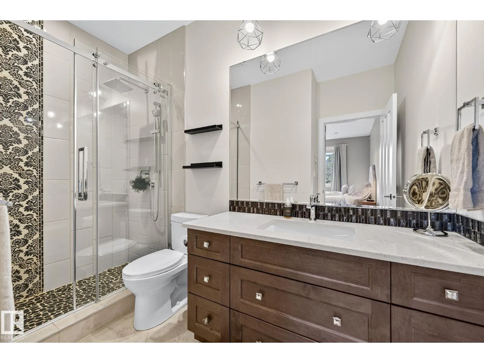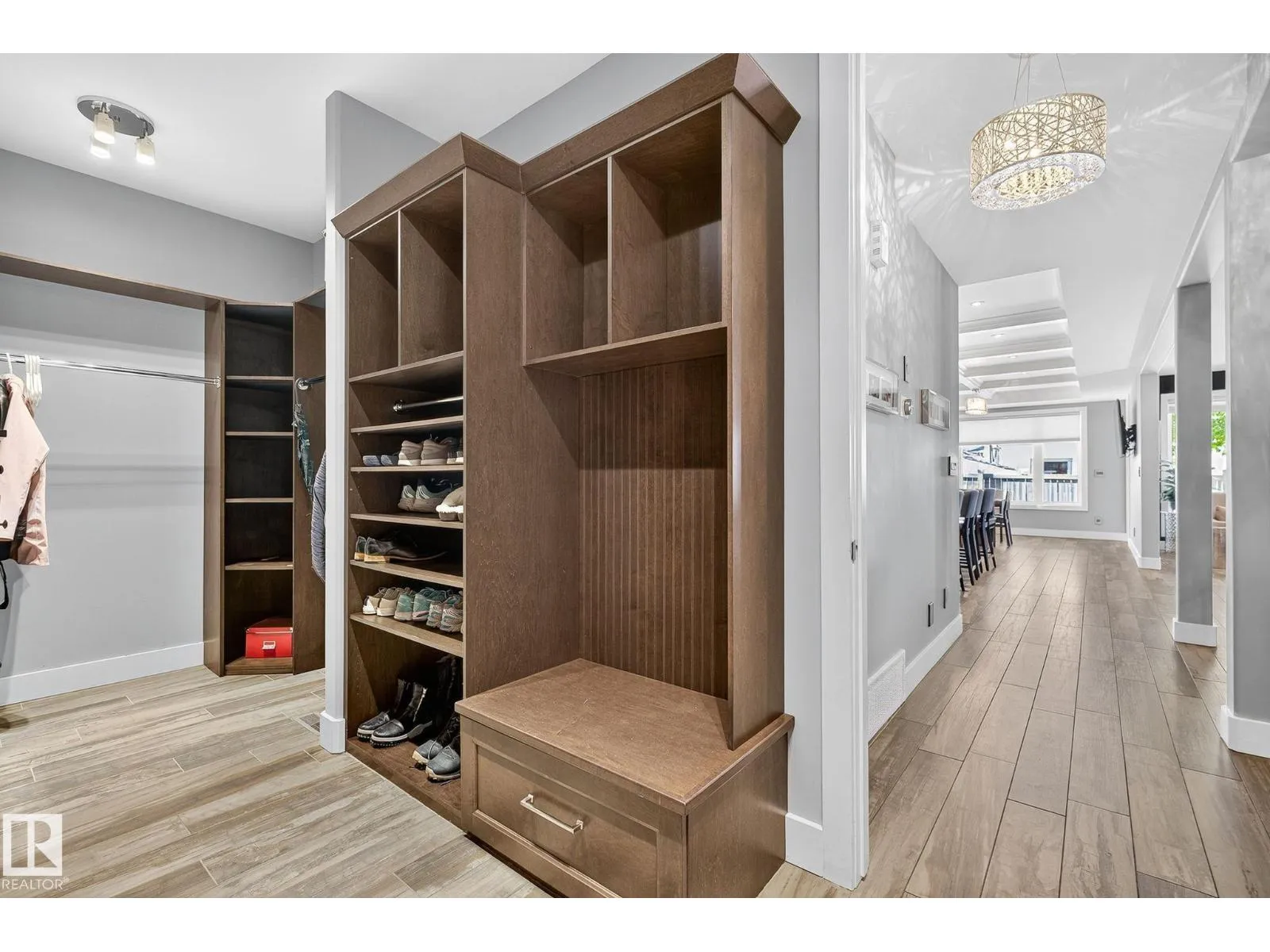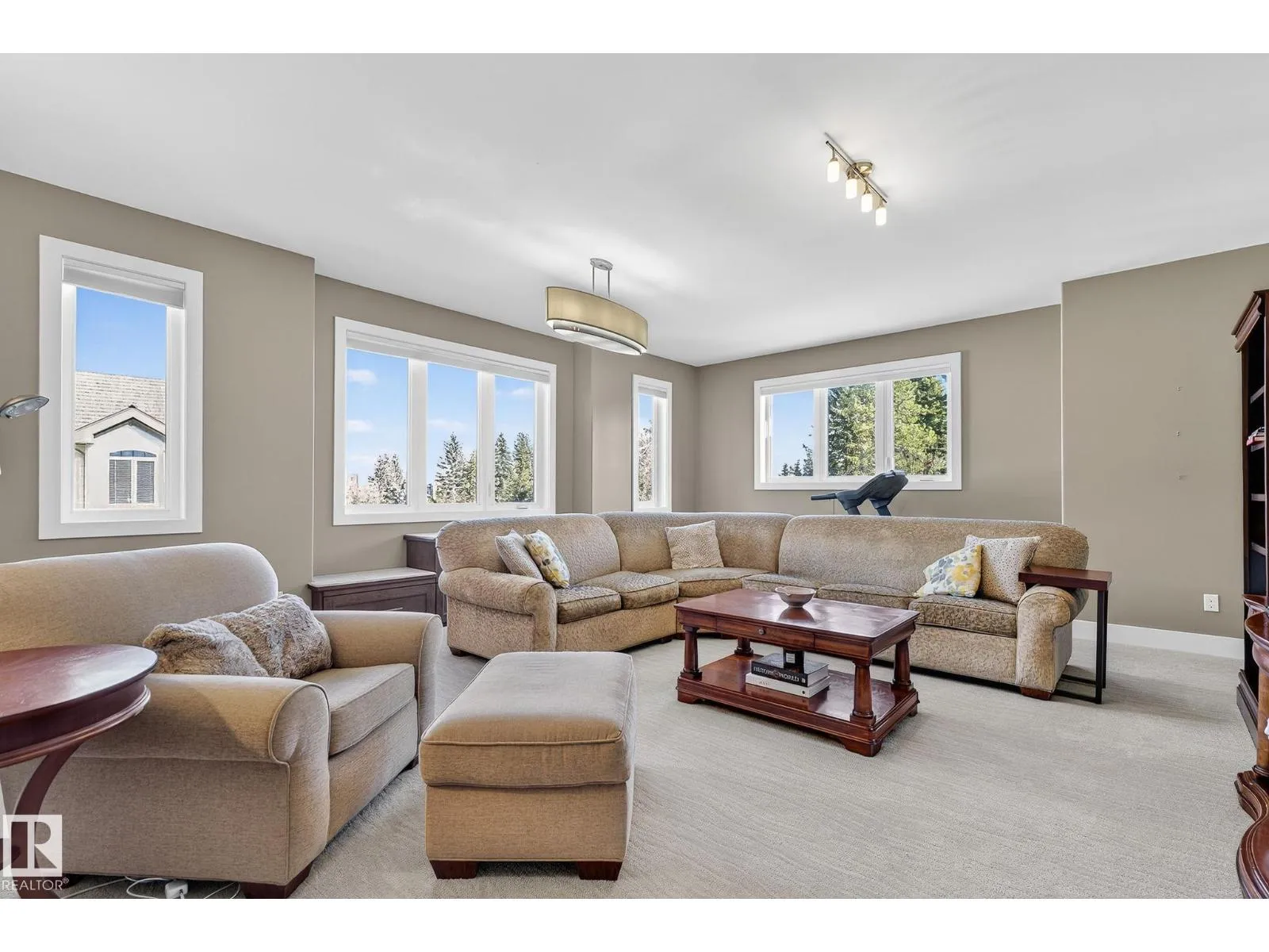 Exquisite custom-built estate in the prestigious Properties of Donsdale, one of Edmontonâs most sought-after communities. Offering 6,952sqft just steps from the river valley, this home seamlessly blends luxury, functionality & craftsmanship. Featuring an open floor plan with 9ft ceilings on all floors, spiral staircase, warm durable tile flooring & plenty of natural light. The chefâs kitchen stuns with quartz counters, dual ovens, dishwashers, fridges, massive pantry & coffered ceilings. Highlights include a presidential office, grand dining room, spacious mudroom. Upstairs, the primary suite offers dual walk-ins, a spa ensuite w/ heated floors, jetted tub & fireplace. Three additional bedrooms each enjoy walk-in closets & private ensuites + laundry & a cozy bonus room. The finished basement boasts zoned in-floor heat, wet bar, private HIDDEN BOOKSHELF theatre, multi-TV sports area, hockey & art room or 2 bedrooms. Oversized triple heated garage w/ drains & low maintenance turf yards + so much more. (id:27476)