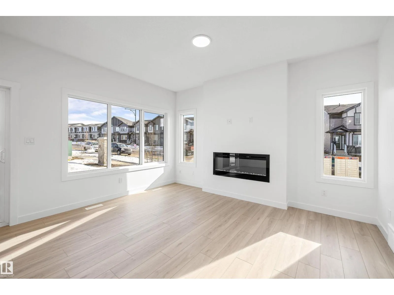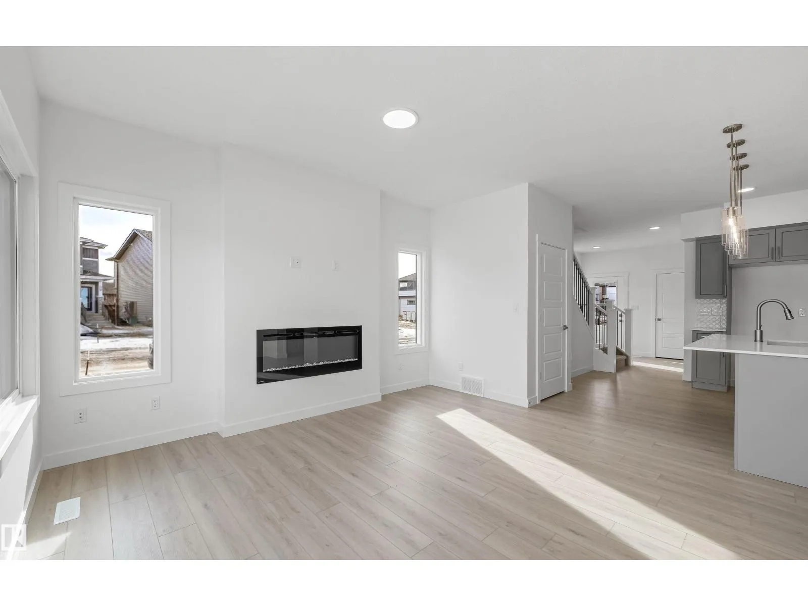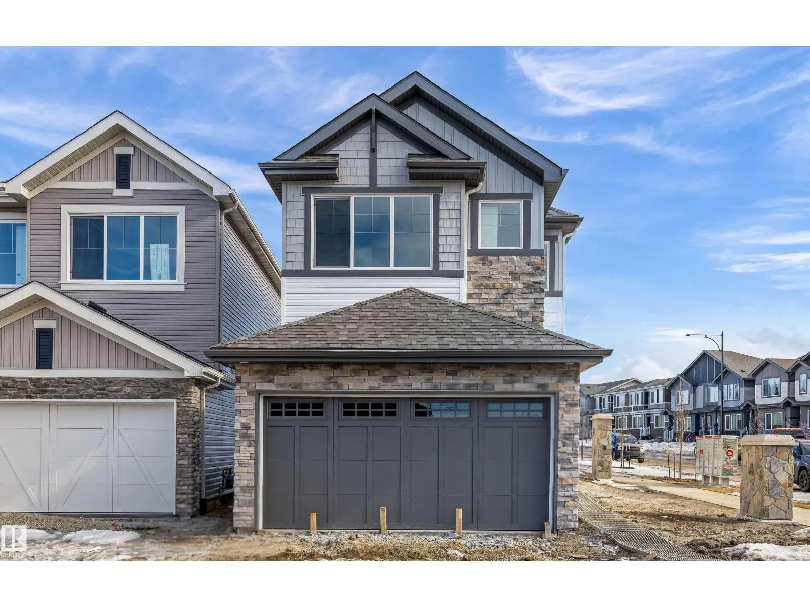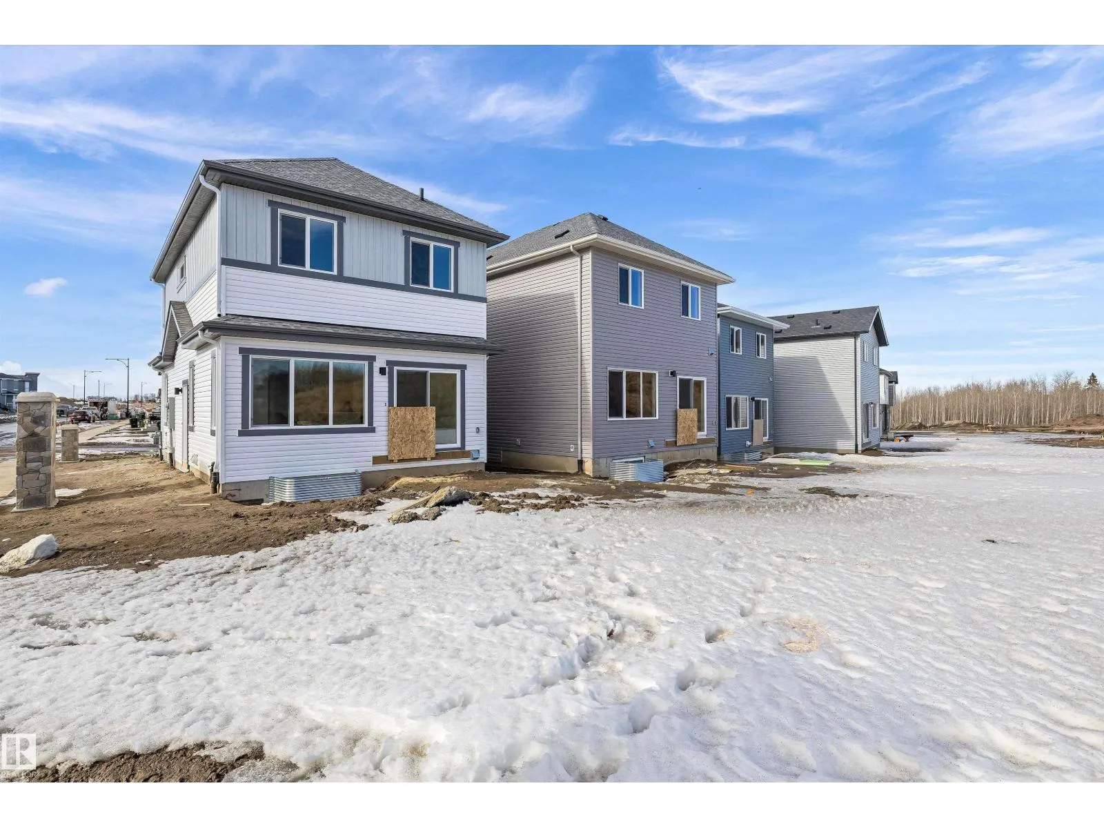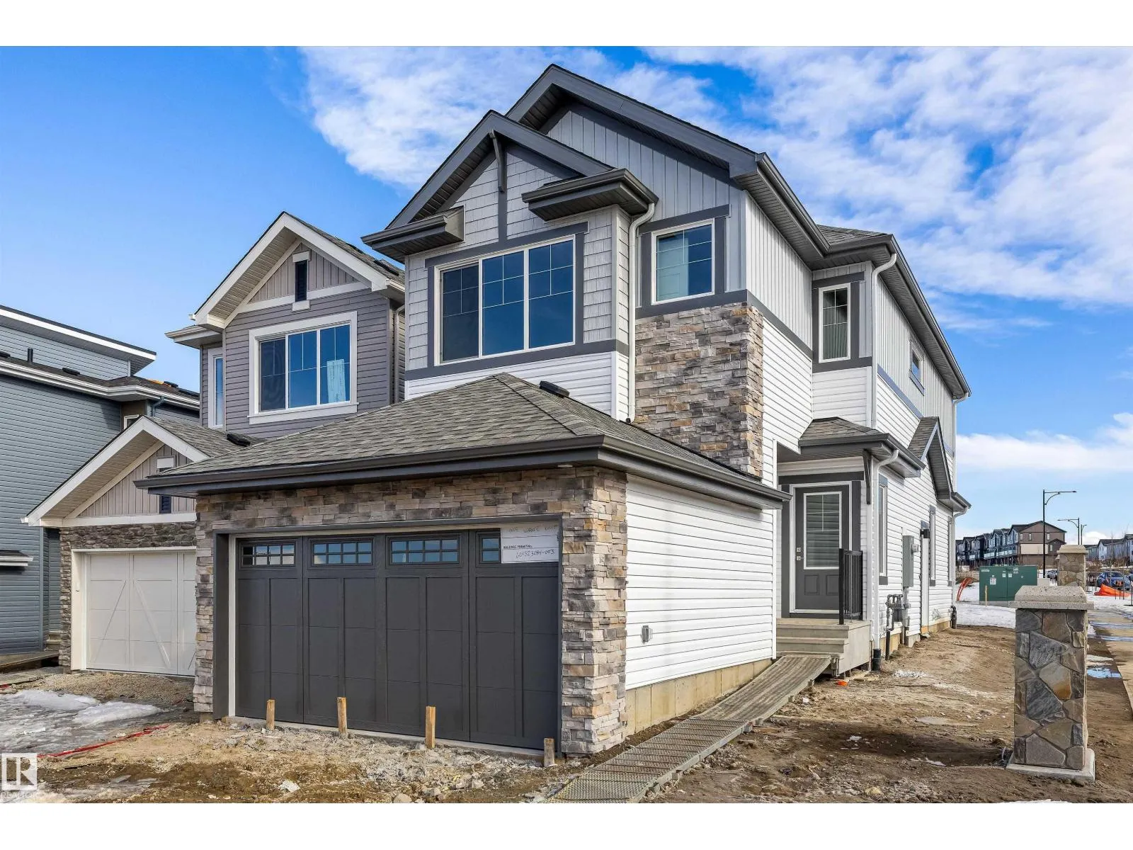 Built by Sterling Homes, this stunning front-attached residence in Kinglet occupies a prime corner lot, flooding the interior with natural light. The home is nestled in a serene NW Edmonton community defined by ponds, trails, and lush green spaces.The main floor boasts 9â ceilings, triple-pane windows, and luxury vinyl plank flooring. A chef-inspired kitchen features quartz countertops, a chimney hood fan, built-in microwave, and a walk-in pantry. The open-concept great room, anchored by an electric fireplace, flows seamlessly to the backyard via sliding patio doors. Upstairs, a flexible bonus room complements the bright primary suite, which offers a walk-in closet and a dual-sink ensuite. Two more bedrooms and convenient upper-floor laundry complete the level. Notable extras include a separate side entrance, mudroom with built-in storage, and a double garage with a floor drain. This home perfectly balances modern luxury with future potential. (id:27476)