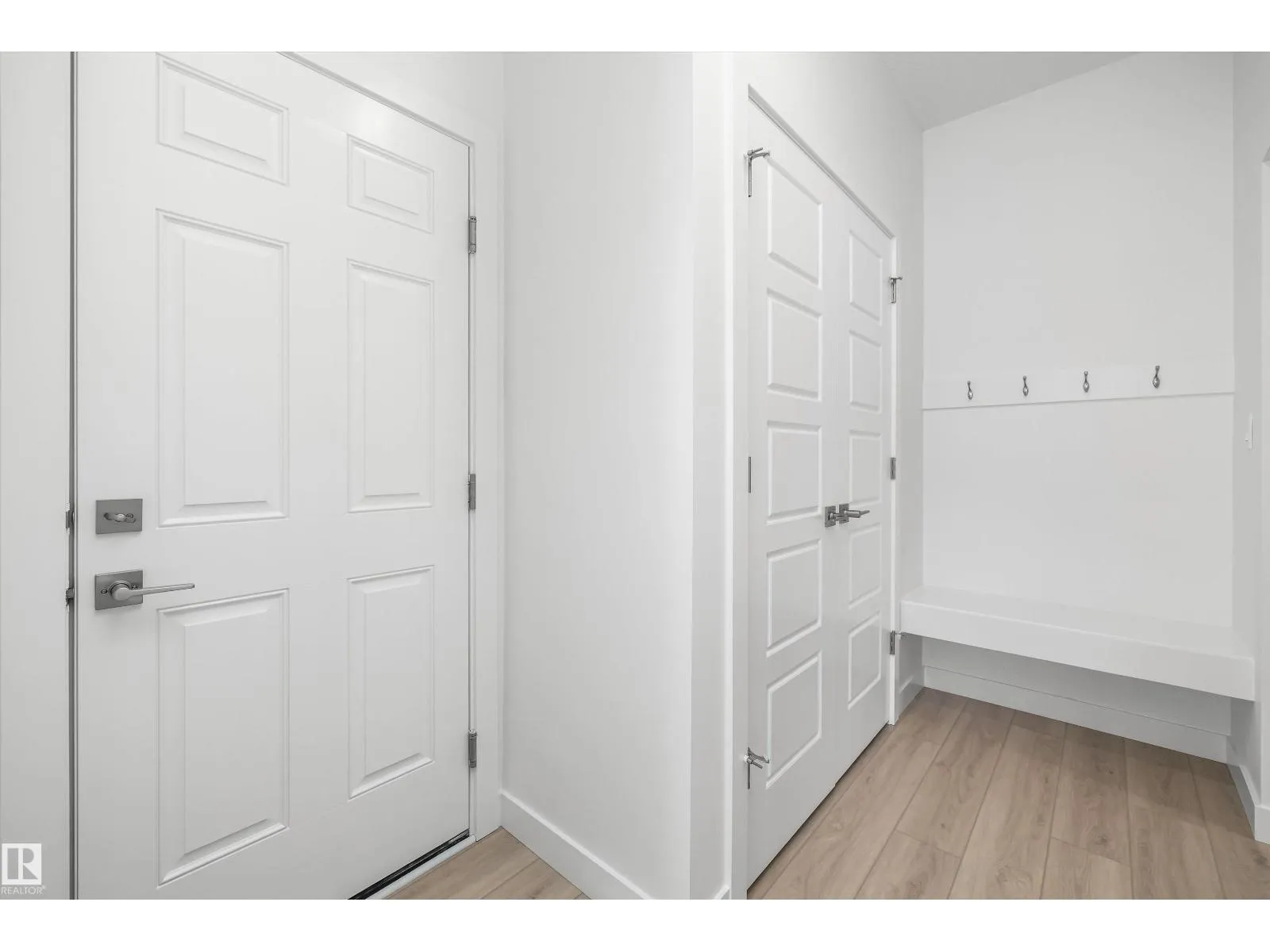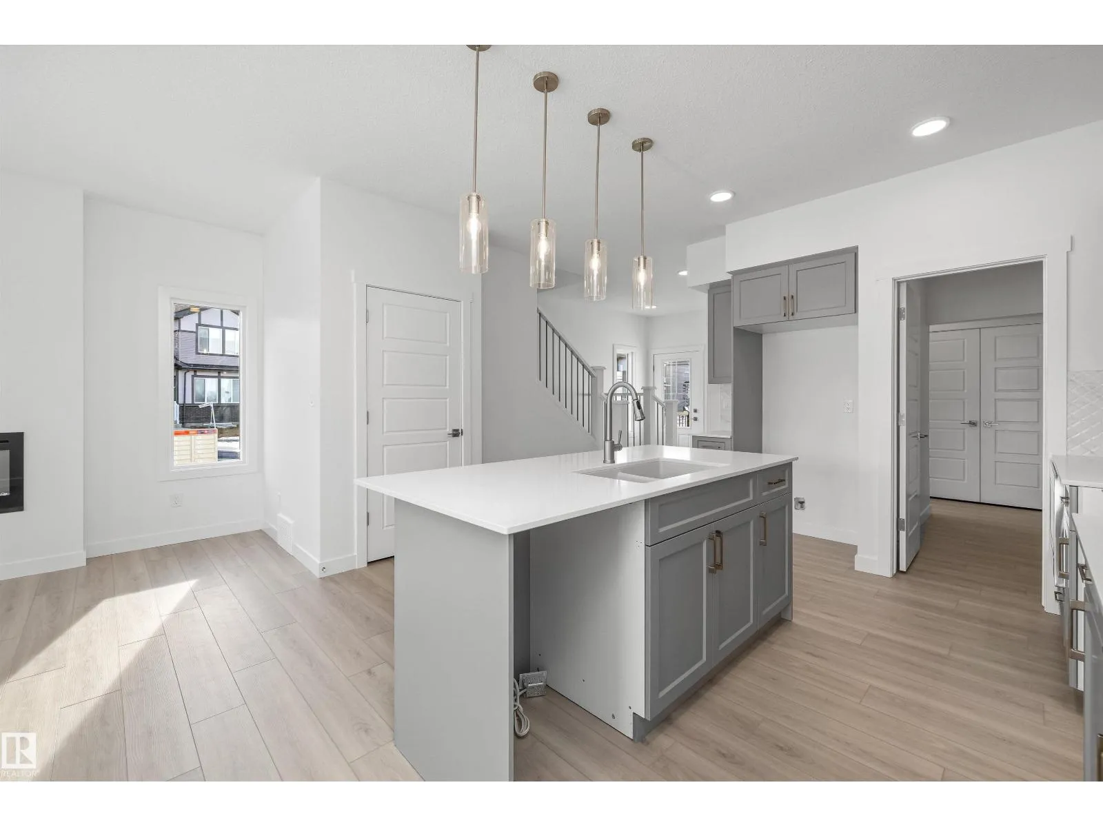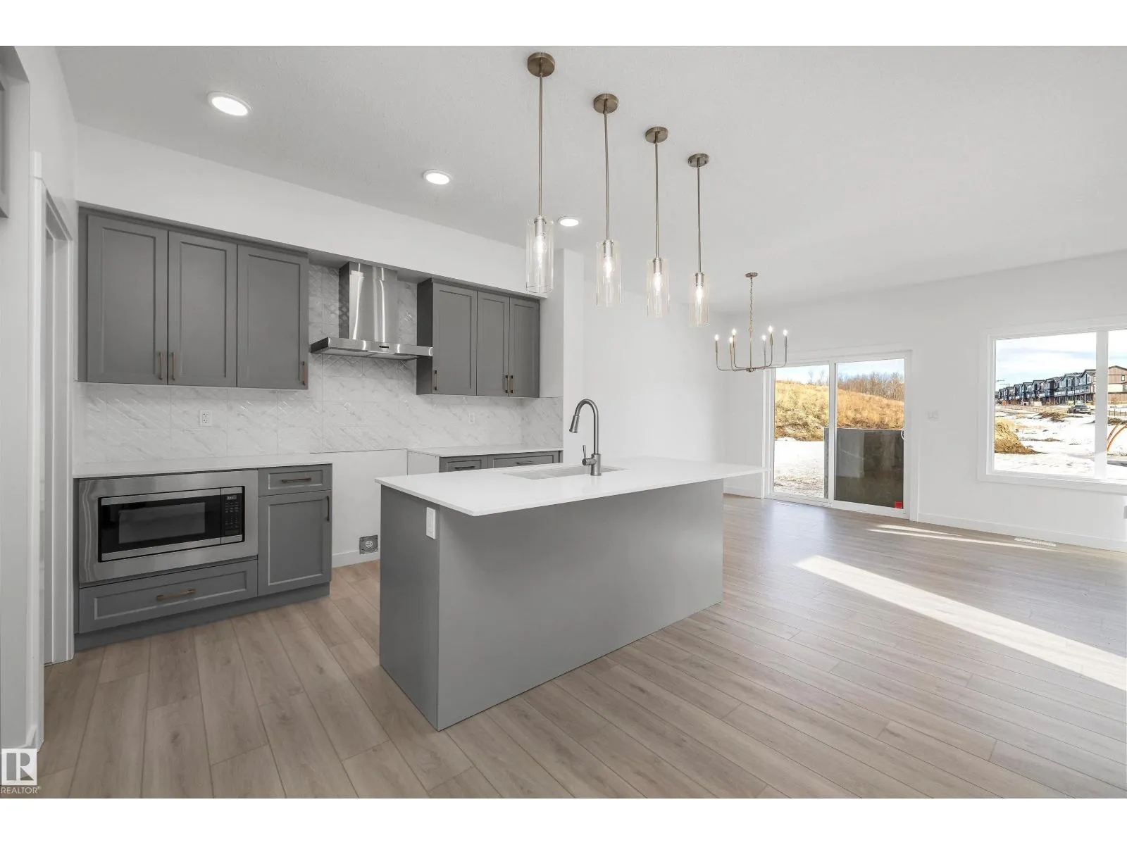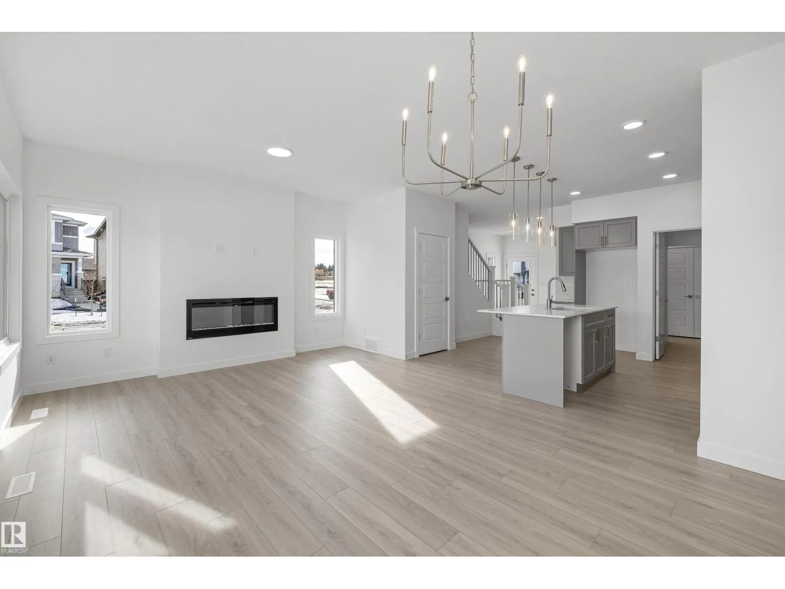 Built by Sterling Homes, this stunning front-attached residence in Kinglet occupies a prime corner lot, flooding the interior with natural light. The home is nestled in a serene NW Edmonton community defined by ponds, trails, and lush green spaces.The main floor boasts 9â ceilings, triple-pane windows, and luxury vinyl plank flooring. A chef-inspired kitchen features quartz countertops, a chimney hood fan, built-in microwave, and a walk-in pantry. The open-concept great room, anchored by an electric fireplace, flows seamlessly to the backyard via sliding patio doors. Upstairs, a flexible bonus room complements the bright primary suite, which offers a walk-in closet and a dual-sink ensuite. Two more bedrooms and convenient upper-floor laundry complete the level. Notable extras include a separate side entrance, mudroom with built-in storage, and a double garage with a floor drain. This home perfectly balances modern luxury with future potential. (id:27476)