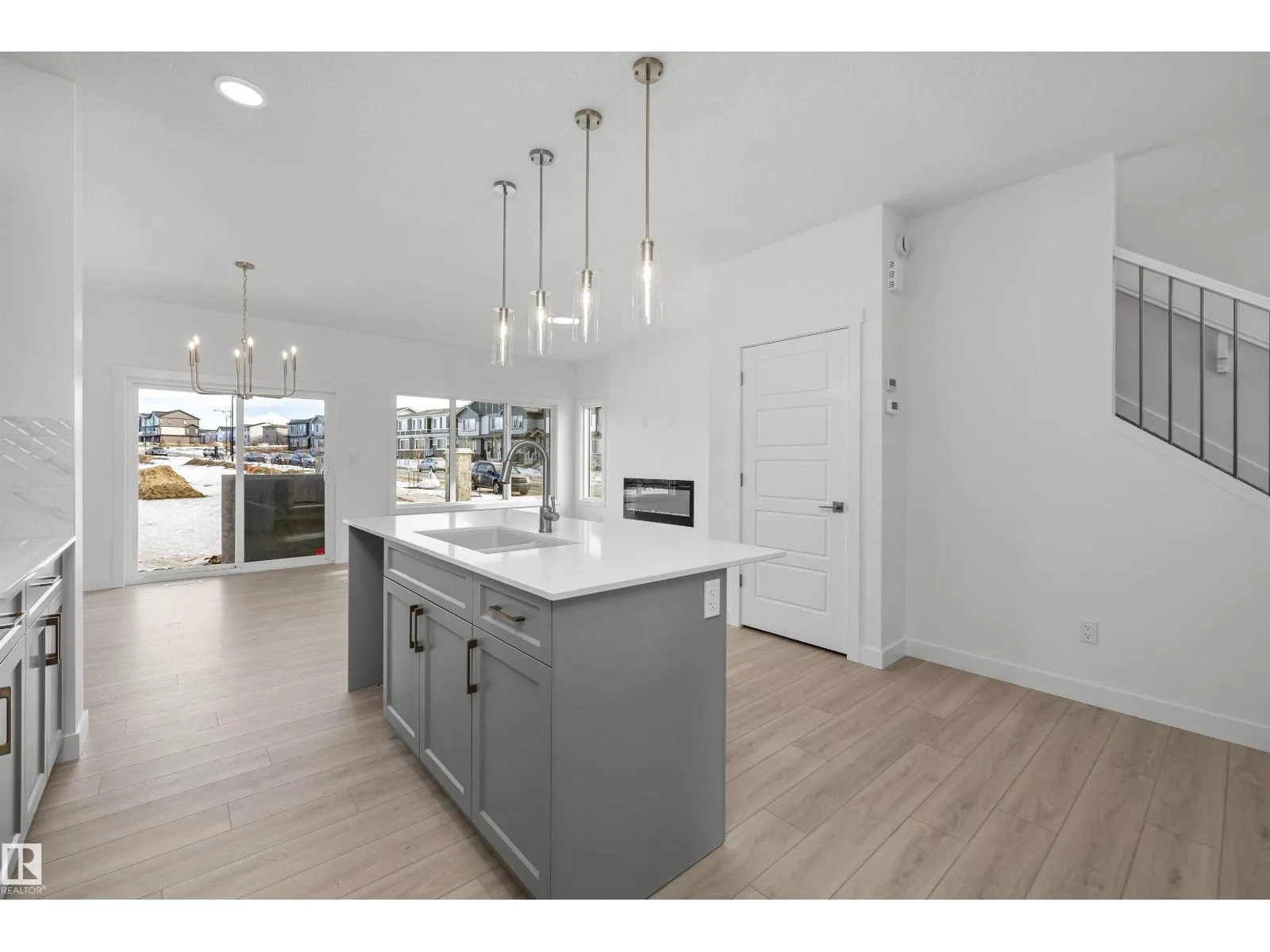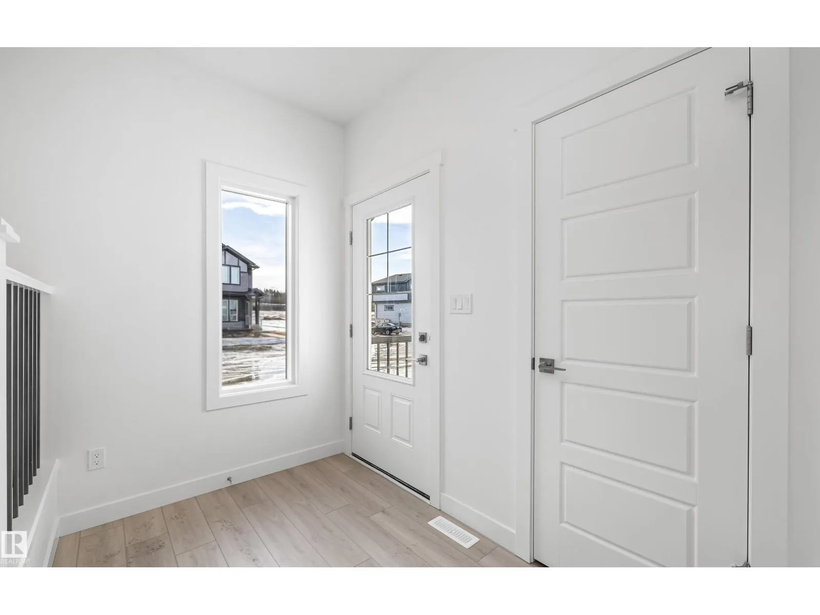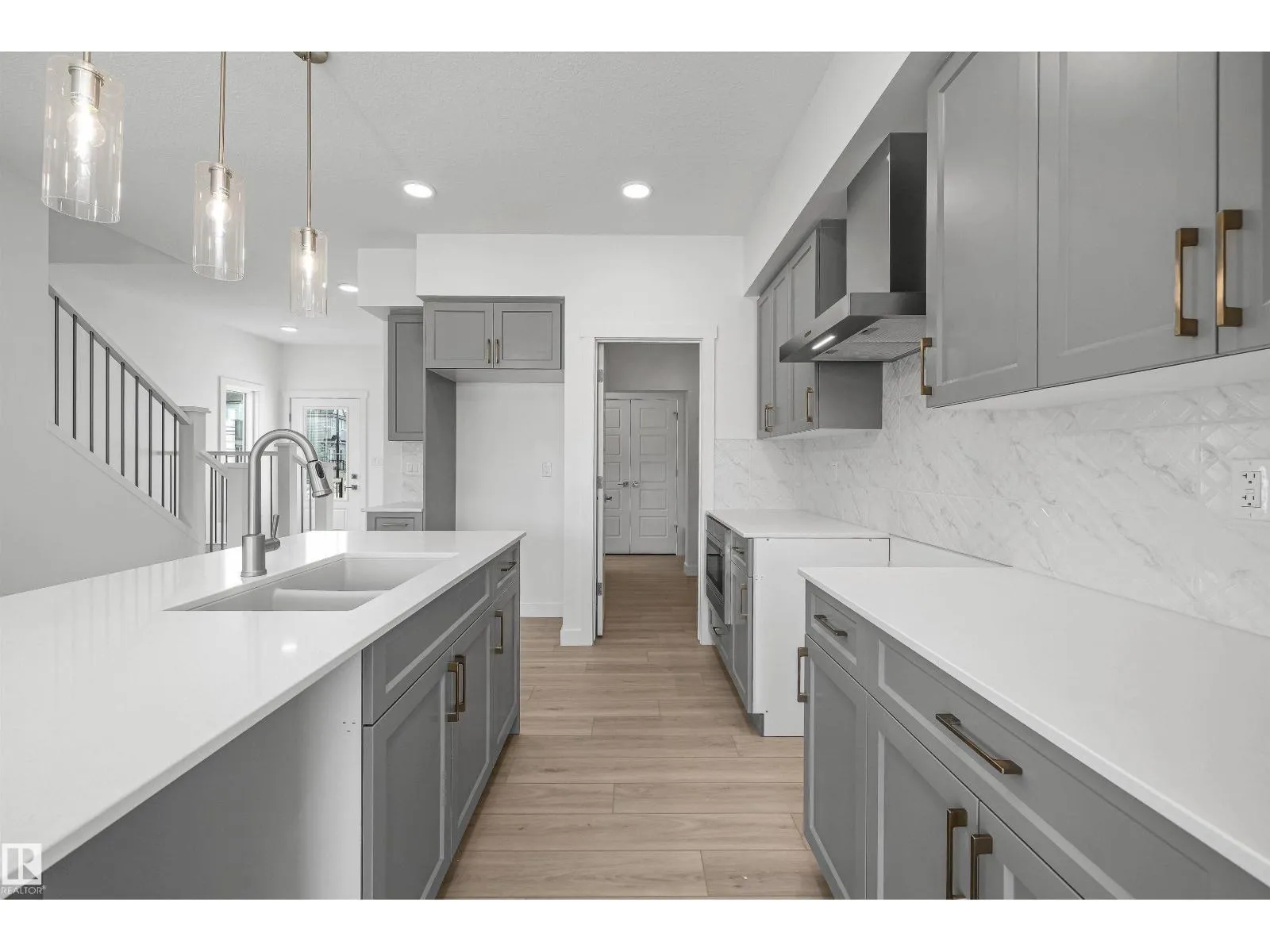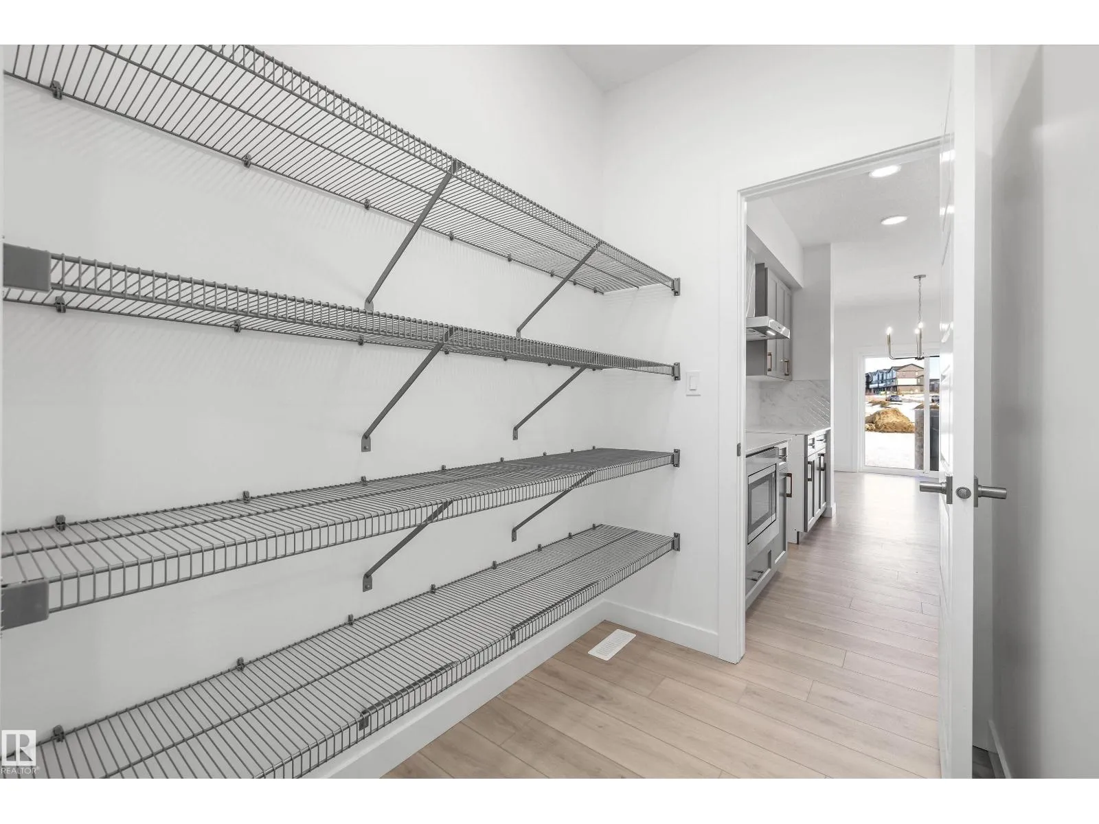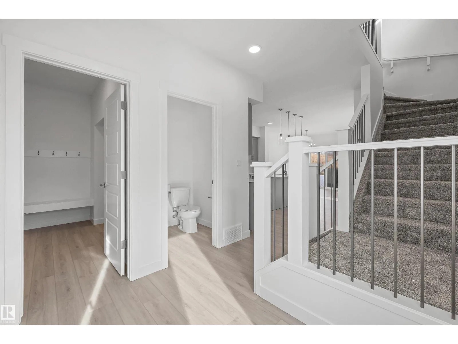 Built by Sterling Homes, this stunning front-attached residence in Kinglet occupies a prime corner lot, flooding the interior with natural light. The home is nestled in a serene NW Edmonton community defined by ponds, trails, and lush green spaces.The main floor boasts 9â ceilings, triple-pane windows, and luxury vinyl plank flooring. A chef-inspired kitchen features quartz countertops, a chimney hood fan, built-in microwave, and a walk-in pantry. The open-concept great room, anchored by an electric fireplace, flows seamlessly to the backyard via sliding patio doors. Upstairs, a flexible bonus room complements the bright primary suite, which offers a walk-in closet and a dual-sink ensuite. Two more bedrooms and convenient upper-floor laundry complete the level. Notable extras include a separate side entrance, mudroom with built-in storage, and a double garage with a floor drain. This home perfectly balances modern luxury with future potential. (id:27476)
