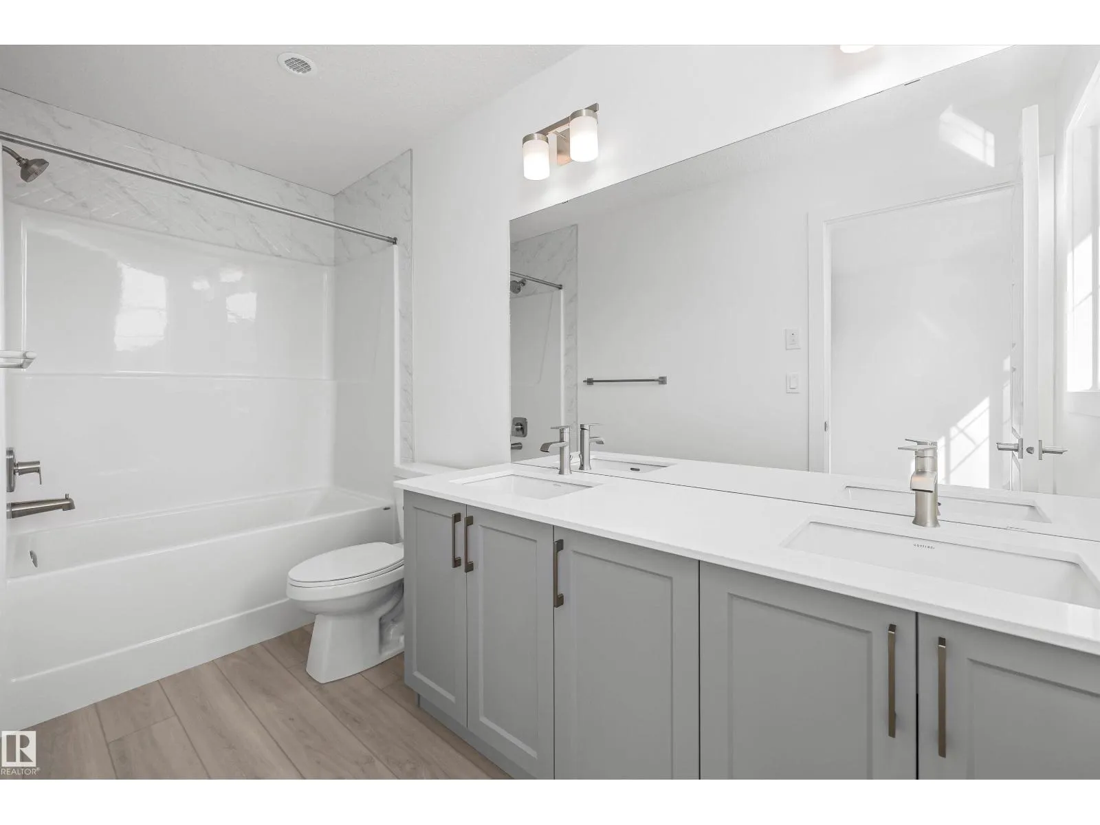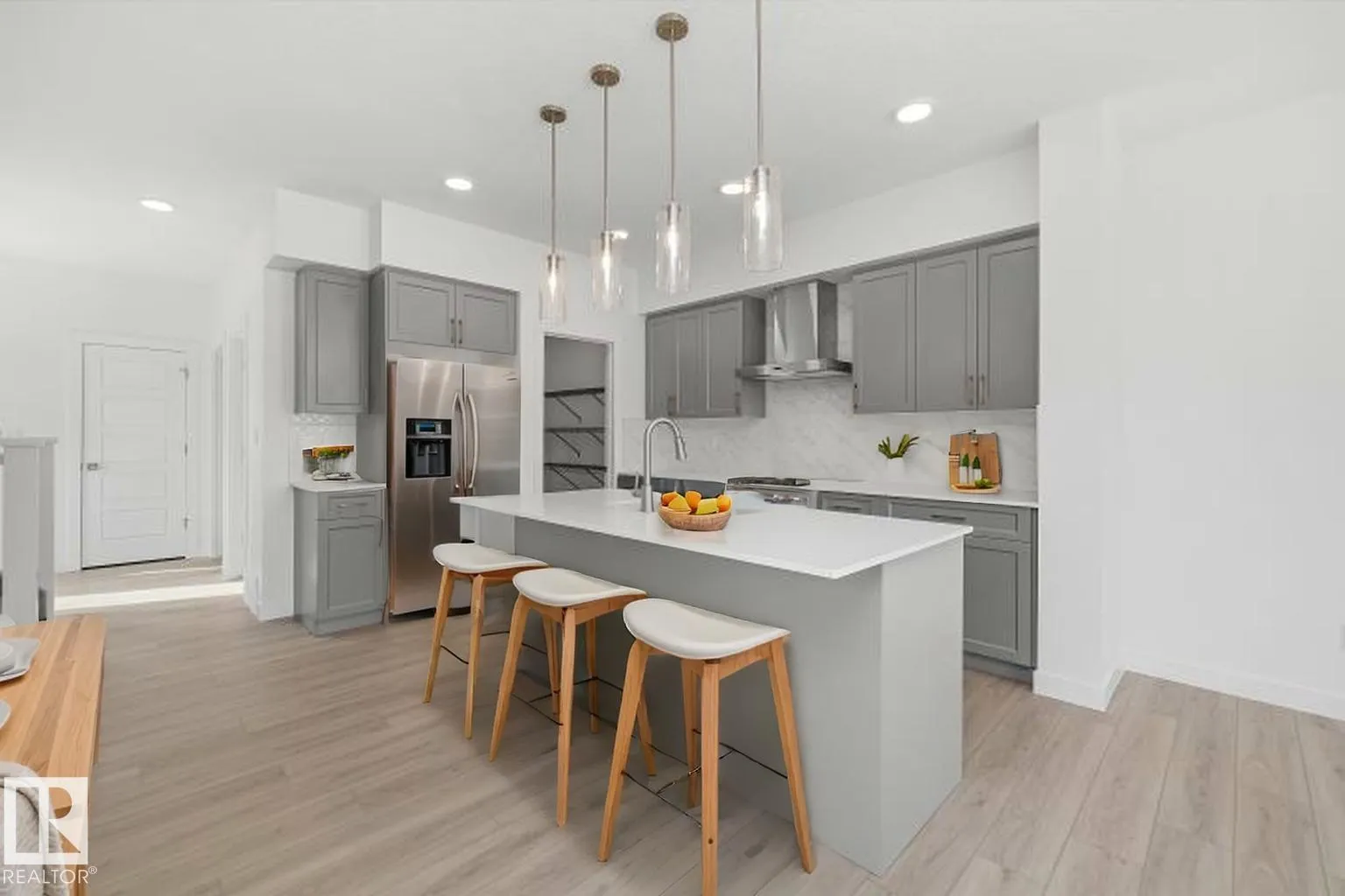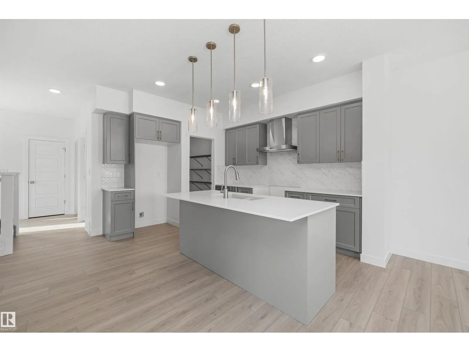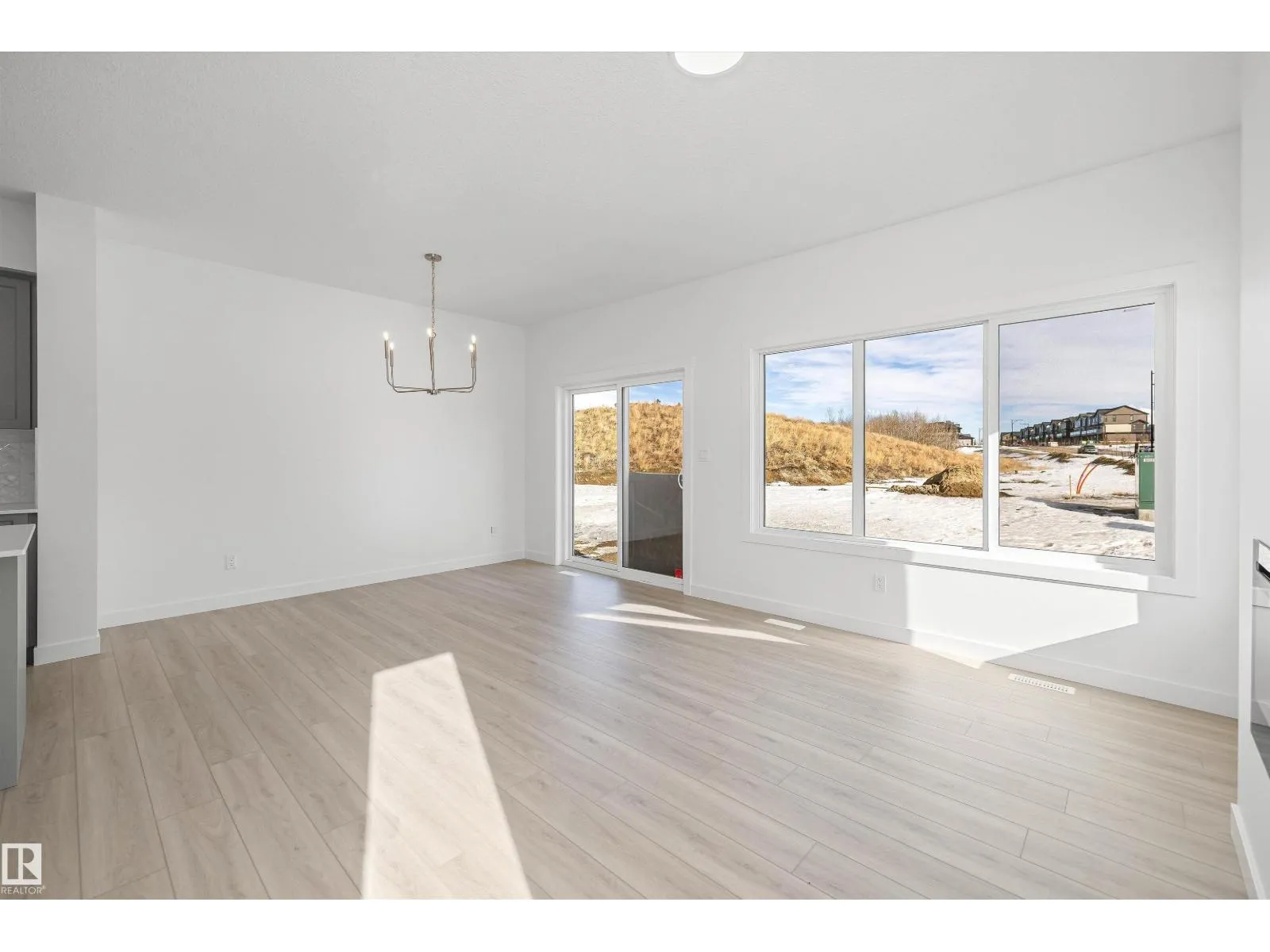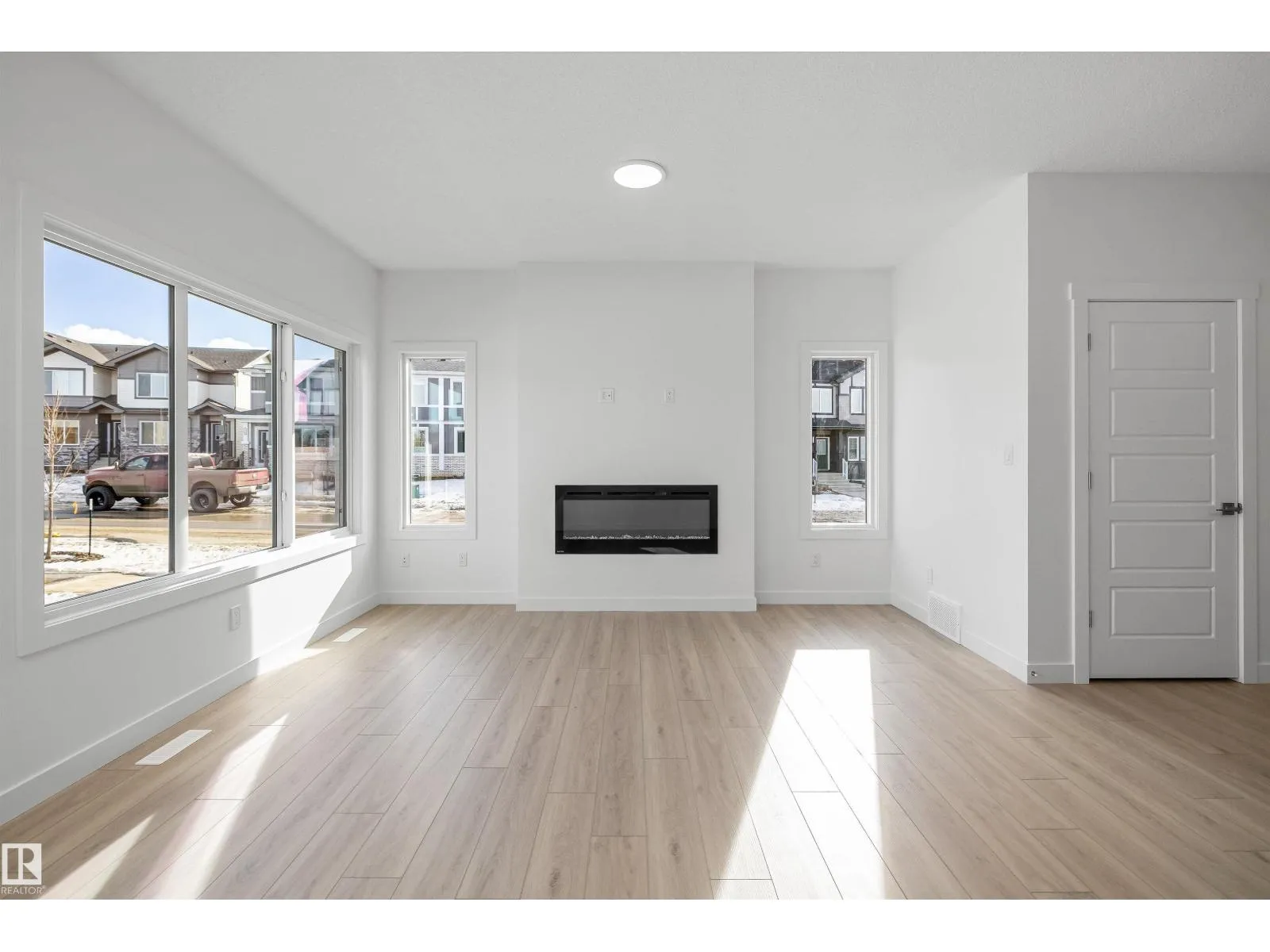 Built by Sterling Homes, this stunning front-attached residence in Kinglet occupies a prime corner lot, flooding the interior with natural light. The home is nestled in a serene NW Edmonton community defined by ponds, trails, and lush green spaces.The main floor boasts 9â ceilings, triple-pane windows, and luxury vinyl plank flooring. A chef-inspired kitchen features quartz countertops, a chimney hood fan, built-in microwave, and a walk-in pantry. The open-concept great room, anchored by an electric fireplace, flows seamlessly to the backyard via sliding patio doors. Upstairs, a flexible bonus room complements the bright primary suite, which offers a walk-in closet and a dual-sink ensuite. Two more bedrooms and convenient upper-floor laundry complete the level. Notable extras include a separate side entrance, mudroom with built-in storage, and a double garage with a floor drain. This home perfectly balances modern luxury with future potential. (id:27476)