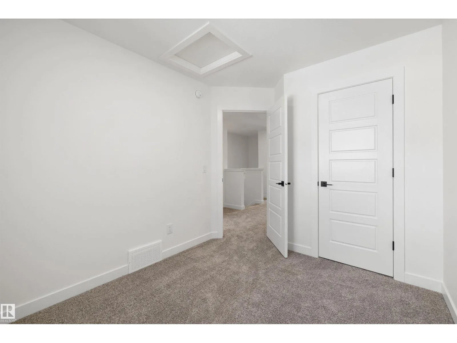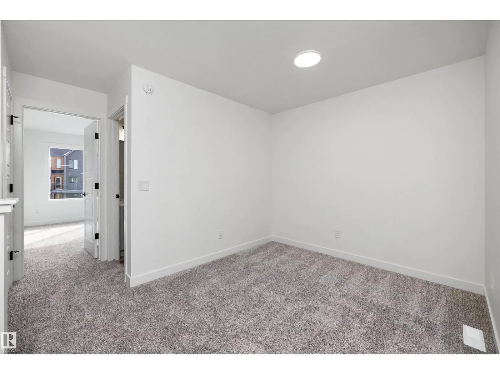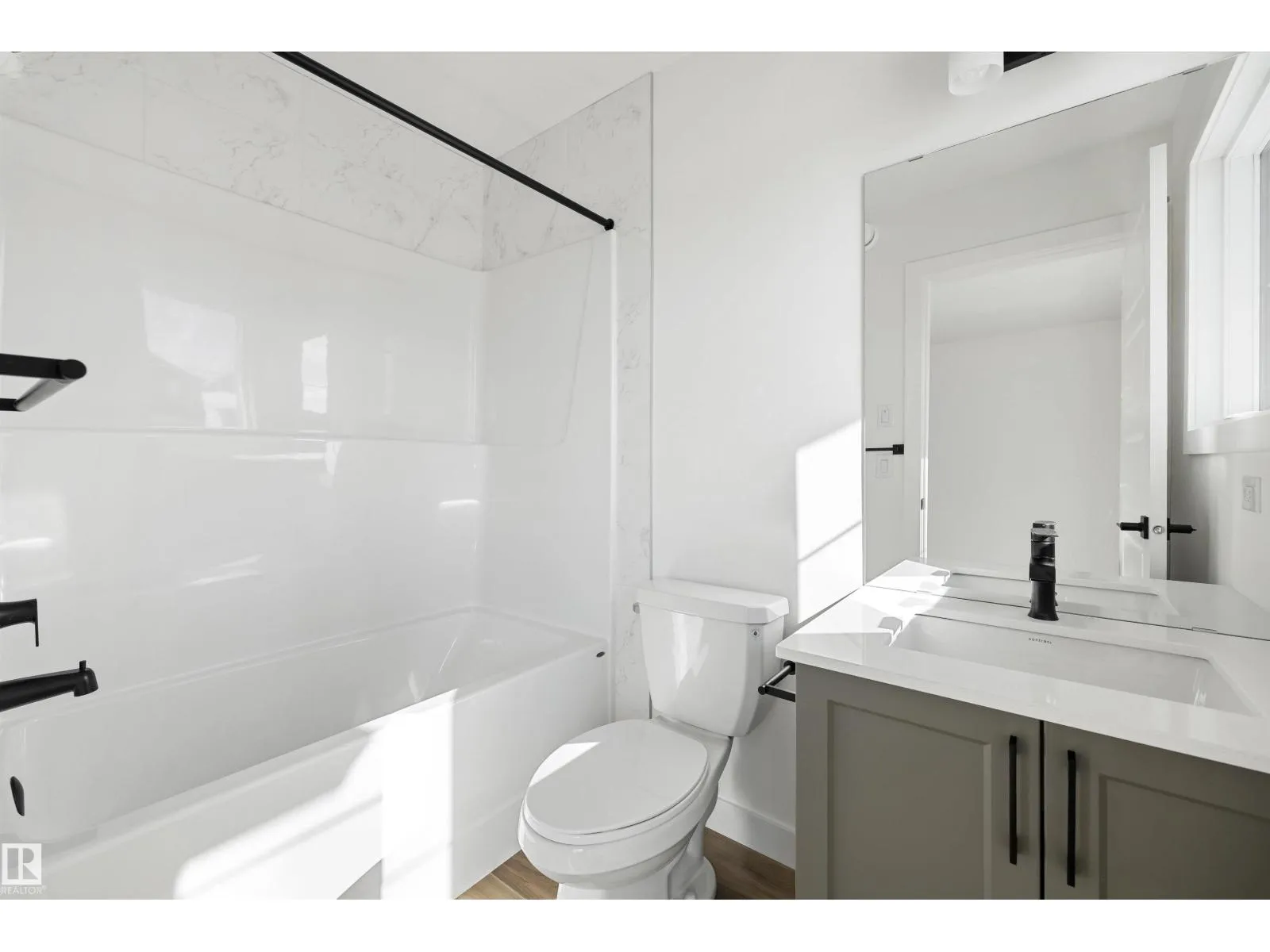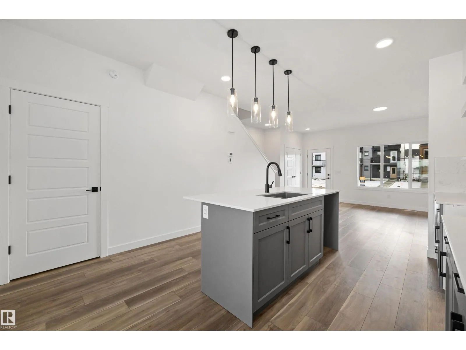 Built by Sterling Homes, this modern duplex in Marquis offers stylish living in a growing northeast community near parks, trails, and future amenities. Triple pane windows and 9â ceilings create a bright, open main floor with sleek luxury vinyl plank flooring throughout. The kitchen features quartz countertops, a central island with seating, upgraded cabinetry, chimney hood fan, full-height tile backsplash, and built-in microwave. Large rear windows fill the dining nook with natural light, while a nearby pantry and half bath add convenience. A side entrance offers flexibility for future development or separate access. Upstairs, the primary suite includes a walk-in closet and 3-piece ensuite, along with two additional bedrooms, a full bath, upper-floor laundry, and a versatile loft. A backyard parking pad, double attached garage with floor drain, and basement rough-ins complete this well-designed home in a community poised for growth. (id:27476)
