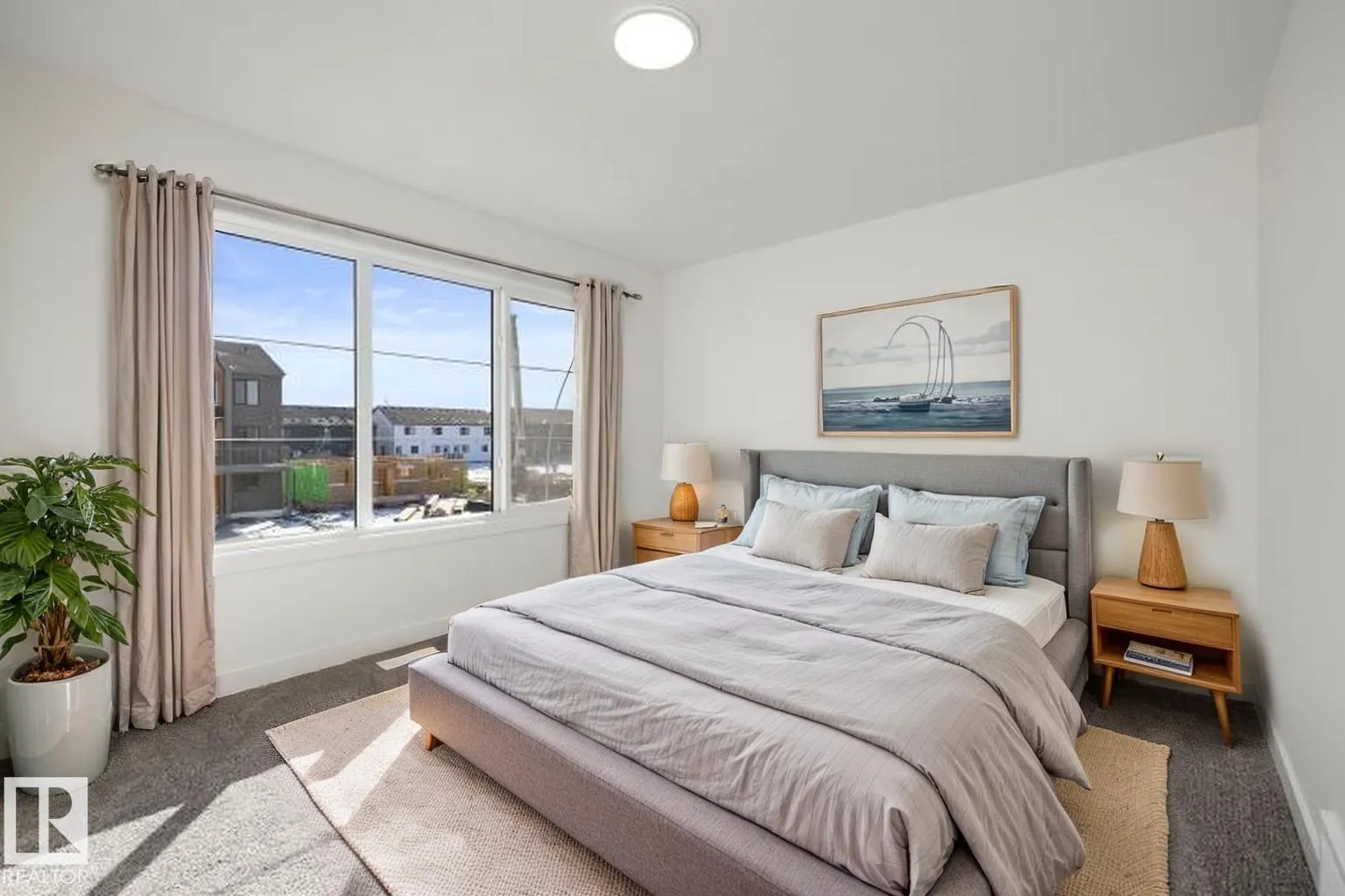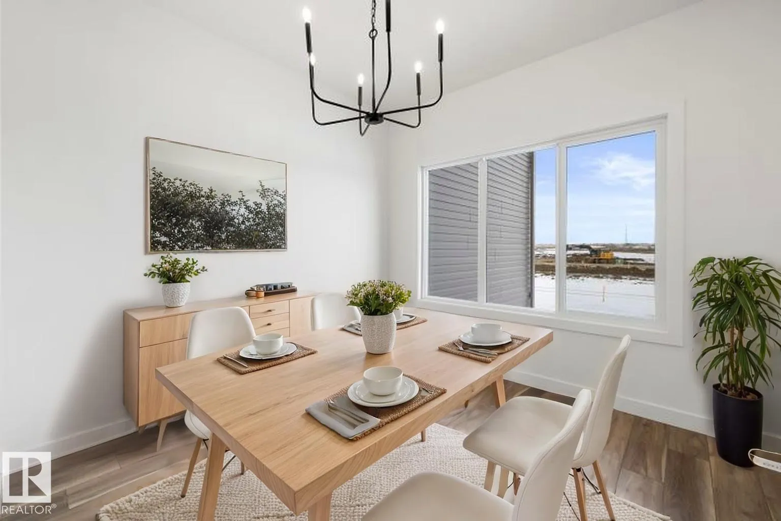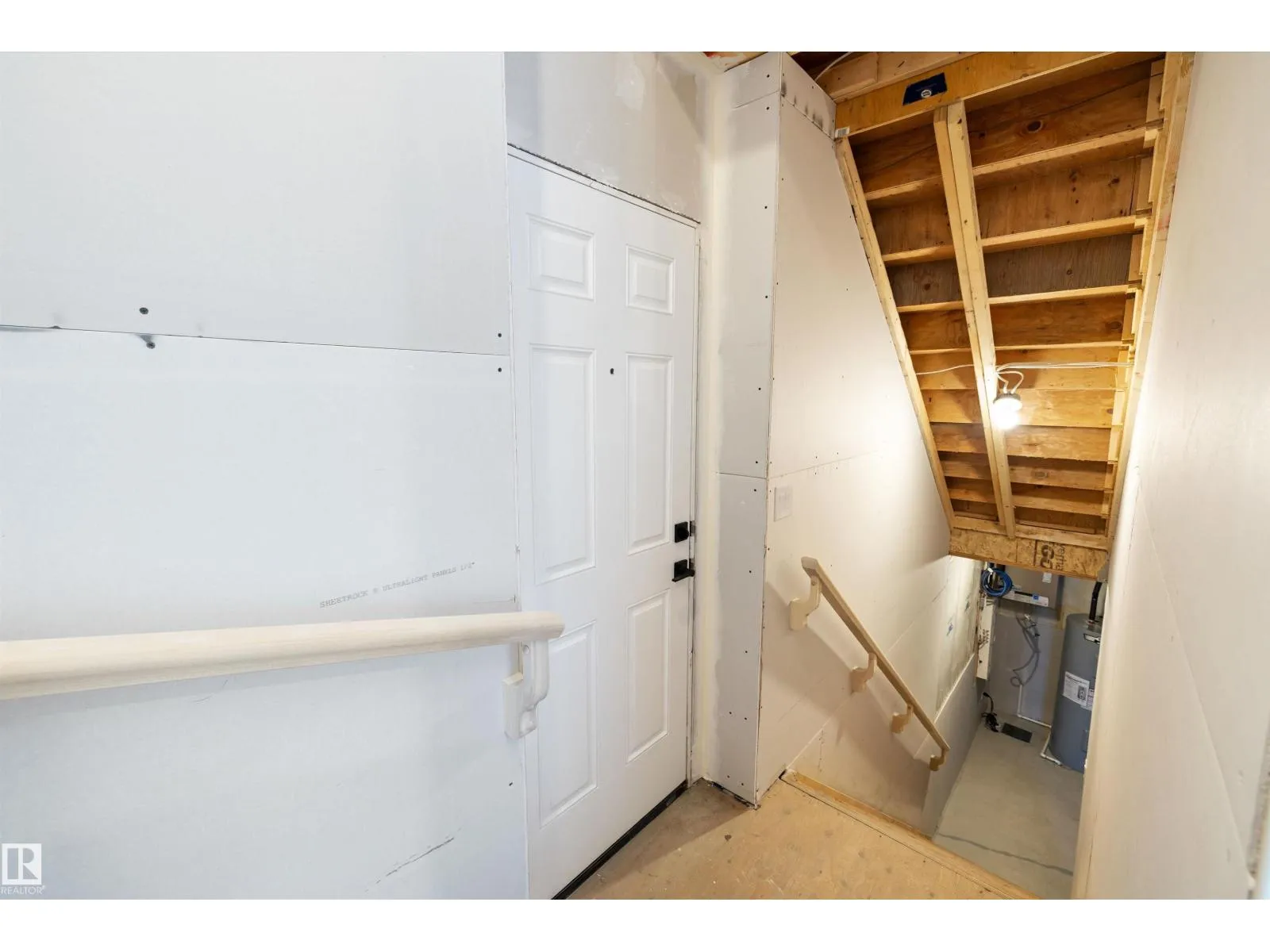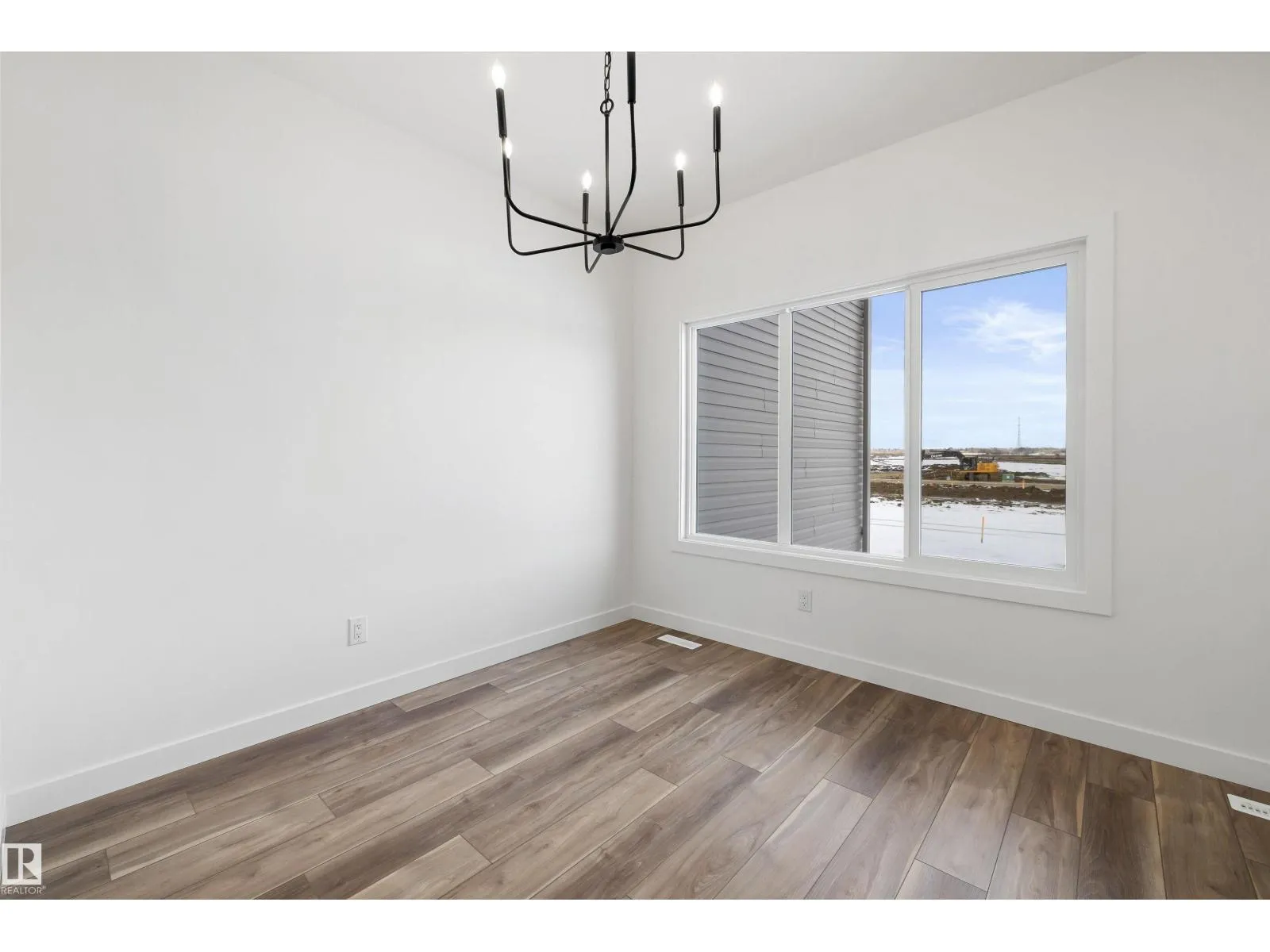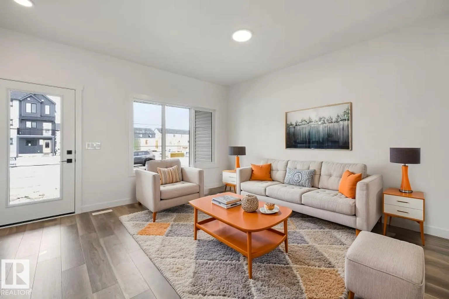 Built by Sterling Homes, this modern duplex in Marquis offers stylish living in a growing northeast community near parks, trails, and future amenities. Triple pane windows and 9â ceilings create a bright, open main floor with sleek luxury vinyl plank flooring throughout. The kitchen features quartz countertops, a central island with seating, upgraded cabinetry, chimney hood fan, full-height tile backsplash, and built-in microwave. Large rear windows fill the dining nook with natural light, while a nearby pantry and half bath add convenience. A side entrance offers flexibility for future development or separate access. Upstairs, the primary suite includes a walk-in closet and 3-piece ensuite, along with two additional bedrooms, a full bath, upper-floor laundry, and a versatile loft. A backyard parking pad, double attached garage with floor drain, and basement rough-ins complete this well-designed home in a community poised for growth. (id:27476)