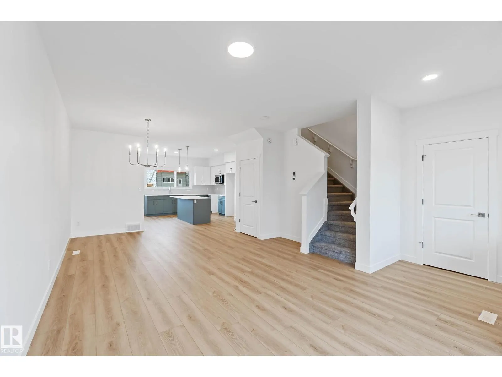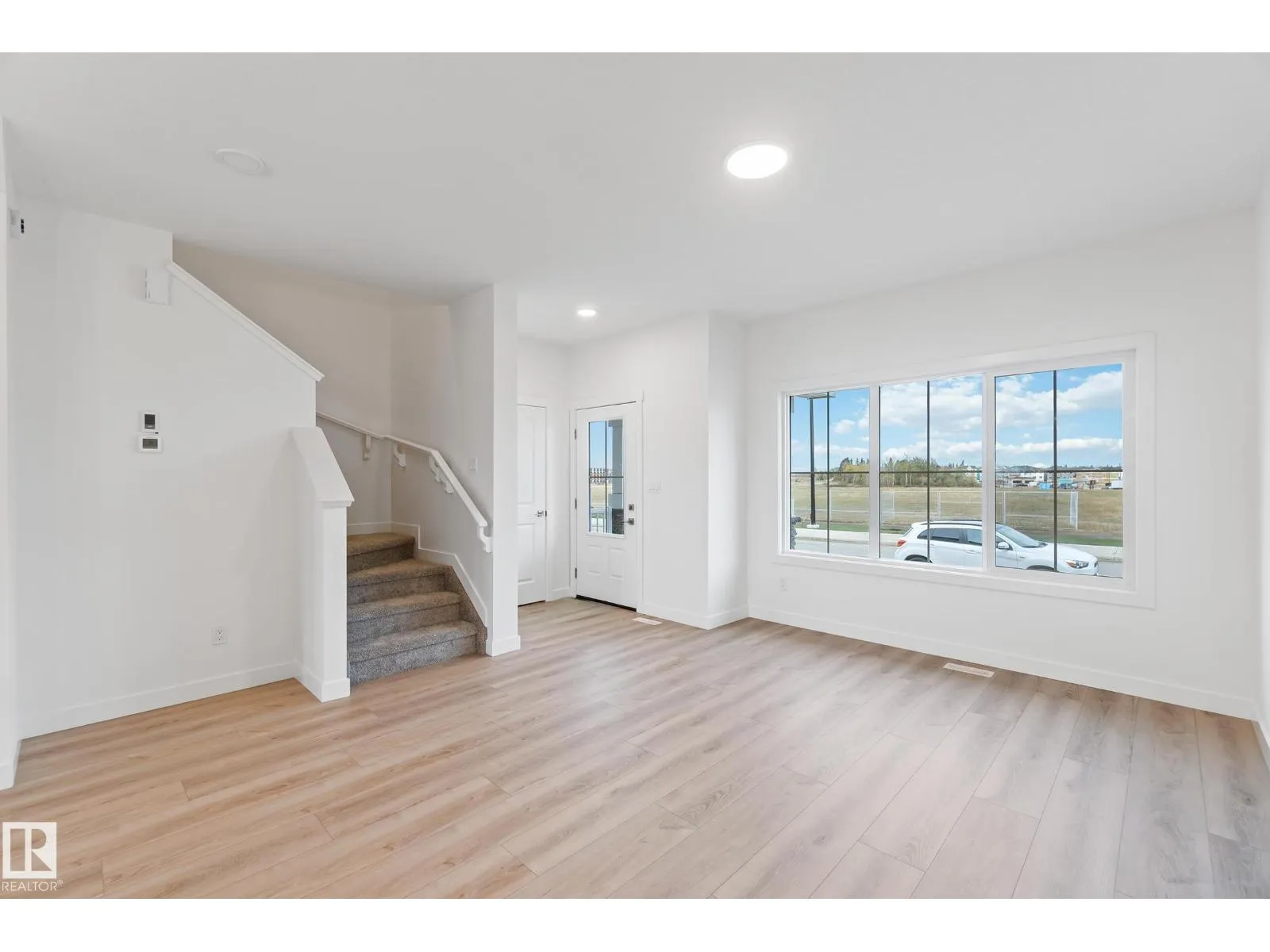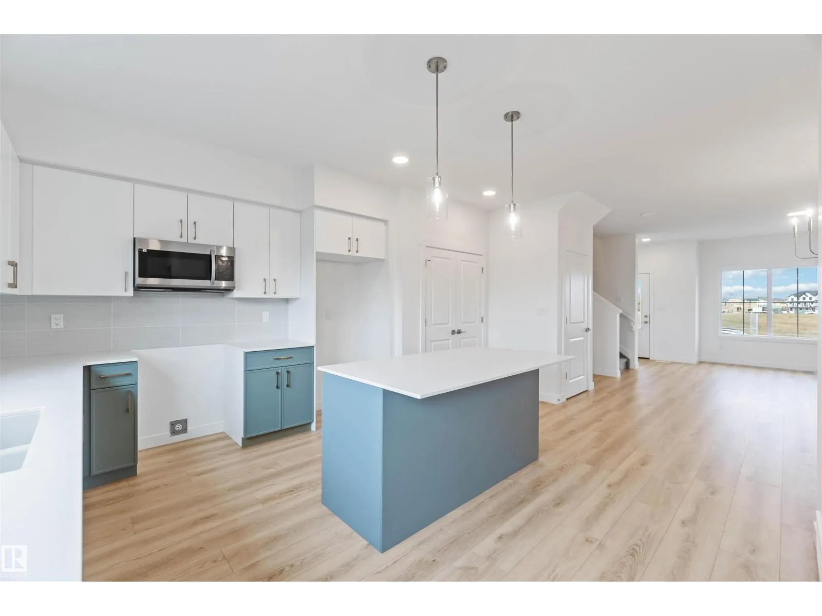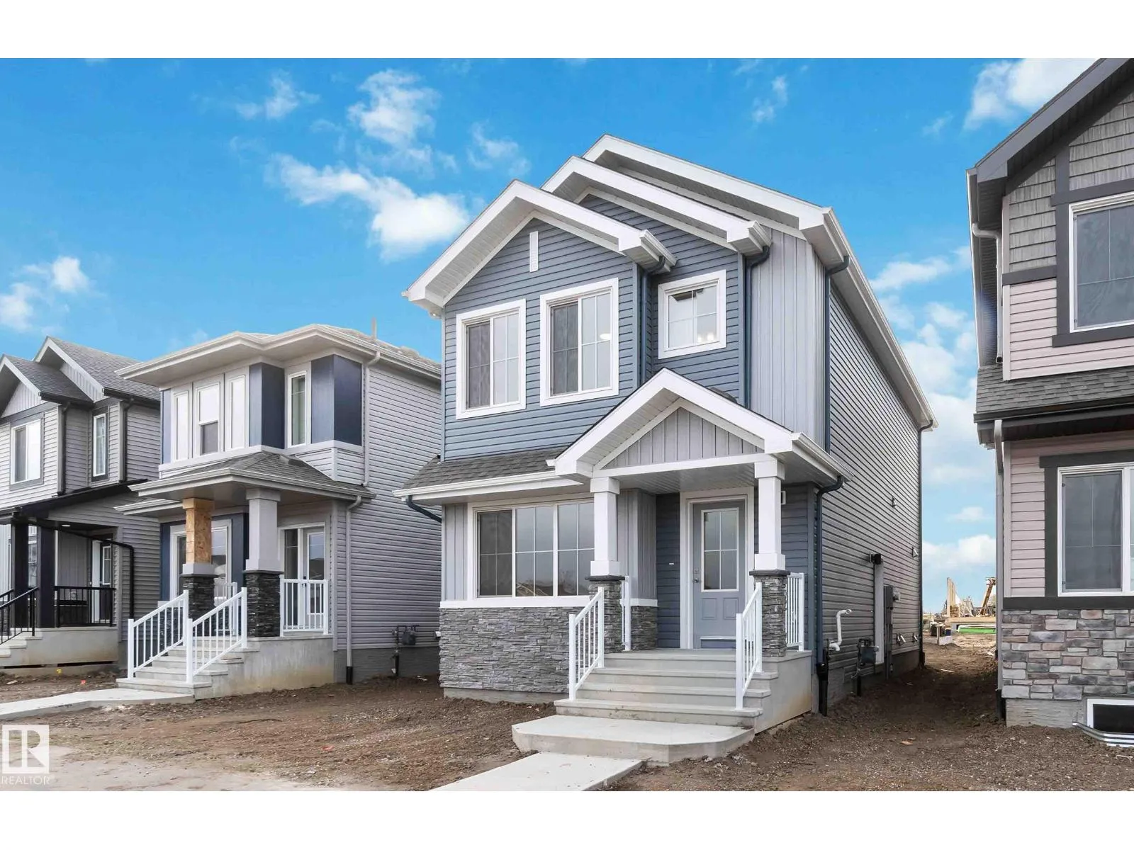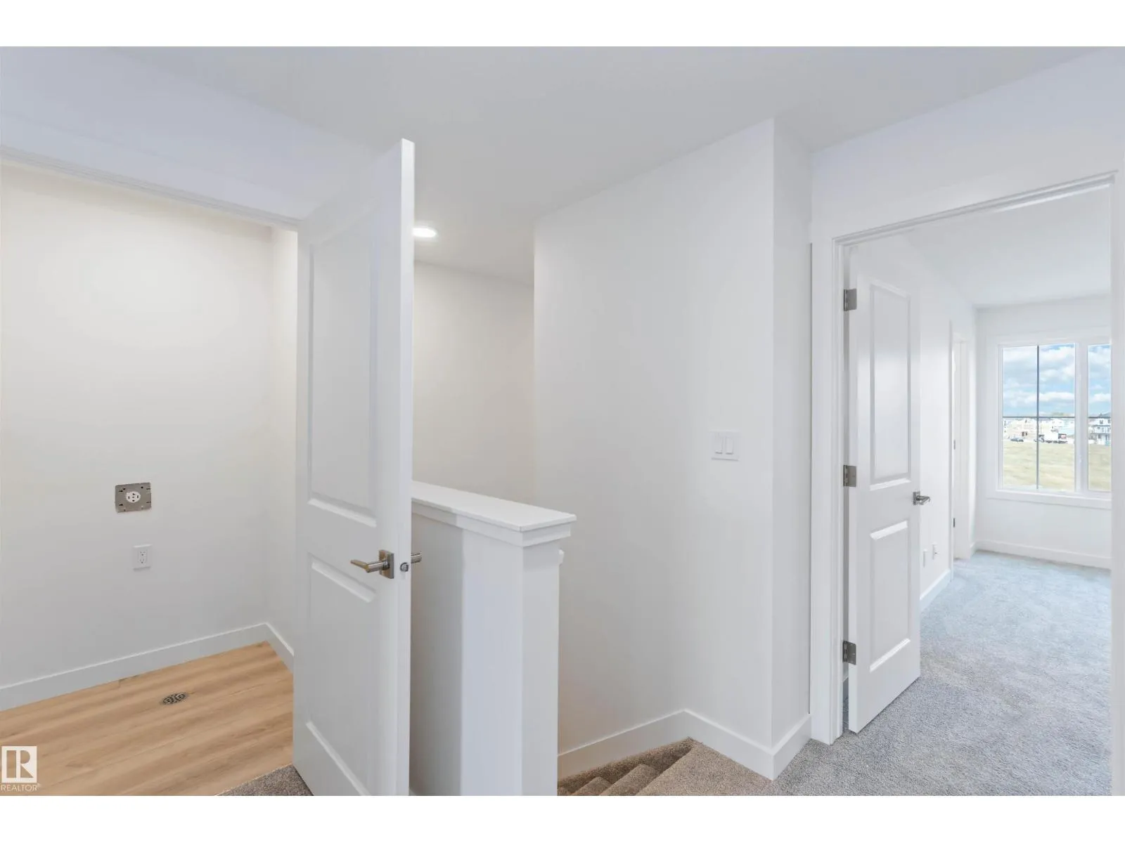 Built by Sterling Homes, this bright laned home in Marquis offers modern living in a growing northeast community surrounded by parks, trails, and future schools. Triple pane windows and 9â ceilings fill the main floor with natural light, where a welcoming front living area flows into the dining space and rear kitchen. The kitchen features quartz countertops, a central island with seating, upgraded cabinetry, full-height tile backsplash, a spacious pantry, and a window overlooking the backyard. A tucked-away half bath and rear entry add everyday convenience. Upstairs, the primary suite includes a walk-in closet and private 3-piece ensuite. A cozy loft provides flexible space, while two additional bedrooms, a full bath, and upper-floor laundry complete the layout. Luxury vinyl plank flooring, a backyard parking pad, side entrance, and basement rough-ins round out this thoughtfully designed Marquis home. (id:27476)